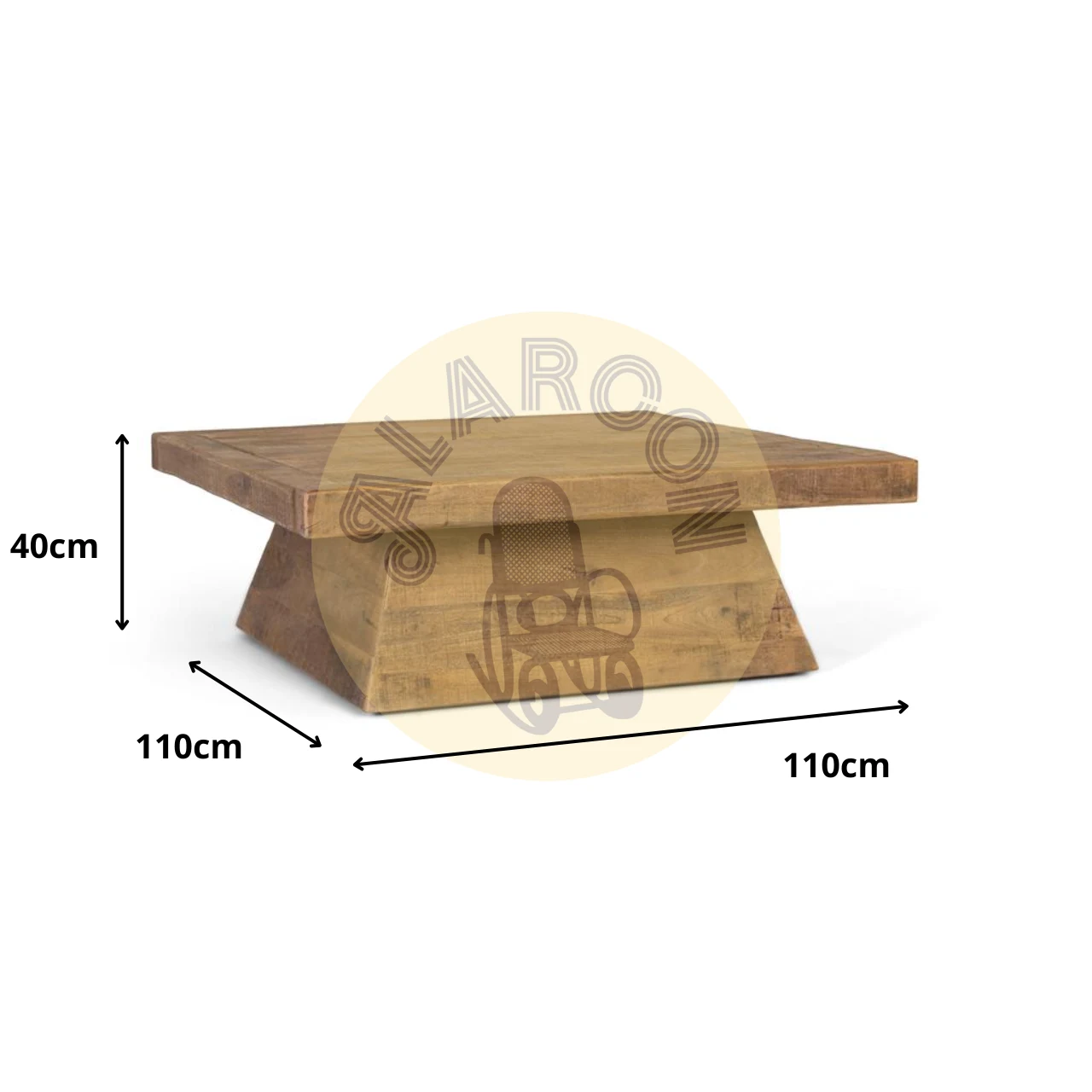 Con un diseño de líneas rectas y una forma cuadrada, esta mesa de centro se convierte en el punto focal perfecto para tu salón. Fabricada en madera maciza de mango, destaca por su resistencia y por la belleza única de sus vetas naturales.