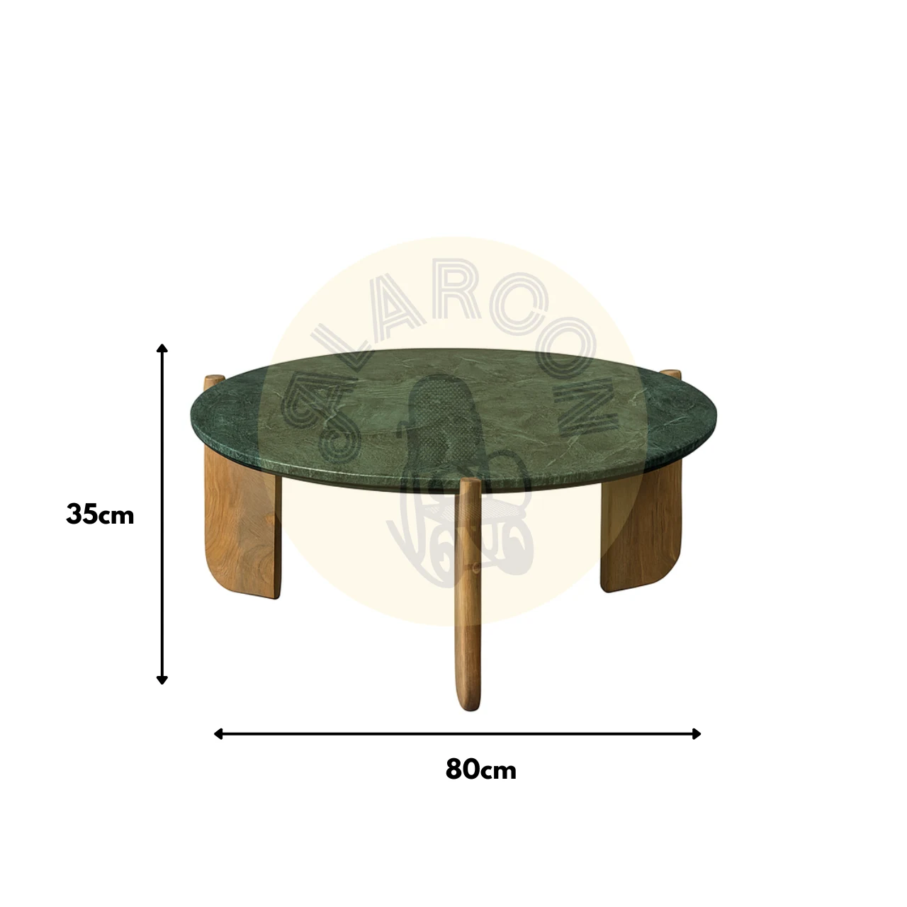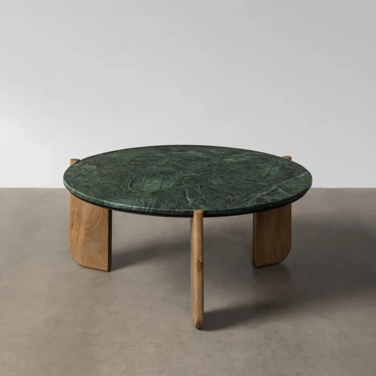 La mesa de centro Natural-Verde combina la calidez de la madera de mango con la elegancia del mármol natural, creando un punto focal sofisticado para cualquier salón. Su diseño cuadrado de 80 x 80 x 35 cm destaca por su estilo contemporáneo y materiales de alta calidad.