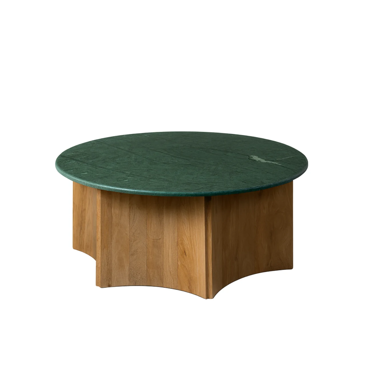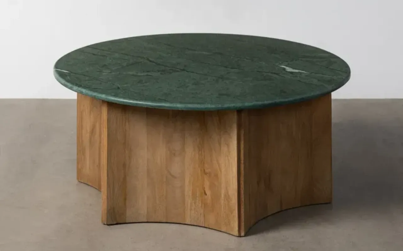 La mesa de centro Natural-Verde combina la calidez de la madera de mango con la elegancia del mármol natural, creando un punto focal sofisticado para cualquier salón. Su diseño cuadrado de 97 x 97 x 41 cm destaca por su estilo contemporáneo y materiales de alta calidad.