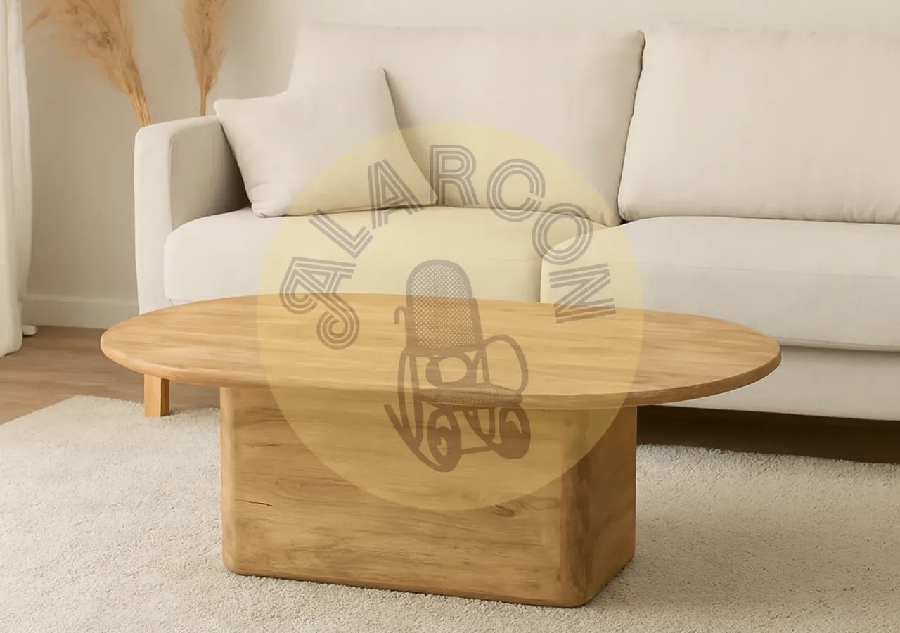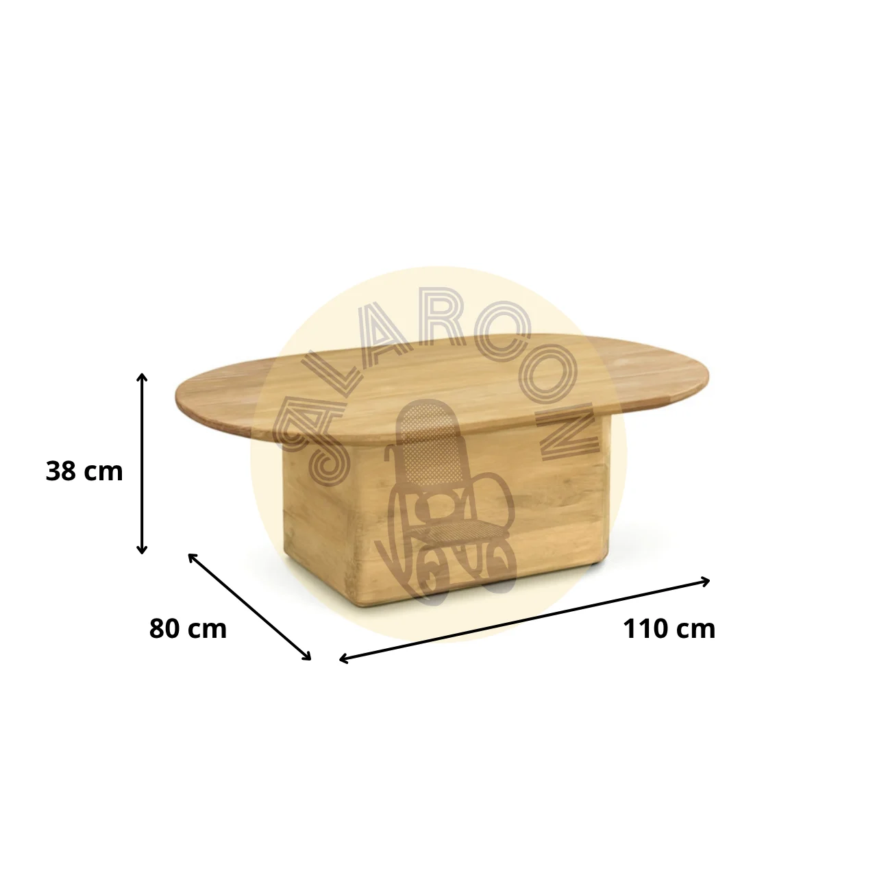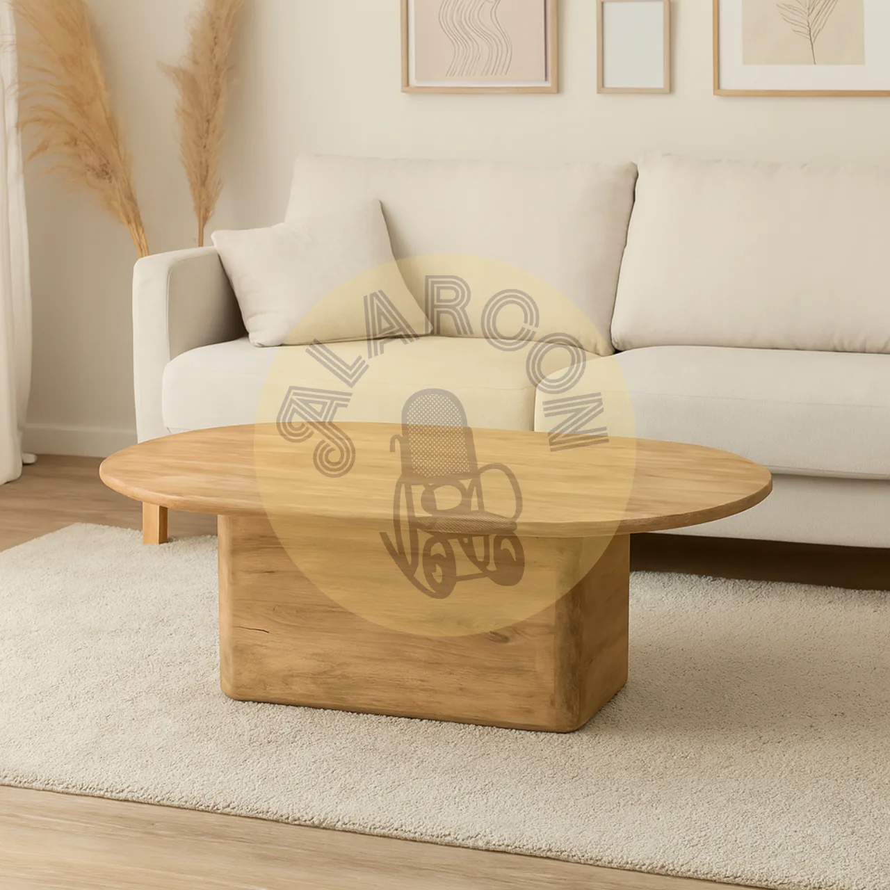 Fabricada a mano, cada pieza es única, mostrando la autenticidad y la durabilidad propias de la teca. Su base sólida y su forma suave aportan estabilidad y una estética contemporánea que realza la decoración del salón.