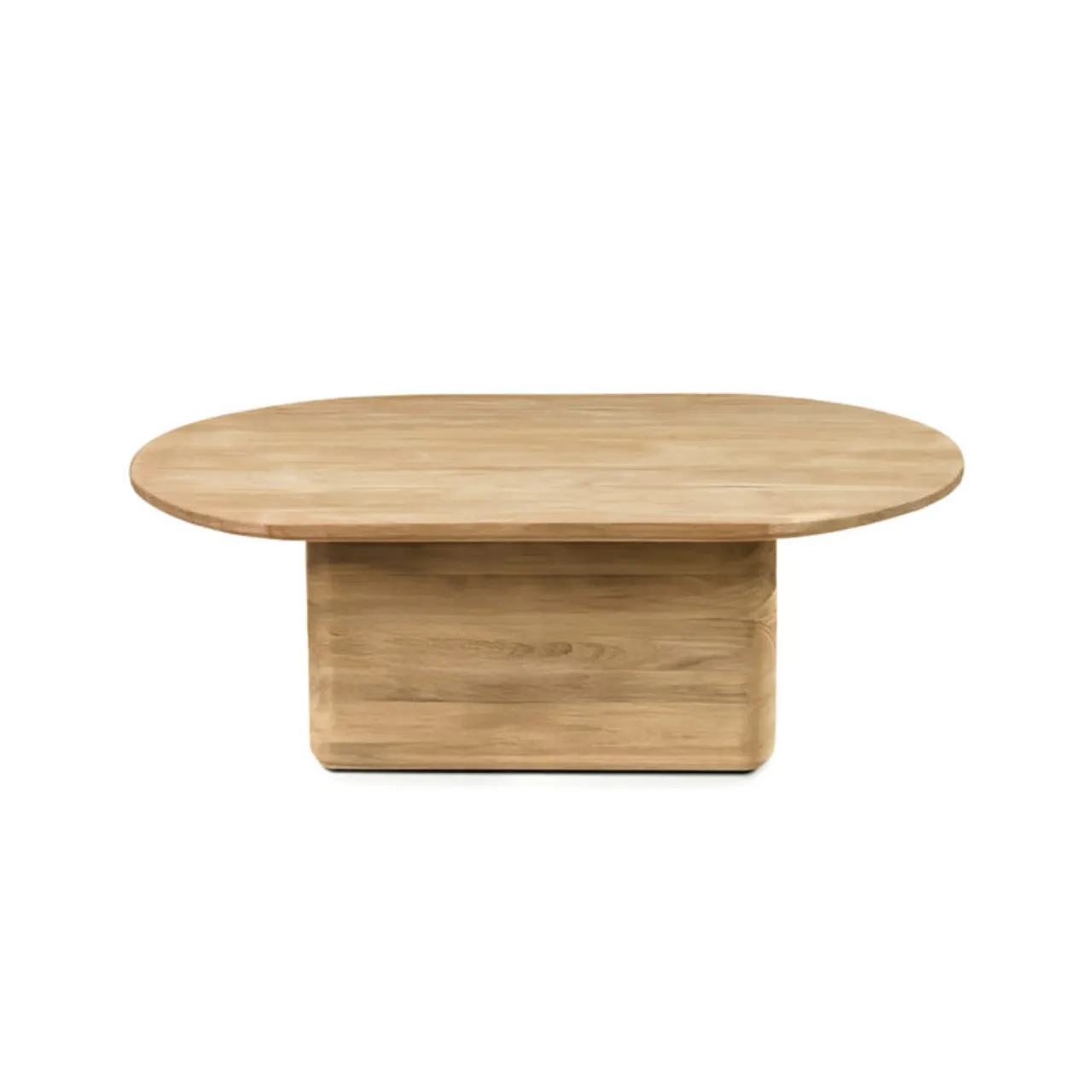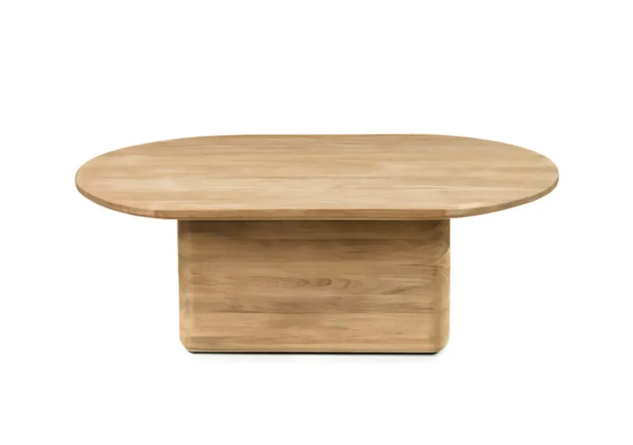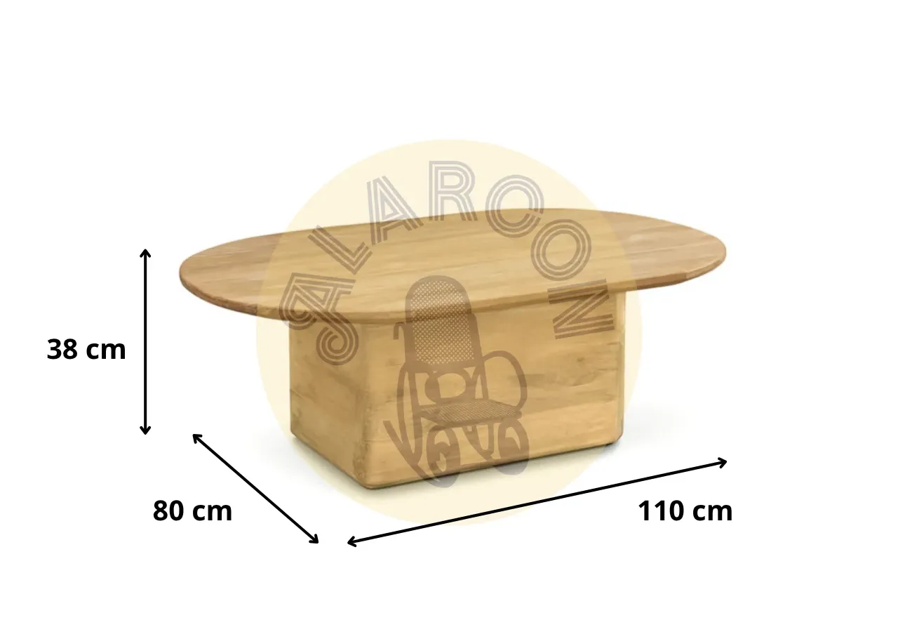 Fabricada a mano, cada pieza es única, mostrando la autenticidad y la durabilidad propias de la teca. Su base sólida y su forma suave aportan estabilidad y una estética contemporánea que realza la decoración del salón.
