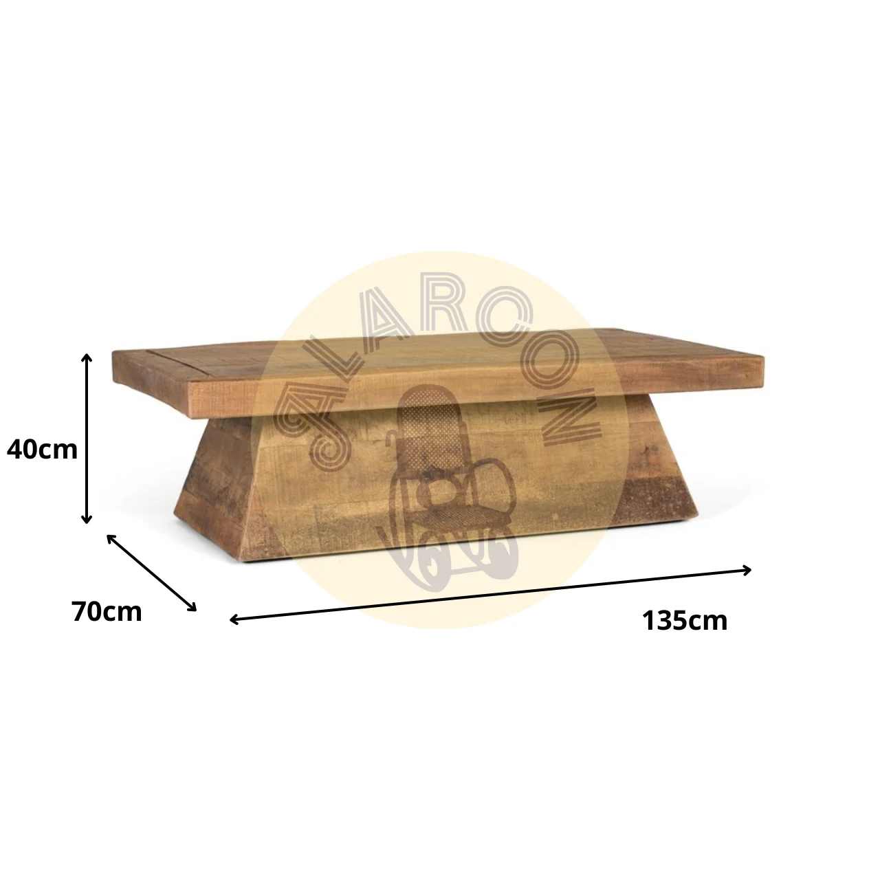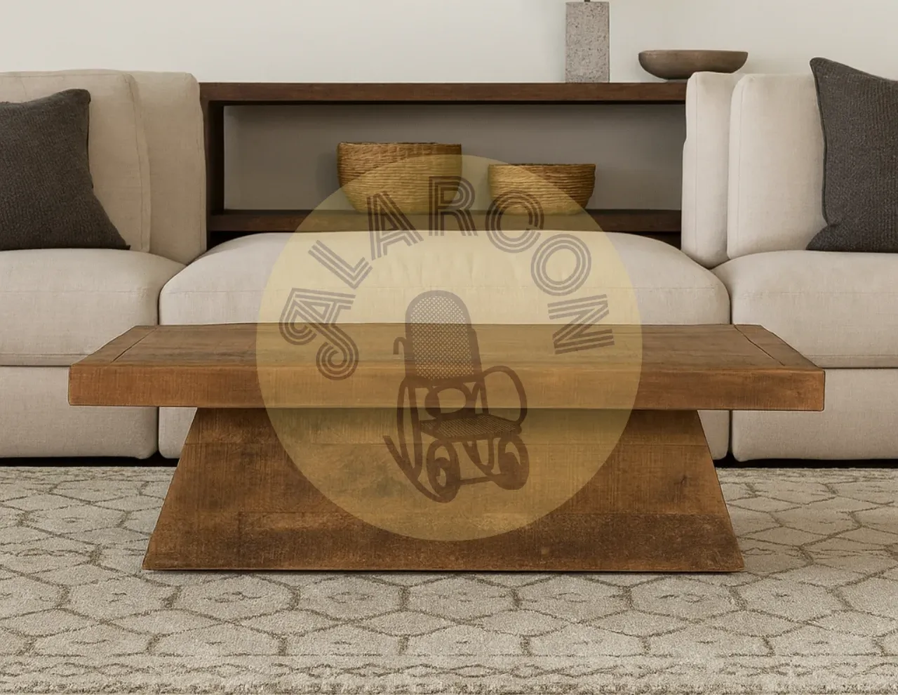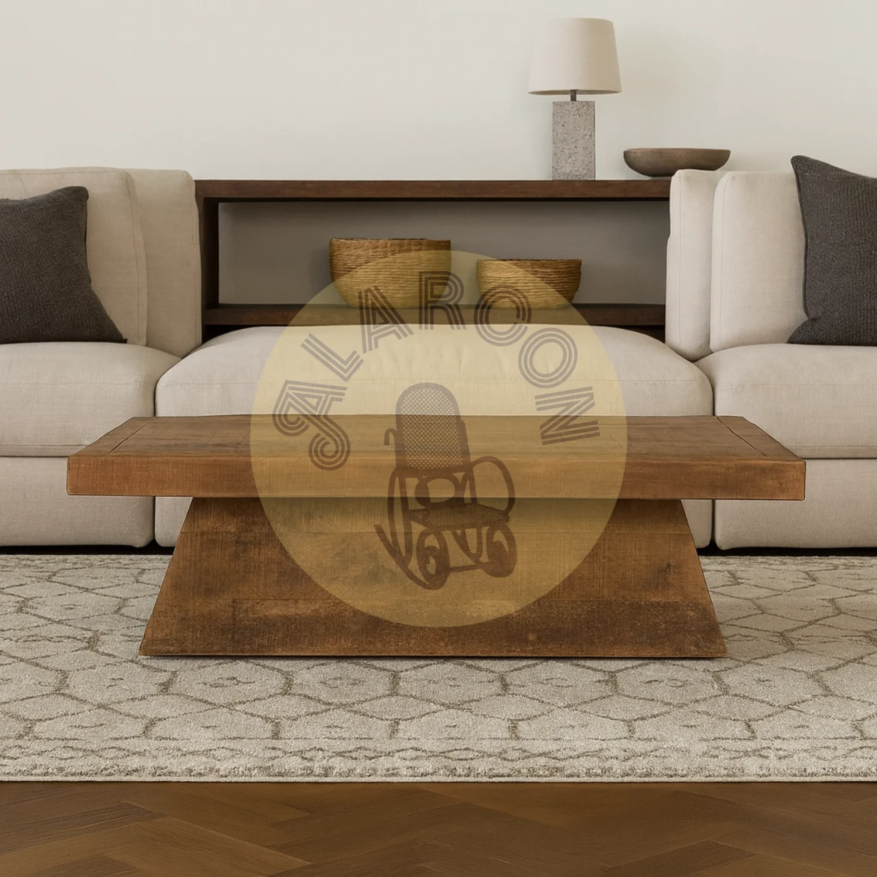 Con un diseño de líneas rectas y una base central en forma de pedestal, esta mesa de centro aporta solidez y un estilo atemporal que se adapta a diferentes ambientes. Su forma rectangular realza la funcionalidad sin perder carácter.
