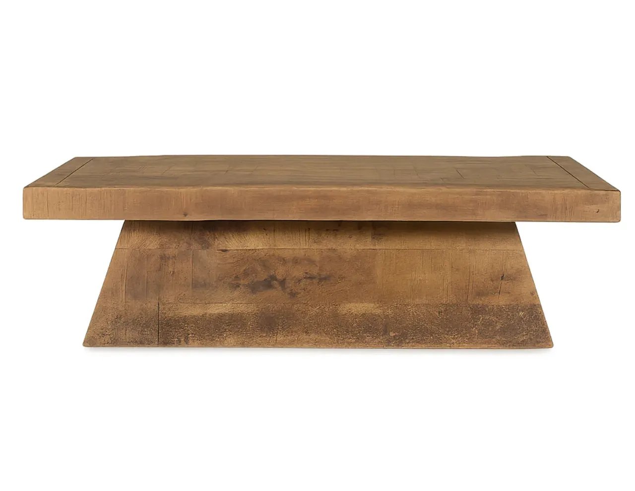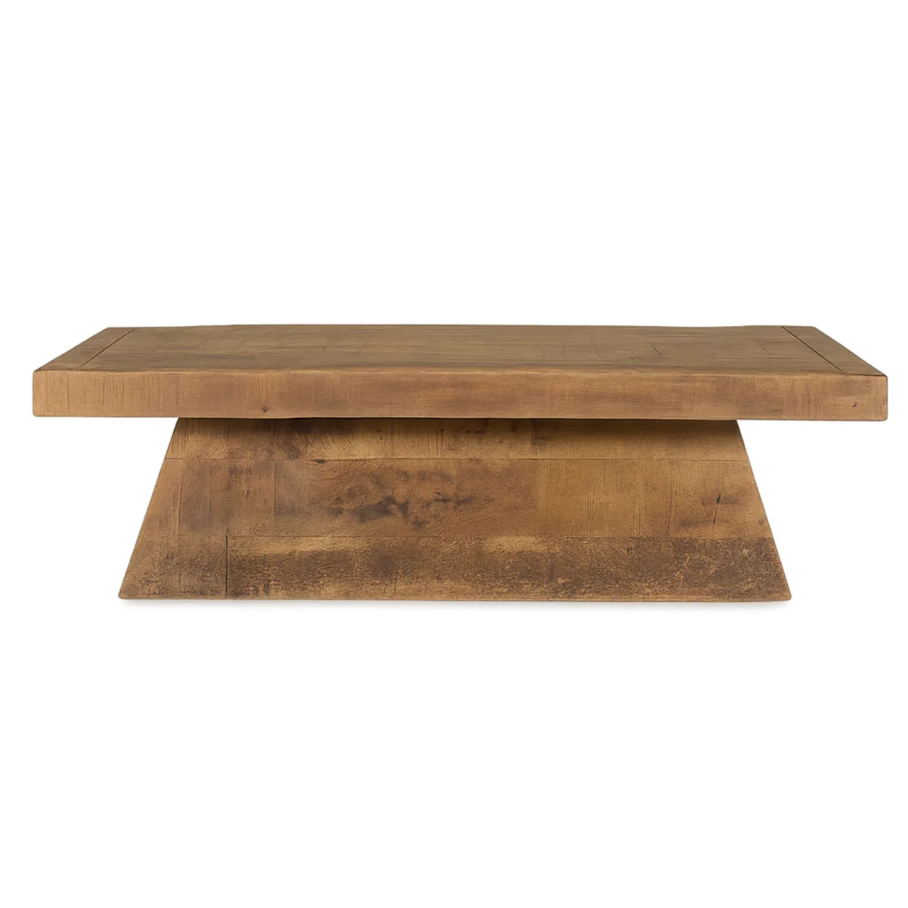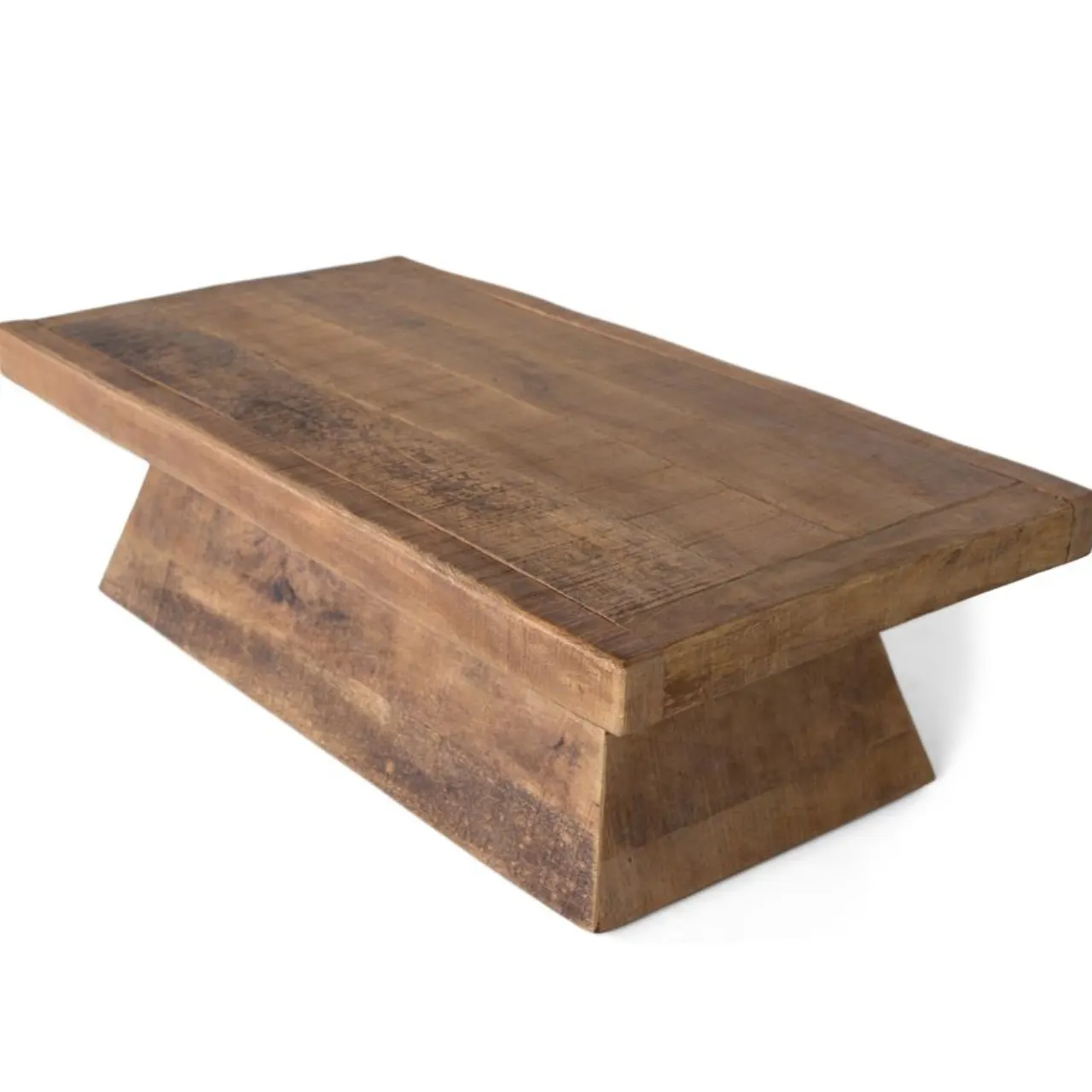 Con un diseño de líneas rectas y una base central en forma de pedestal, esta mesa de centro aporta solidez y un estilo atemporal que se adapta a diferentes ambientes. Su forma rectangular realza la funcionalidad sin perder carácter.