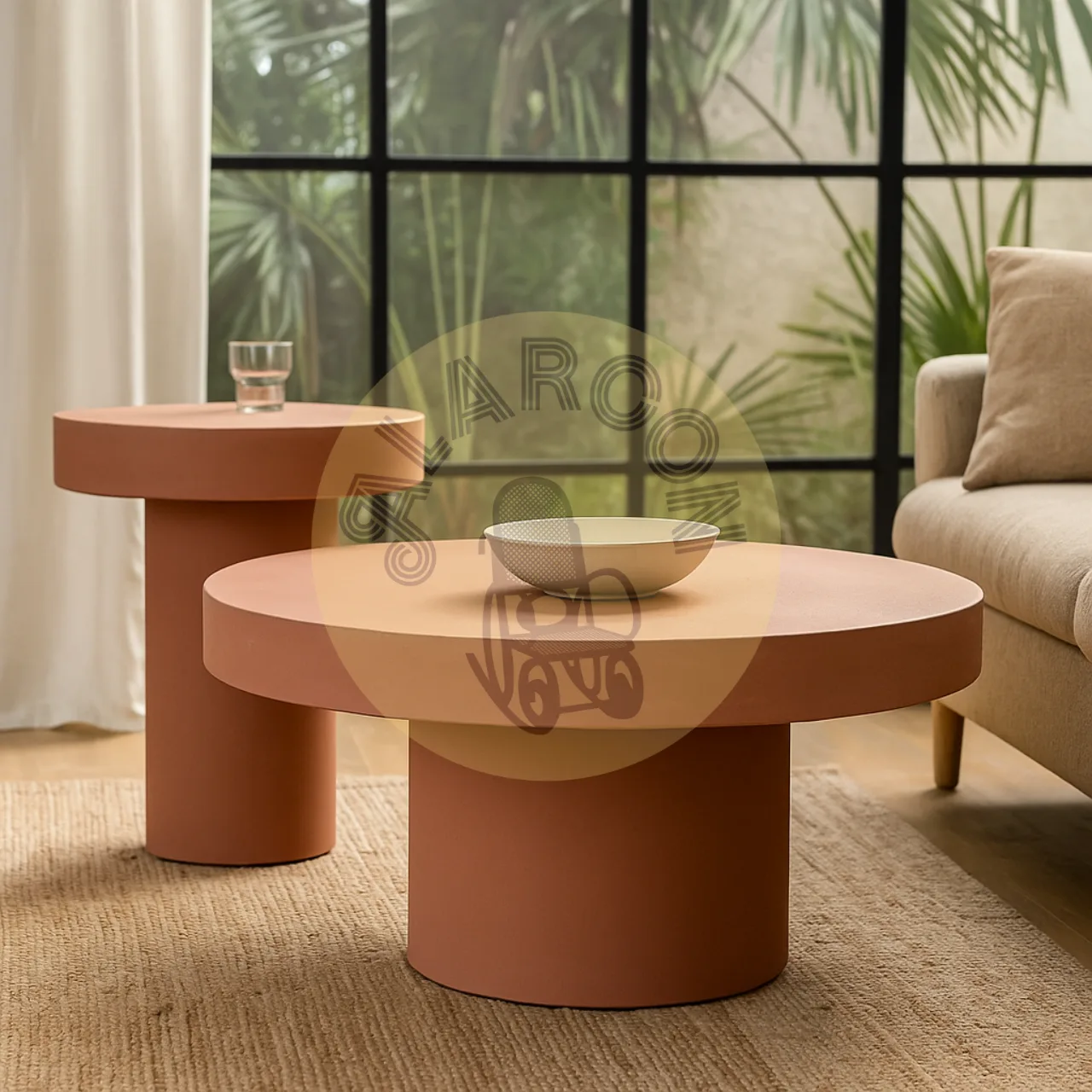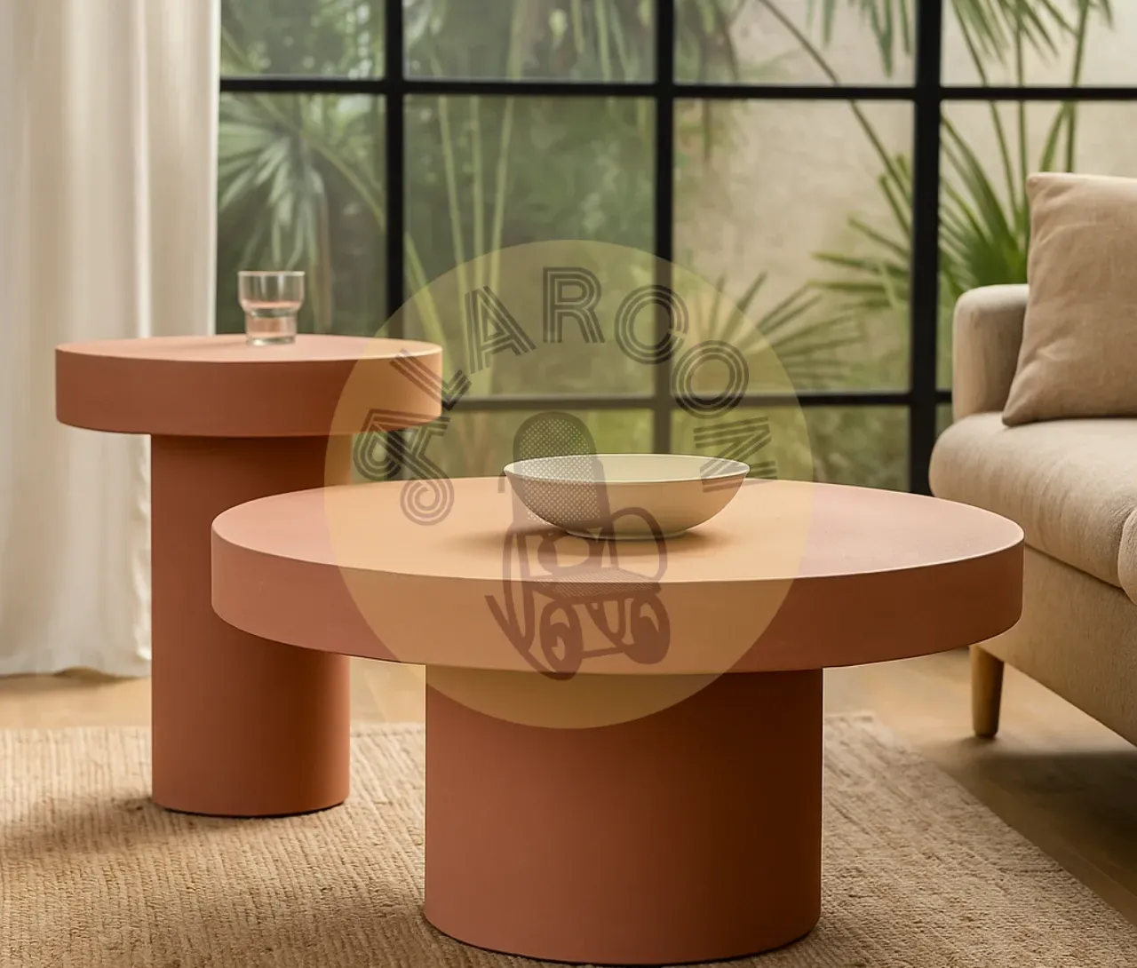 Con un diseño moderno y líneas minimalistas, esta mesa de centro redonda en cemento GFRC combina resistencia y elegancia en un acabado terracota que aporta calidez a cualquier espacio. Su estructura sólida garantiza durabilidad, tanto en ambientes interiores como exteriores.