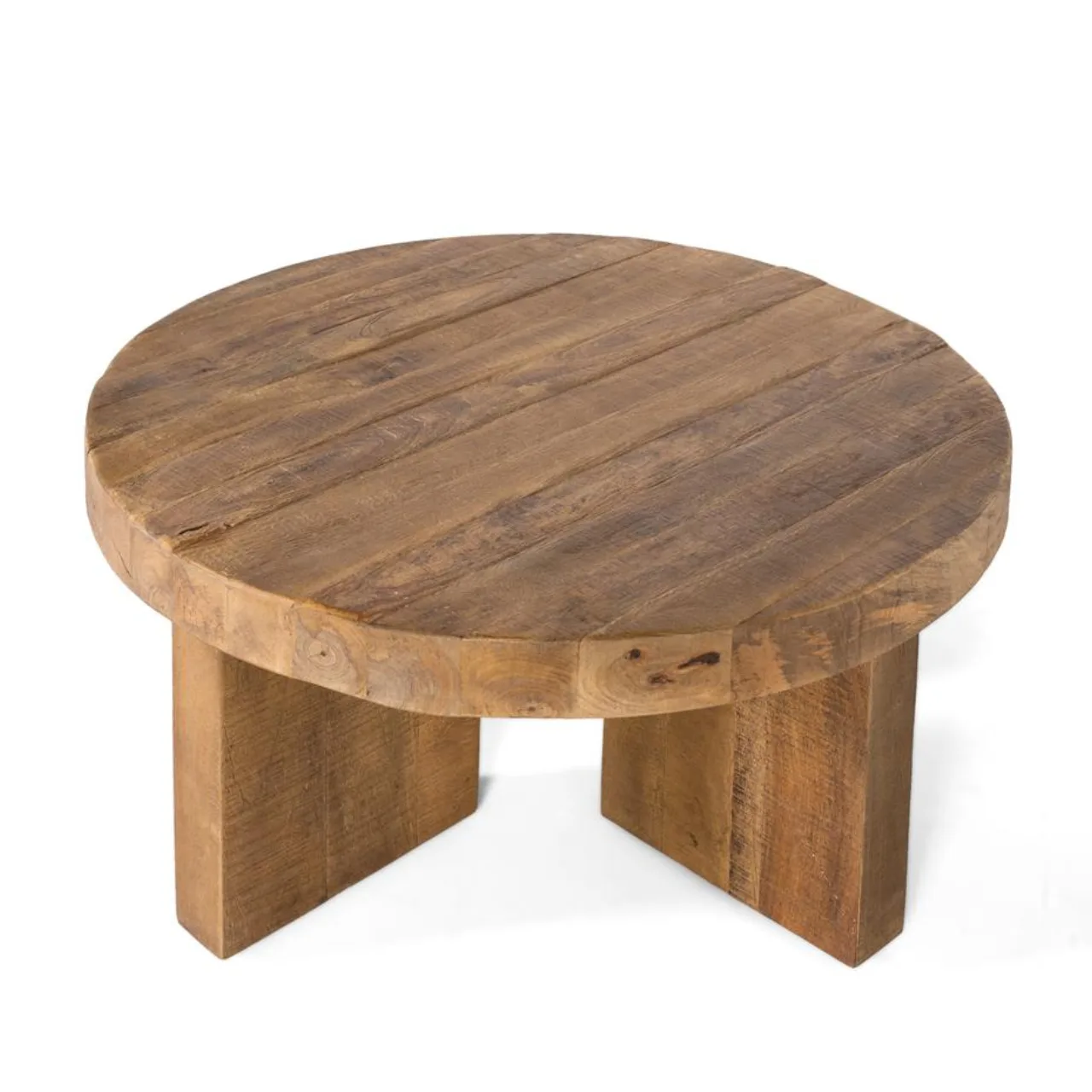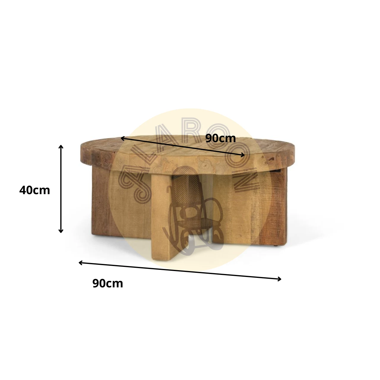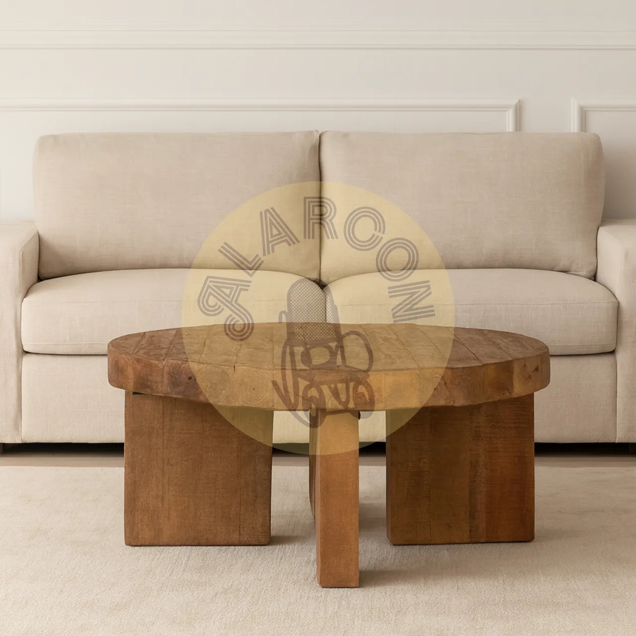 Con esta mesa de centro redonda transformarás tu salón en un espacio con carácter. Fabricada en madera maciza de mango, destaca por su acabado natural que resalta las vetas y tonalidades marrones propias de este material único.