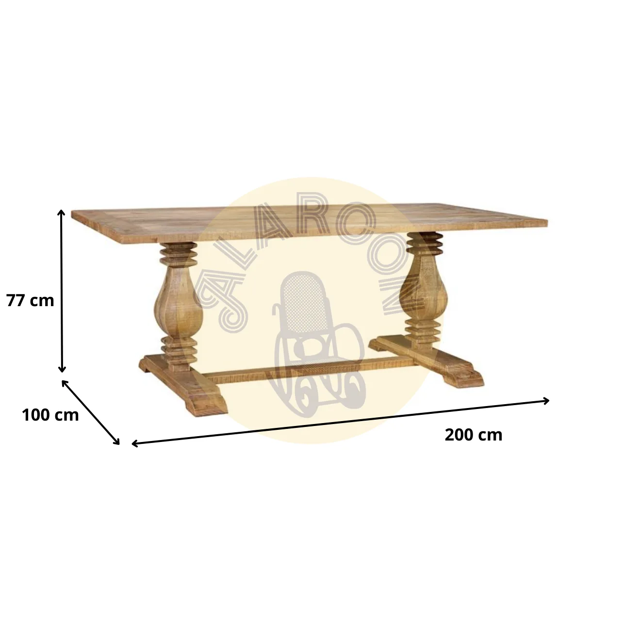Con unas dimensiones de 200 x 100 cm, ofrece una superficie amplia y funcional para el día a día o reuniones especiales, manteniendo una estética atemporal que no pasa de moda. La estructura aporta estabilidad y una imagen robusta sin perder elegancia visual.