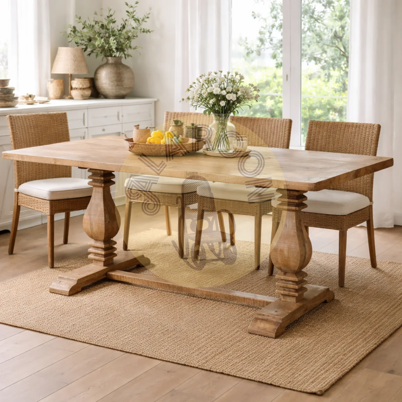 Fabricada en madera de mango macizo, esta mesa de comedor destaca por su acabado natural y una presencia sólida que encaja con interiores rústicos y contemporáneos. Su diseño transmite autenticidad, carácter y una sensación de calidad pensada para espacios donde el comedor es protagonista.
