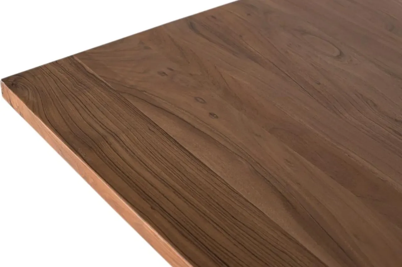 Esta mesa de comedor destaca por su diseño robusto y contemporáneo, elaborada íntegramente en madera maciza de acacia, un material natural, sostenible y de gran durabilidad. Su acabado en color miel realza las vetas naturales, aportando calidez y una estética elegante que encaja en espacios modernos y rústicos.