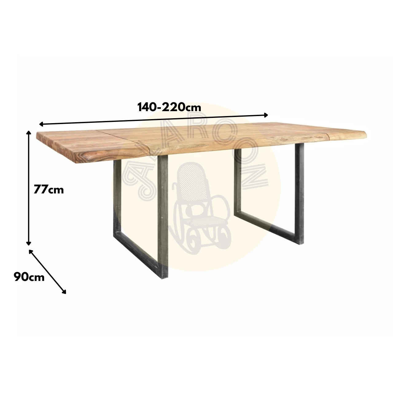 Dimensiones de 140(220)x90x77 cm que ofrecen una superficie amplia para comidas y reuniones.