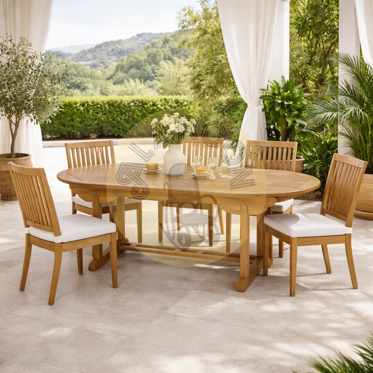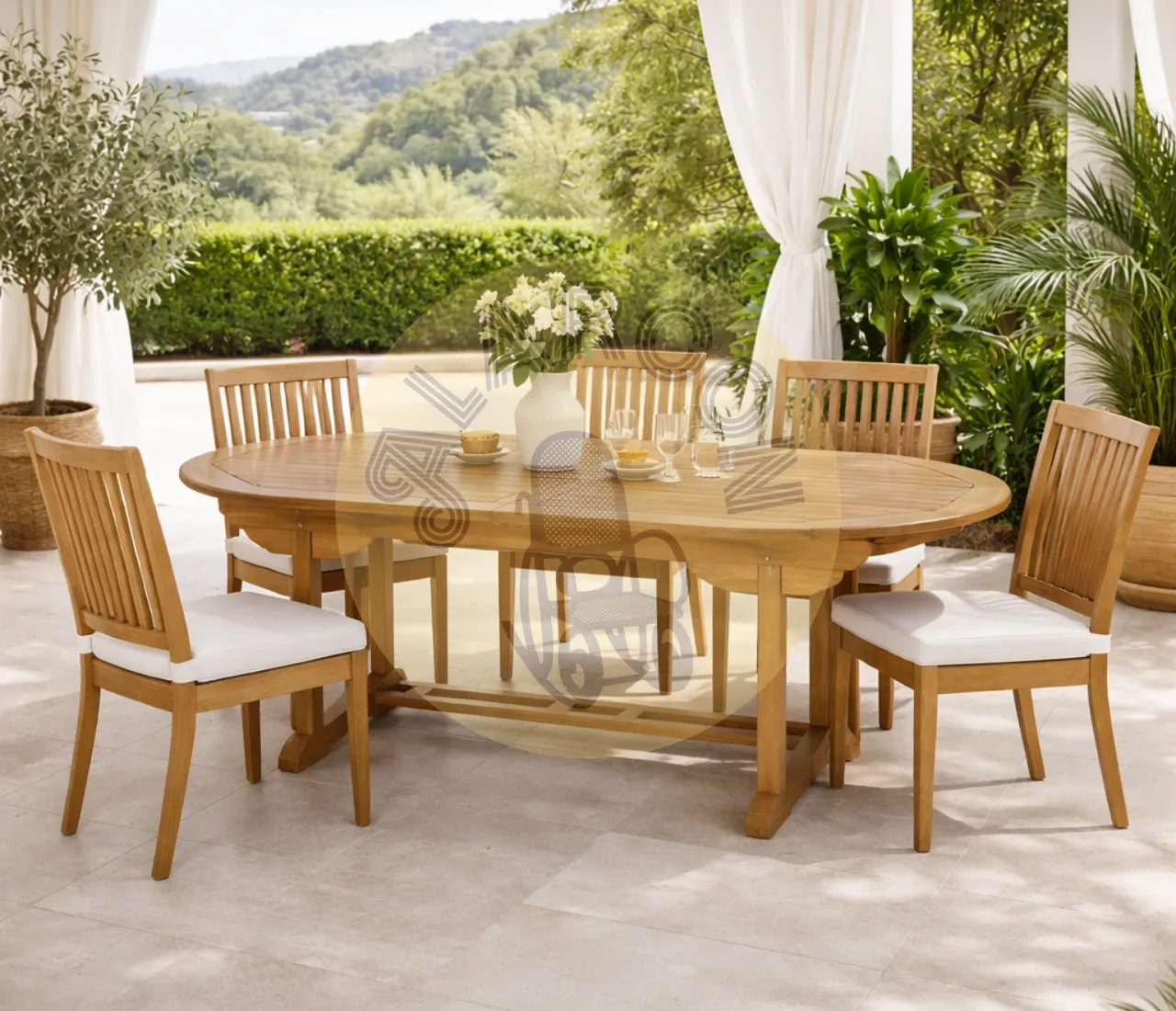 Madera de teca maciza: Material reconocido por su alta resistencia y durabilidad, ideal para muebles de exterior expuestos a uso frecuente en jardín o terraza.