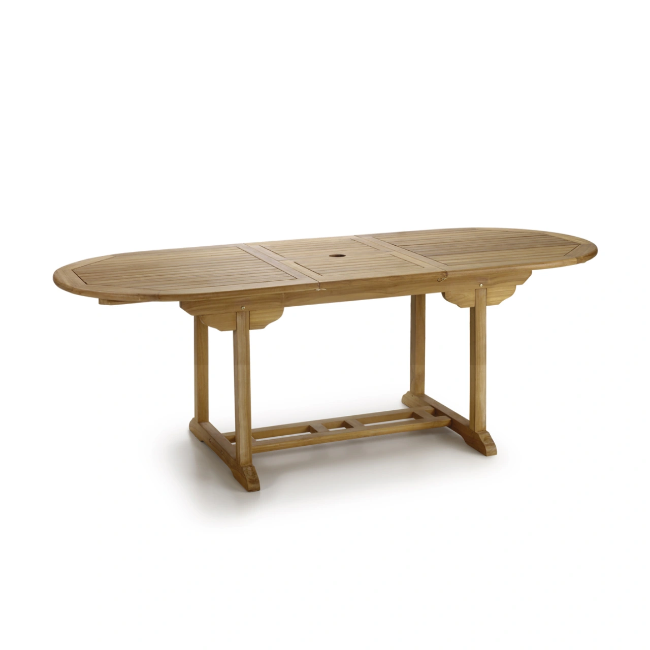 Gracias a su sistema extensible, esta mesa de teca se adapta fácilmente a diferentes momentos y número de comensales, pasando de 170 – 220 x 90 x 76 cm para ofrecer mayor superficie cuando la necesitas. Su construcción en madera maciza aporta durabilidad y estabilidad, convirtiéndola en una opción fiable para el exterior.