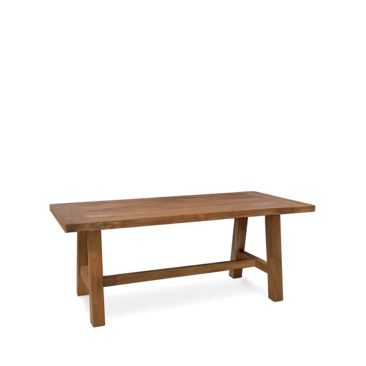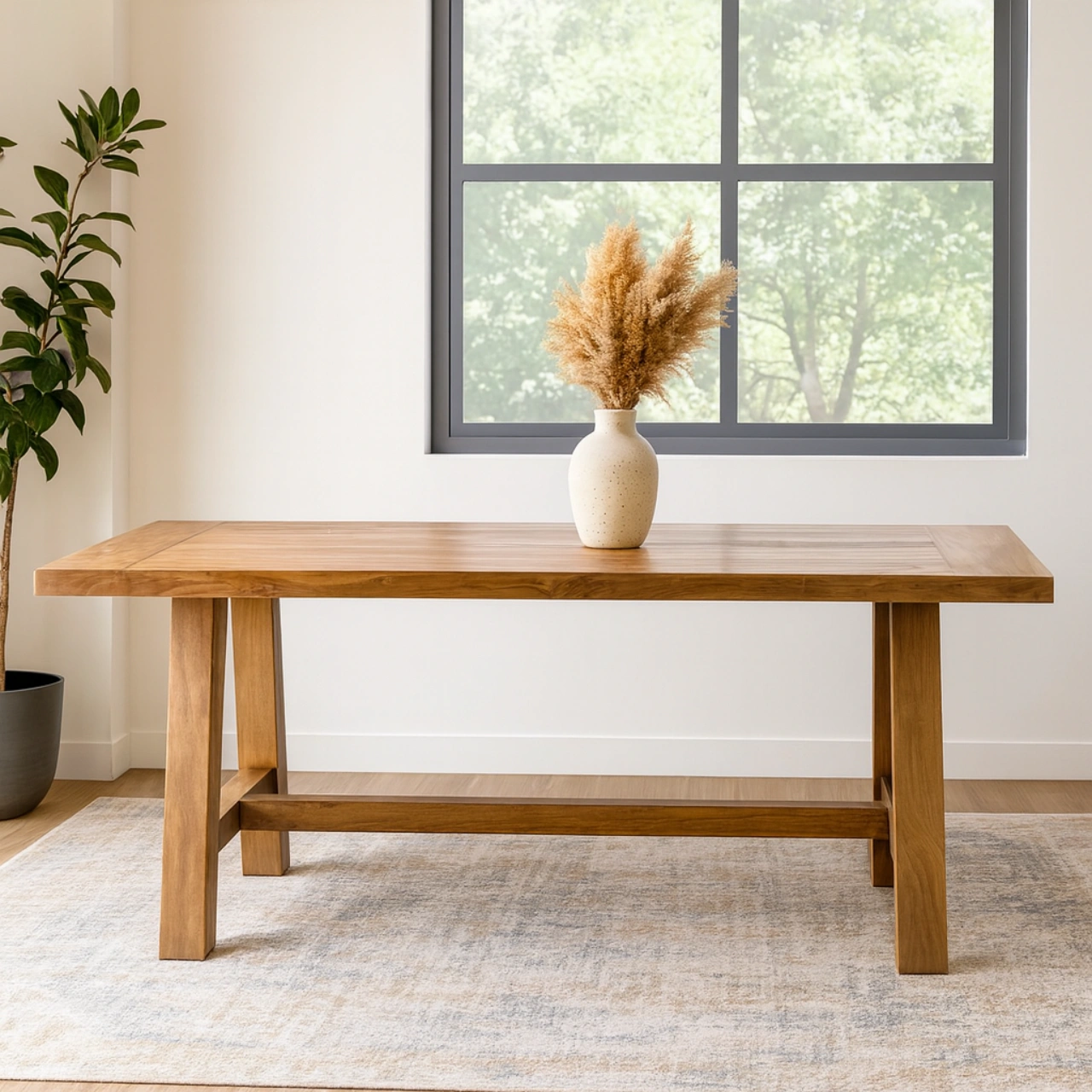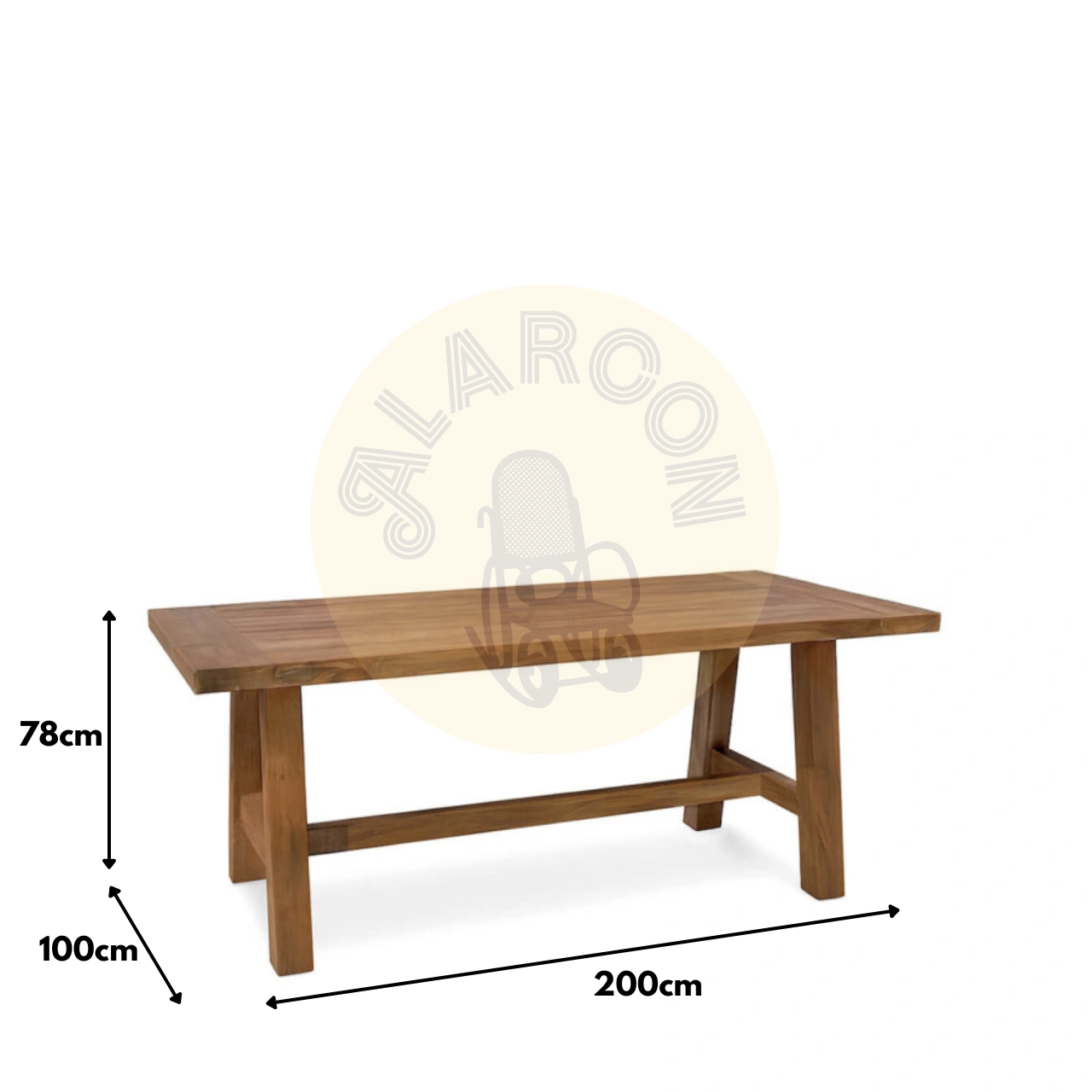 Con unas medidas de 200 × 100 × 78 cm, ofrece una superficie amplia y estable, perfecta para reuniones, comidas diarias o como mesa protagonista en el comedor. Su acabado artesanal potencia la textura de la teca y añade un toque distintivo que realza cualquier ambiente.