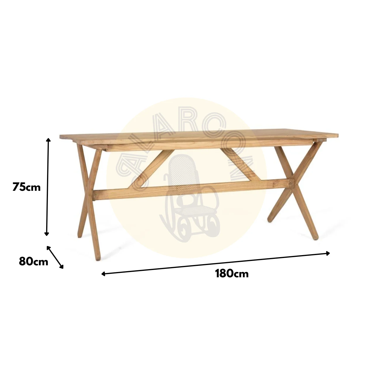 Su diseño funcional incorpora una estructura desmontable, facilitando el transporte y el almacenamiento sin renunciar a la estabilidad ni a la estética cálida y auténtica de la madera maciza.
