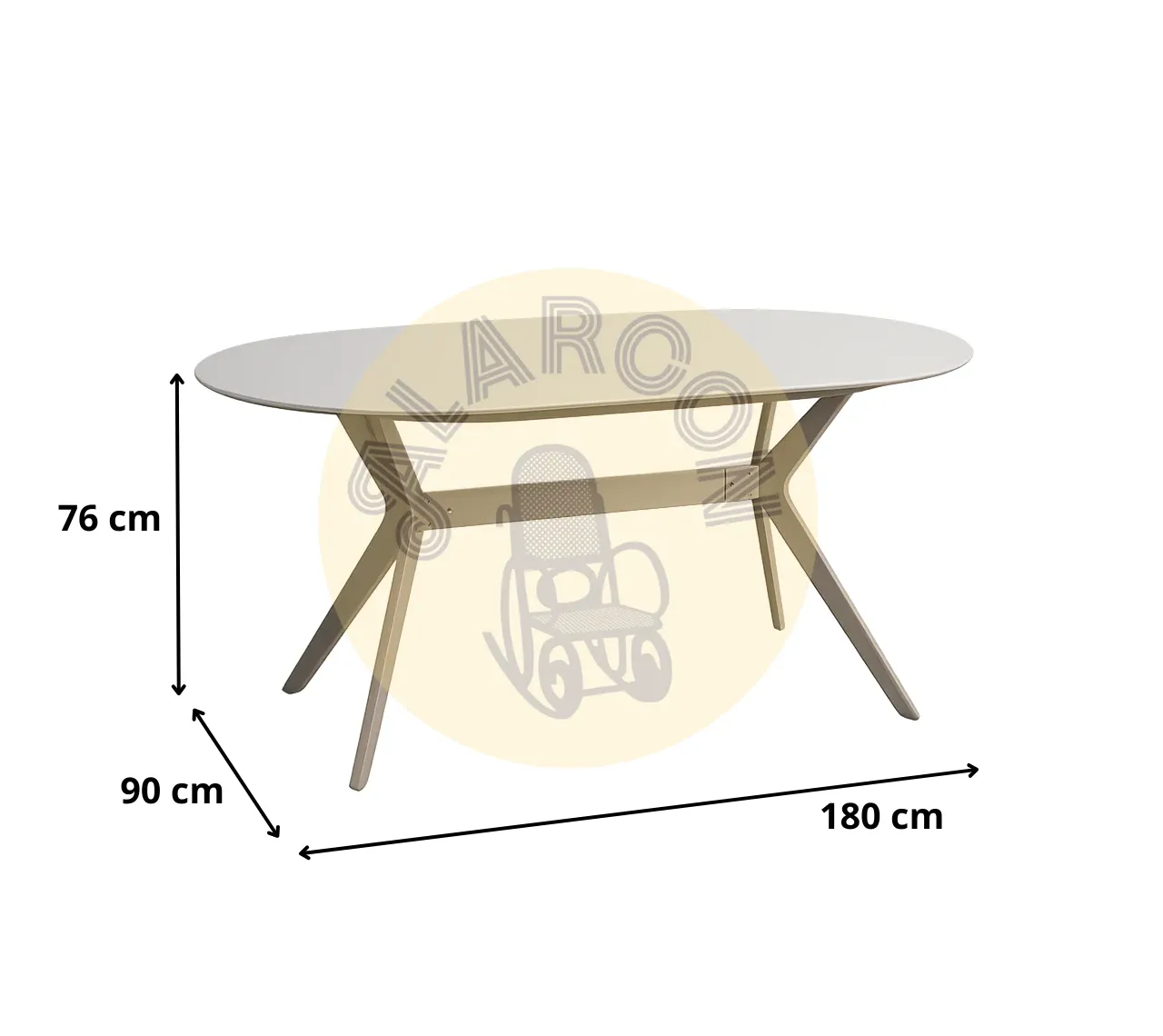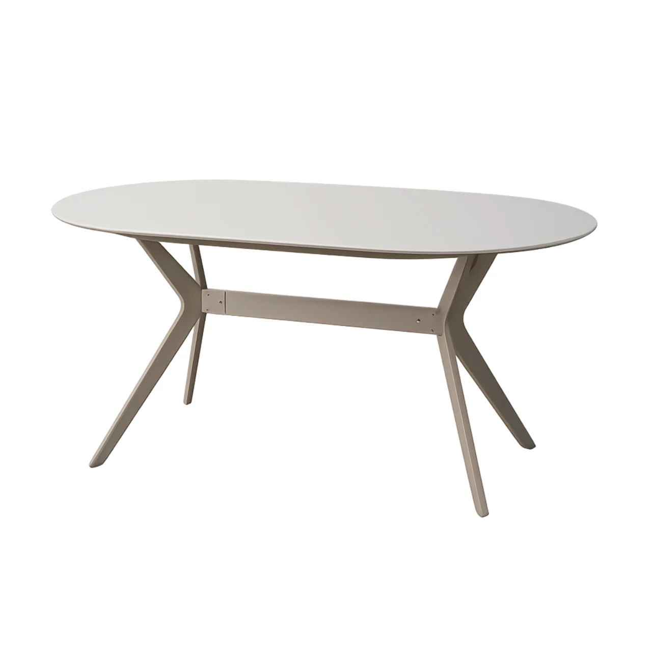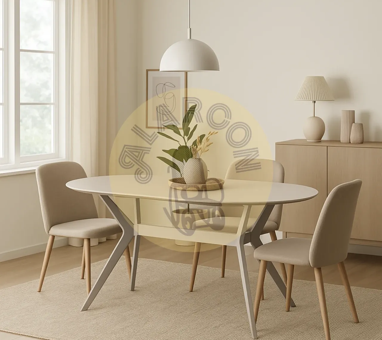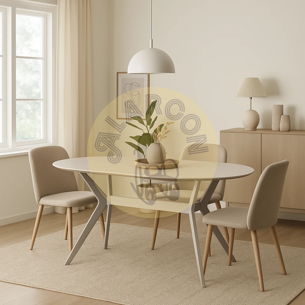 Diseñada para espacios modernos, esta mesa de comedor ovalada combina elegancia y funcionalidad. Su estructura de DM lacado en color blanco gris aporta un estilo limpio y contemporáneo que se adapta a diferentes tipos de decoración.