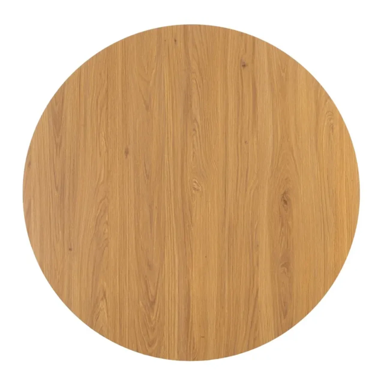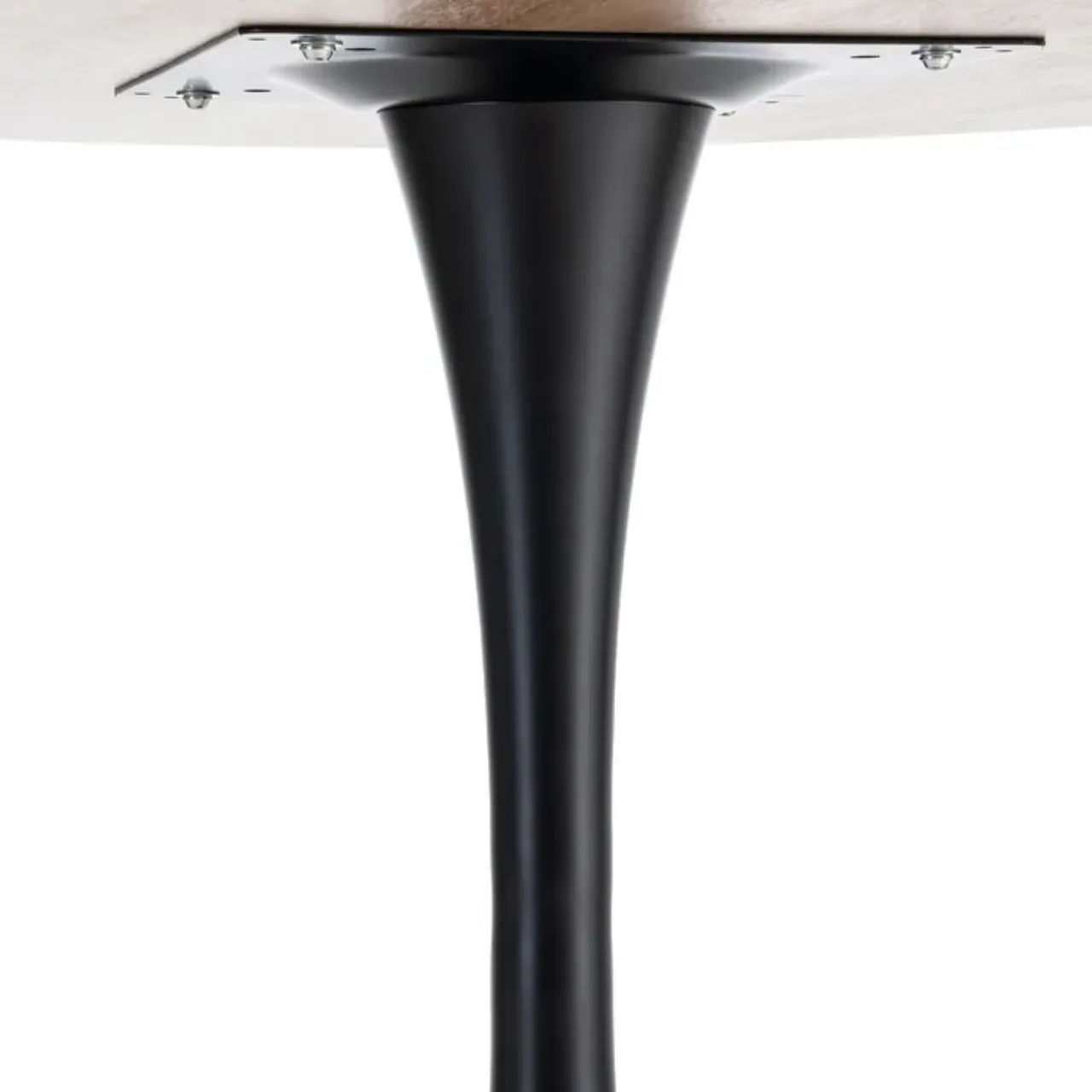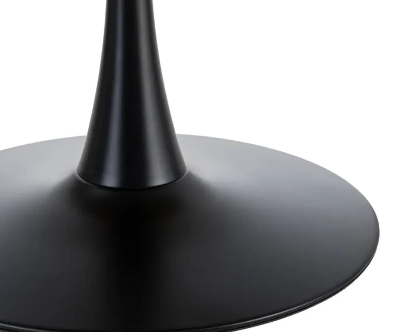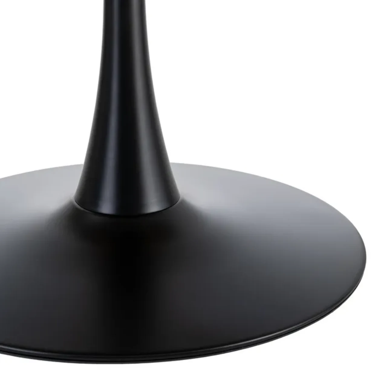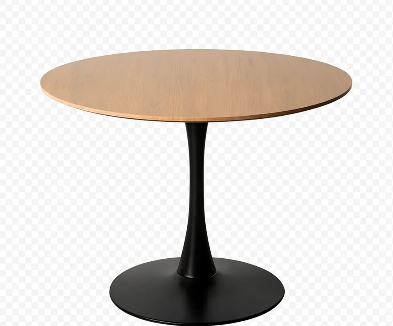 Diseñada para espacios contemporáneos, esta mesa de comedor redonda combina la calidez del color natural con la elegancia del metal negro. Su estructura firme y su base central de 60 cm aportan estabilidad y un estilo sofisticado que complementa cualquier ambiente.