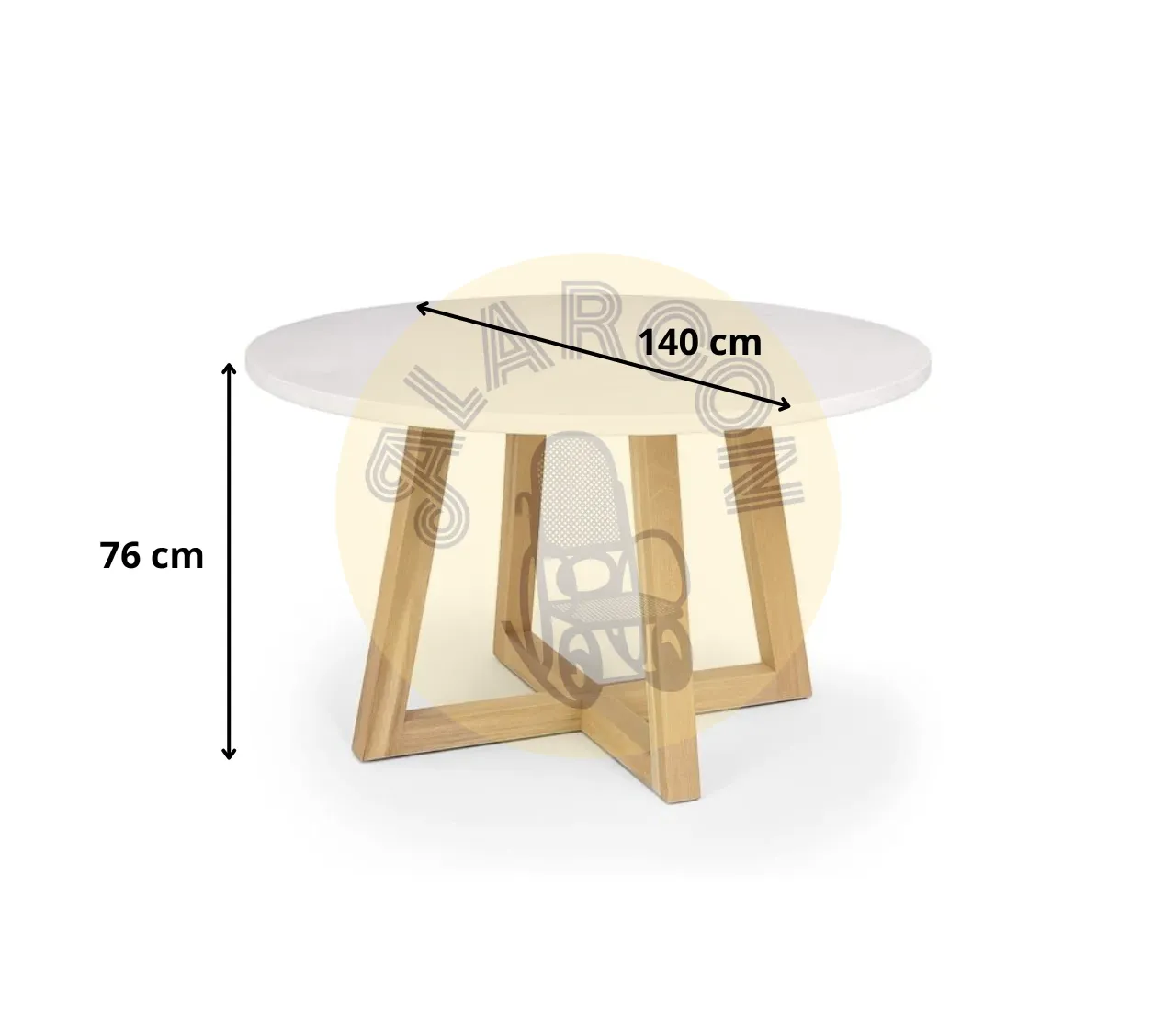 Con un diámetro de 140 cm y una altura de 76 cm, este modelo permite reunir a familiares o amigos con total comodidad. Requiere un sencillo montaje y se mantiene fácilmente con un paño ligeramente humedecido, garantizando una larga vida útil y belleza constante.