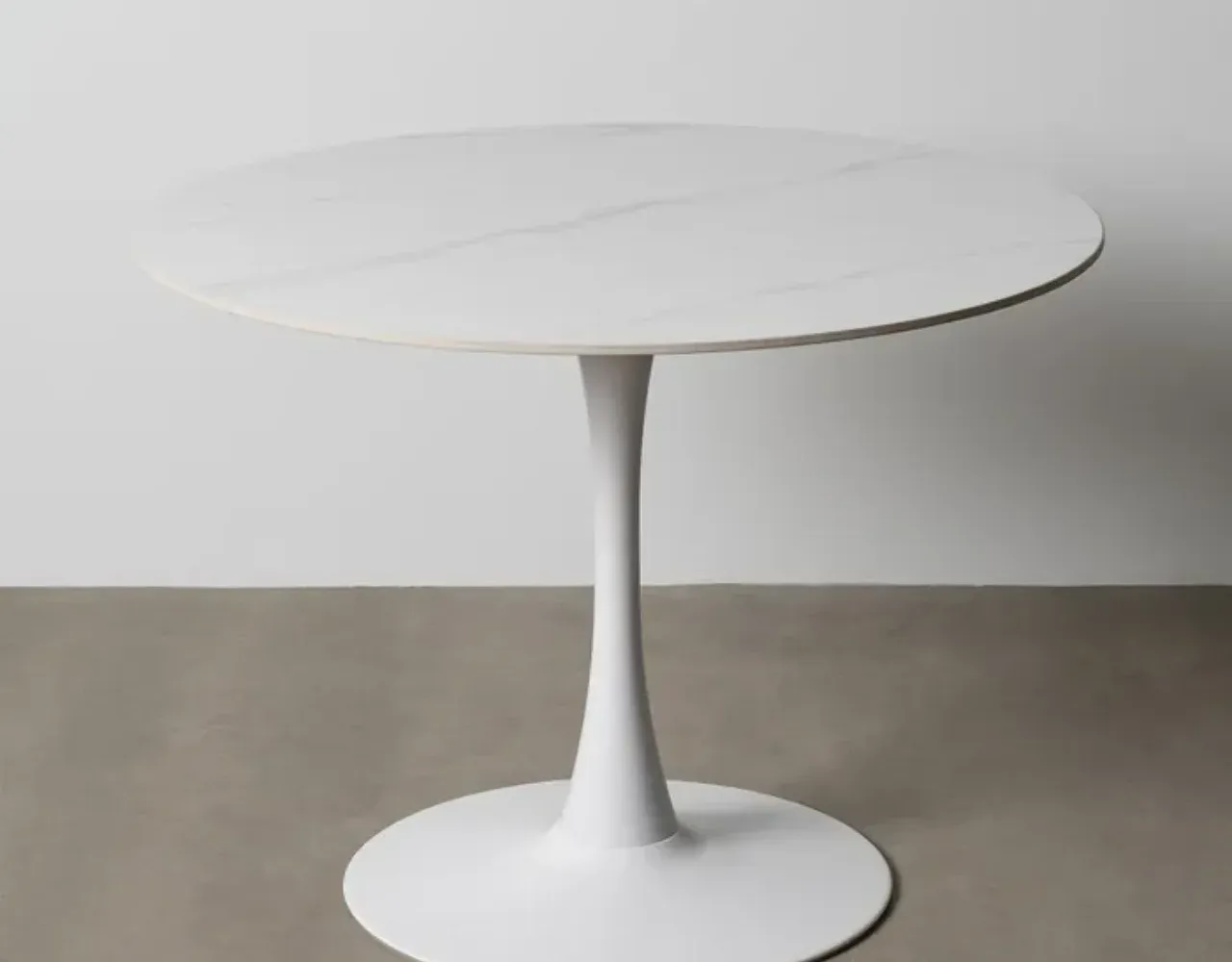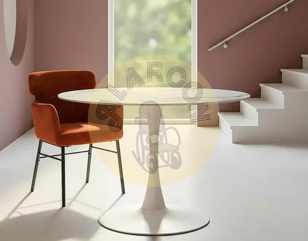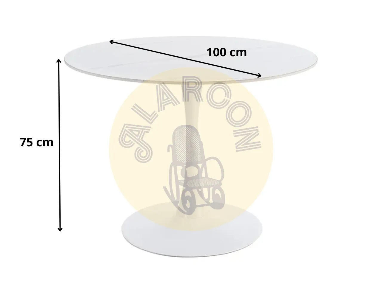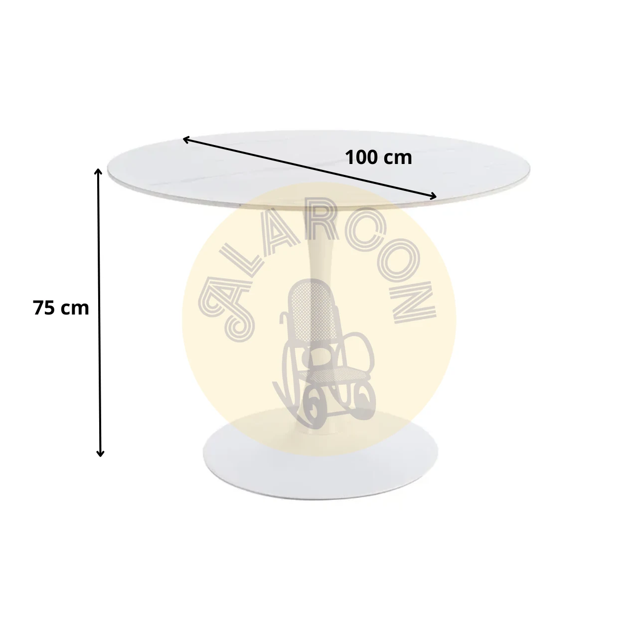 Diseñada para espacios contemporáneos, esta mesa de comedor redonda combina piedra sinterizada y base metálica para ofrecer una estética limpia y resistente. Su acabado blanco realza la luminosidad del ambiente y se integra fácilmente en diferentes estilos decorativos.