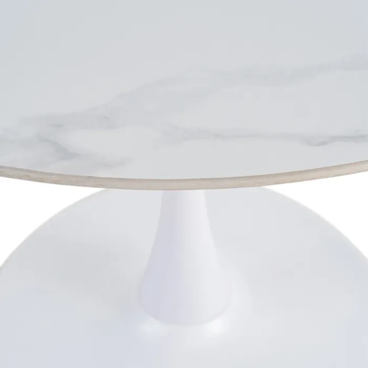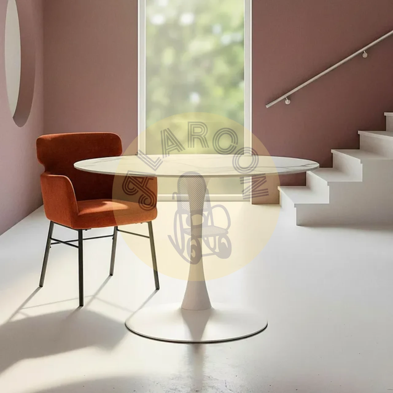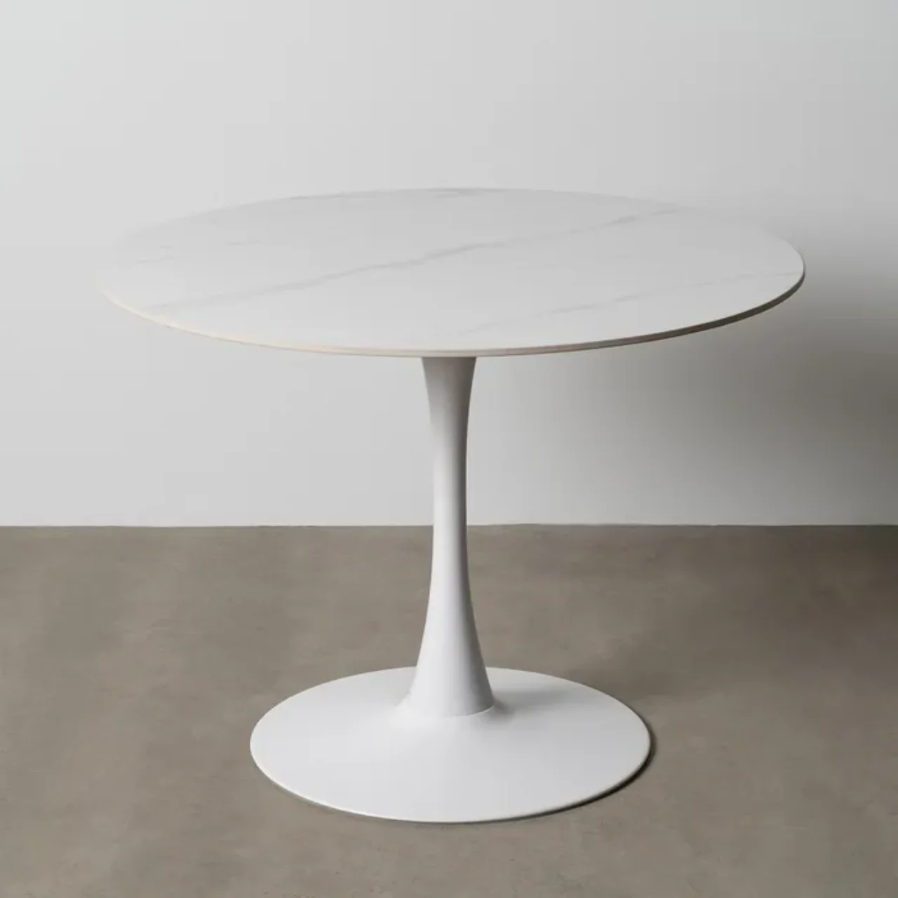 Diseñada para espacios contemporáneos, esta mesa de comedor redonda combina piedra sinterizada y base metálica para ofrecer una estética limpia y resistente. Su acabado blanco realza la luminosidad del ambiente y se integra fácilmente en diferentes estilos decorativos.