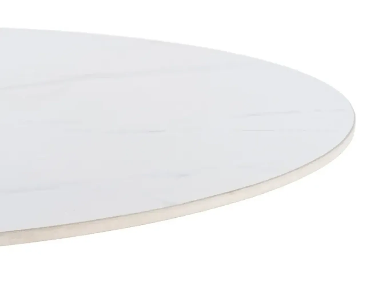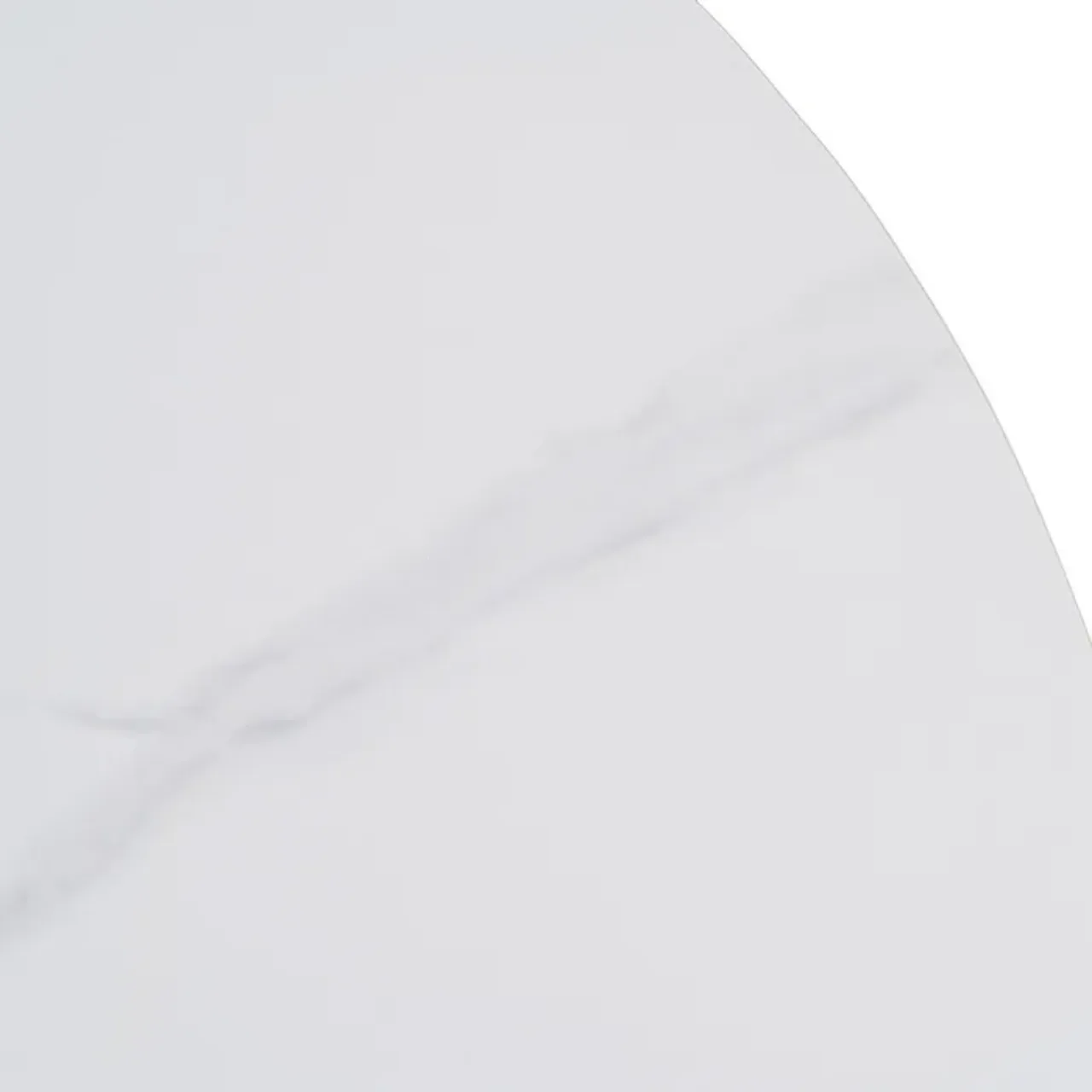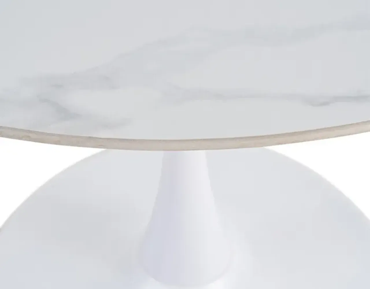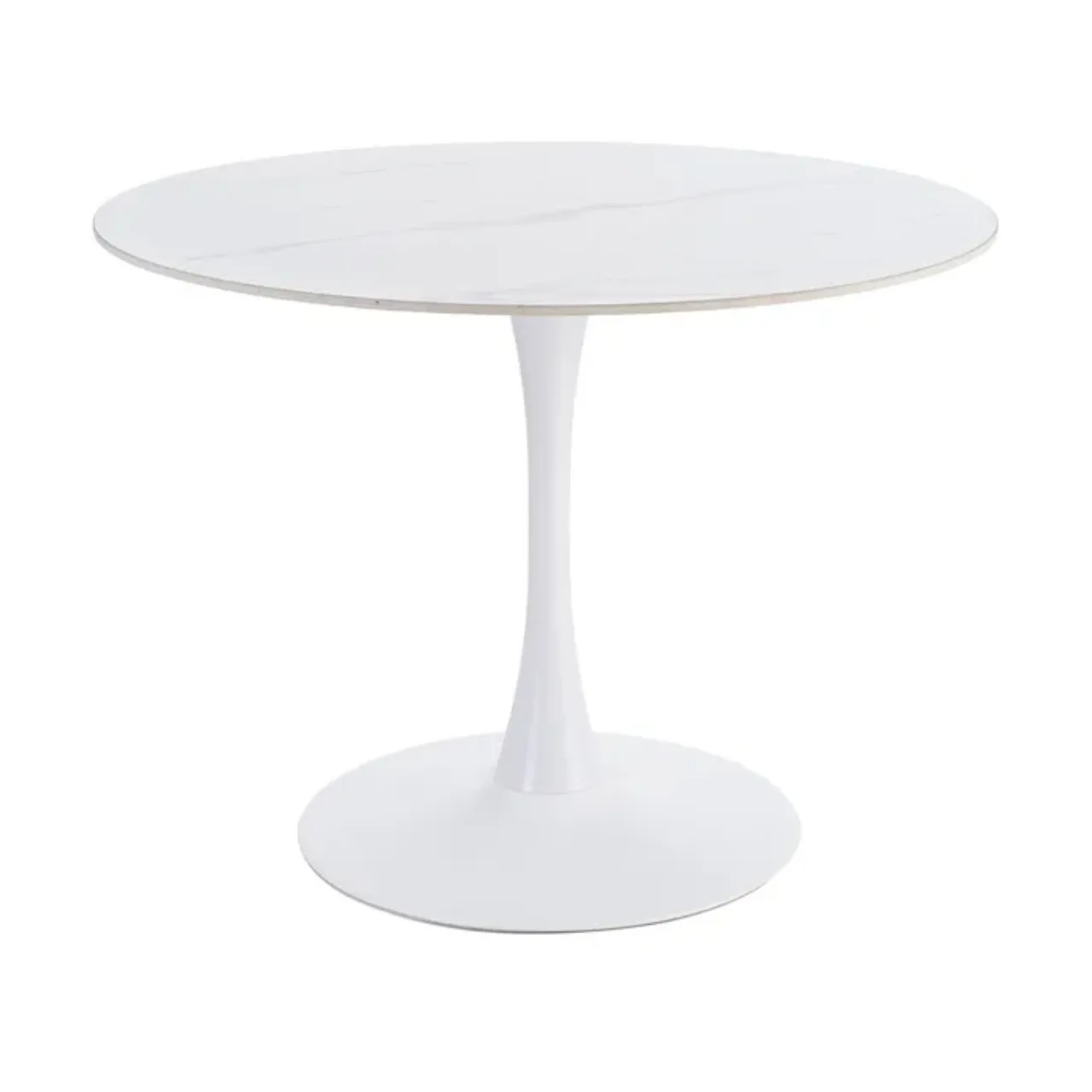 Diseñada para espacios contemporáneos, esta mesa de comedor redonda combina piedra sinterizada y base metálica para ofrecer una estética limpia y resistente. Su acabado blanco realza la luminosidad del ambiente y se integra fácilmente en diferentes estilos decorativos.
