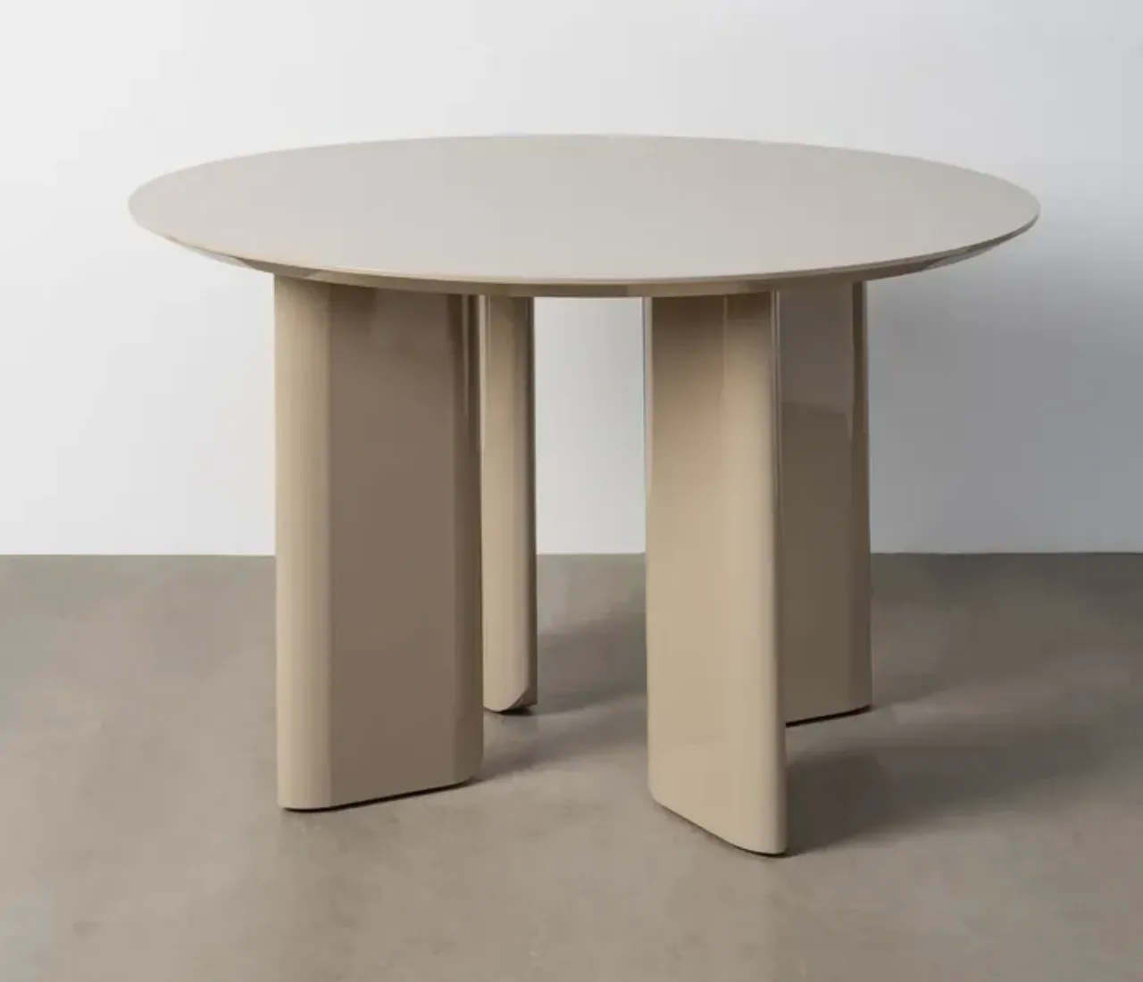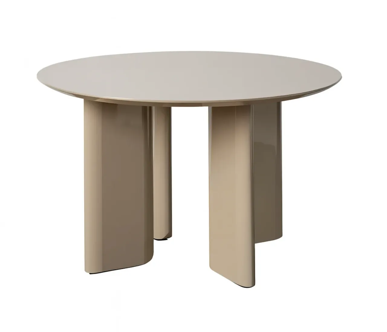 Esta mesa de comedor redonda en color taupe destaca por su diseño moderno y su acabado en alto brillo, ideal para espacios que buscan un toque contemporáneo y elegante. Su estructura de MDF ofrece una superficie sólida y duradera, pensada para acompañar tus reuniones diarias.
