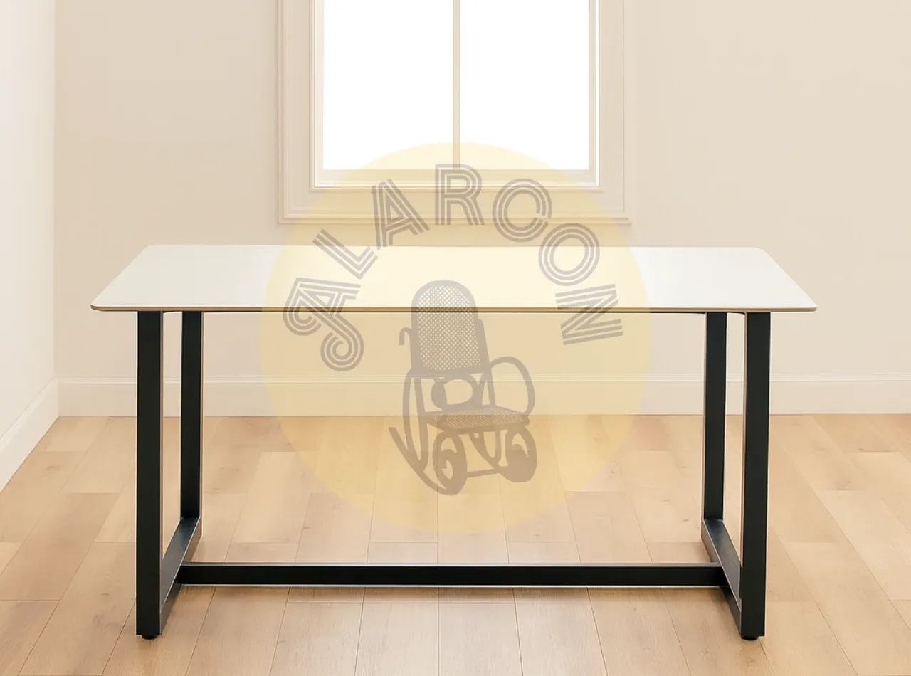 Su tapa de porcelánico no solo aporta un toque sofisticado, sino que también garantiza una superficie duradera y fácil de limpiar, ideal para soportar las inclemencias del tiempo sin perder su belleza. La estructura está compuesta por un robusto acero, diseñado para ofrecer estabilidad y resistencia en exteriores, asegurando una larga vida útil.