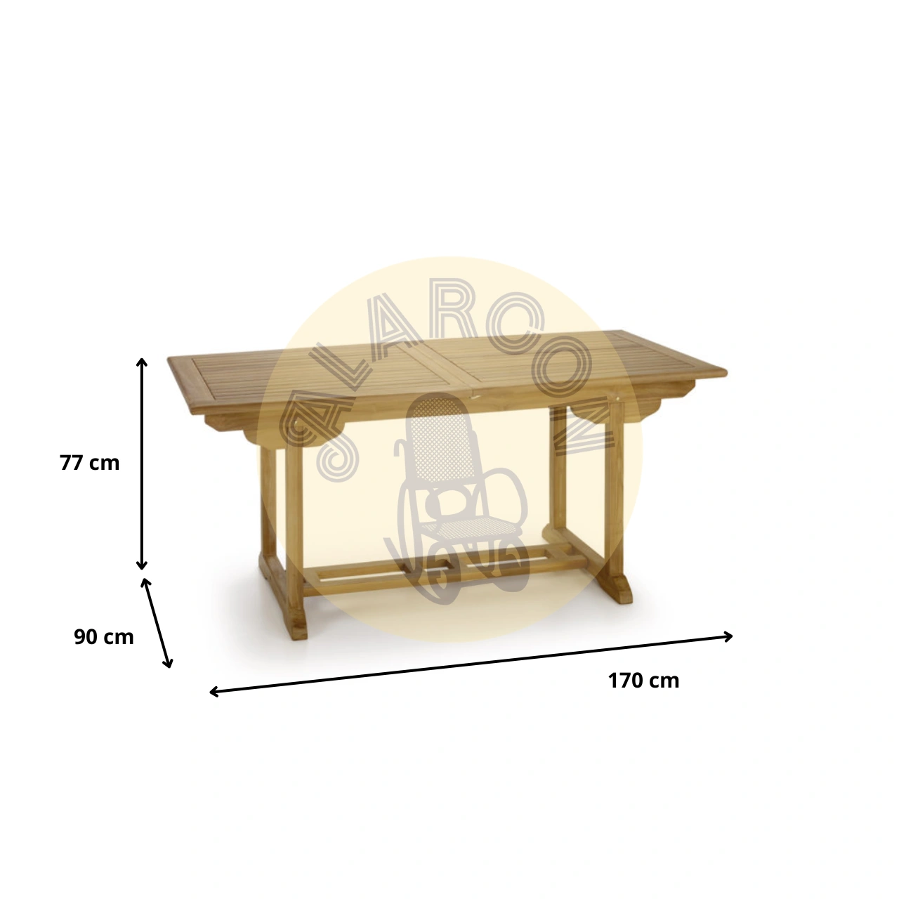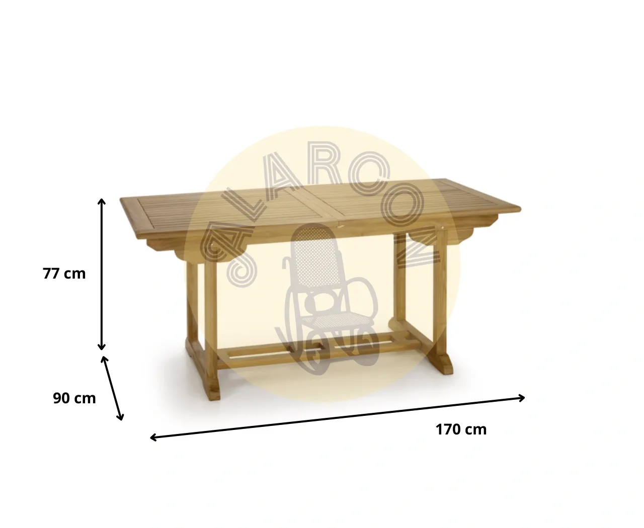 Gracias a su sistema extensible, la mesa se adapta fácilmente a diferentes necesidades, pasando de 170 – 220 x 90 x 77 para ofrecer mayor superficie cuando lo necesites. Su estructura robusta y el carácter de la madera maciza garantizan una mesa exterior pensada para un uso prolongado en terraza o jardín.
