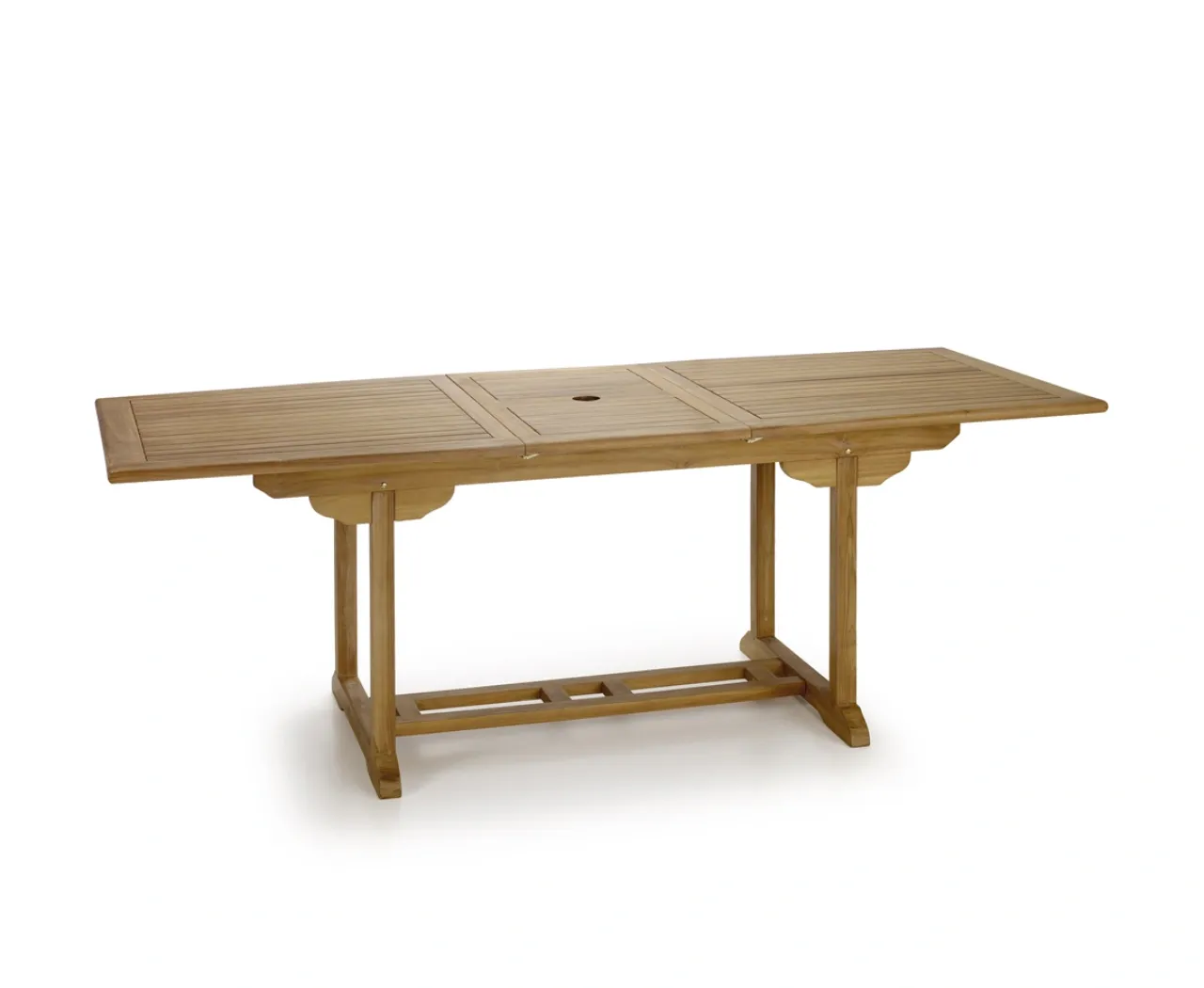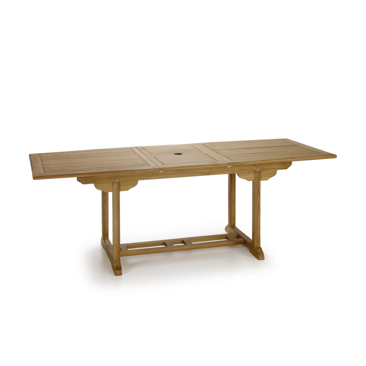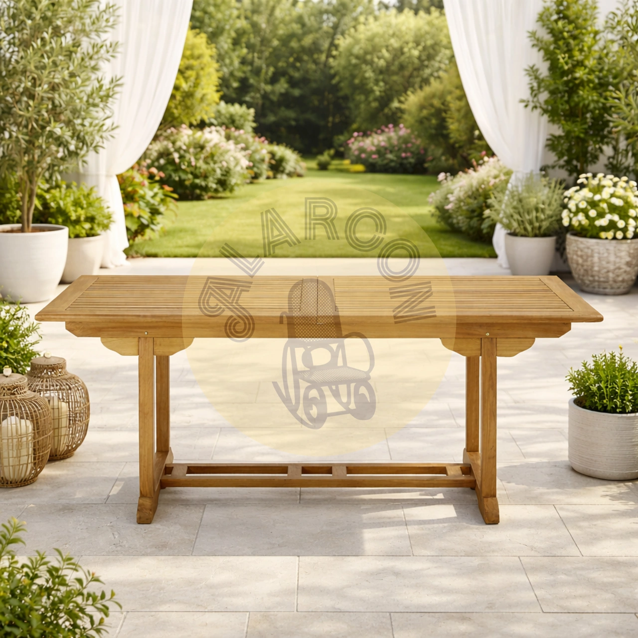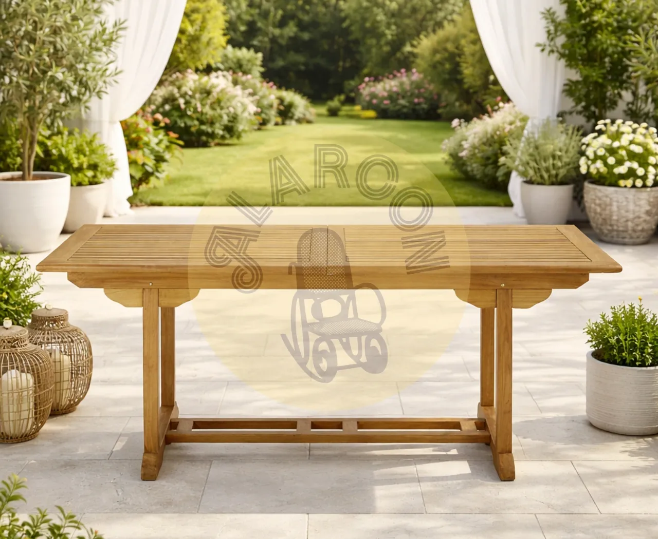 Fabricada en madera de teca maciza, esta mesa de jardín extensible combina durabilidad, diseño natural y una estética atemporal perfecta para cualquier espacio exterior. Su elaboración hecha a mano resalta la calidad del material y convierte cada pieza en un elemento sólido y elegante para crear un auténtico comedor de exterior.