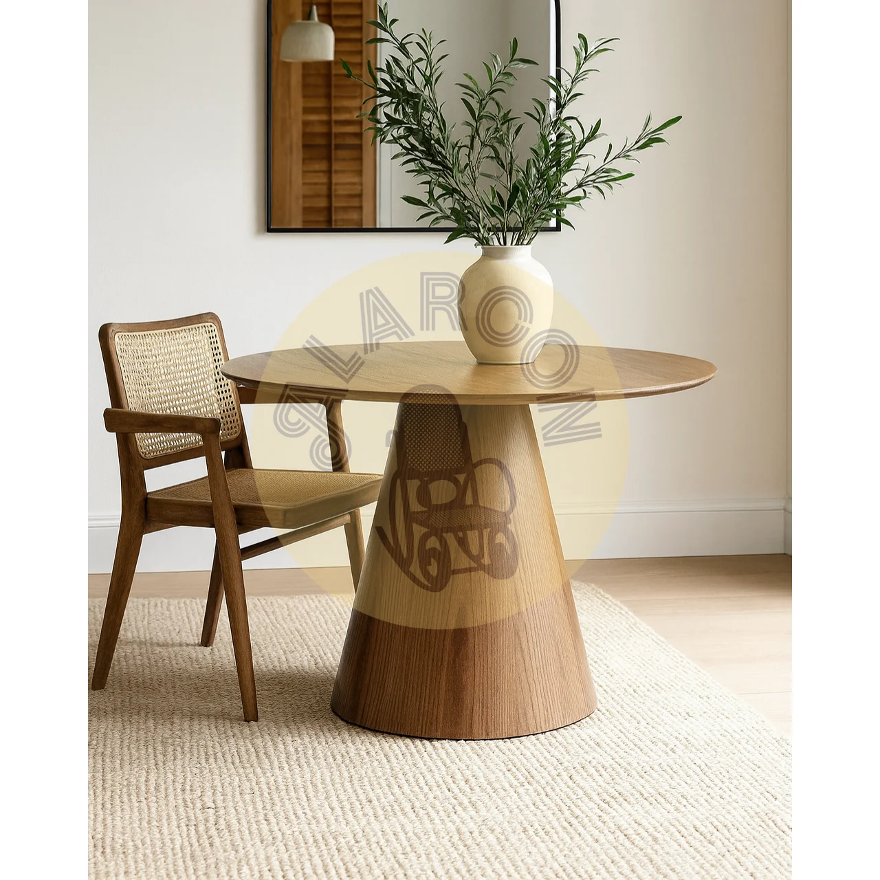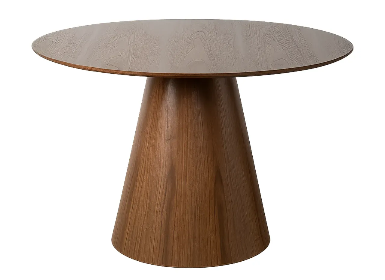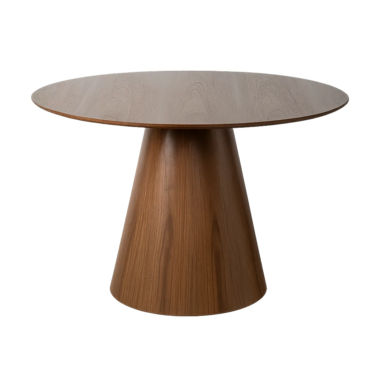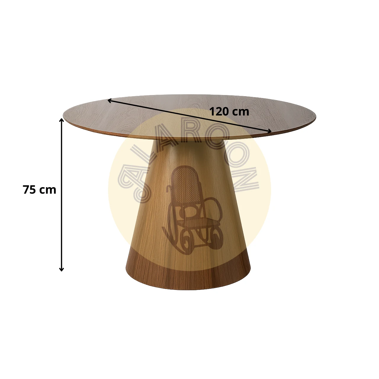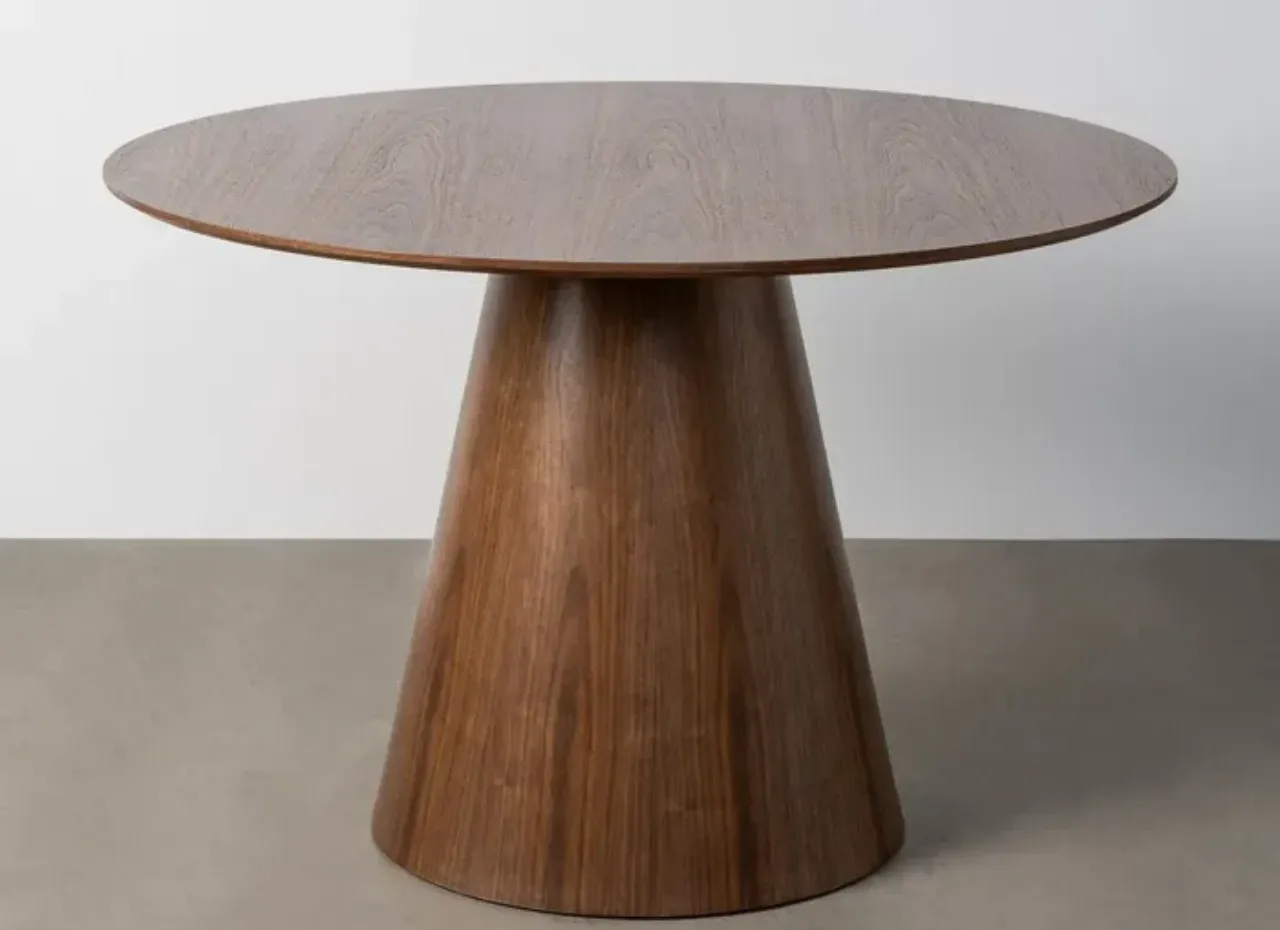 Diseñada para espacios modernos, esta mesa redonda de comedor combina elegancia y funcionalidad en un solo diseño. Fabricada en DM con vinilo imitación madera, ofrece una textura natural y un acabado cálido en color marrón que se adapta fácilmente a distintos estilos decorativos.