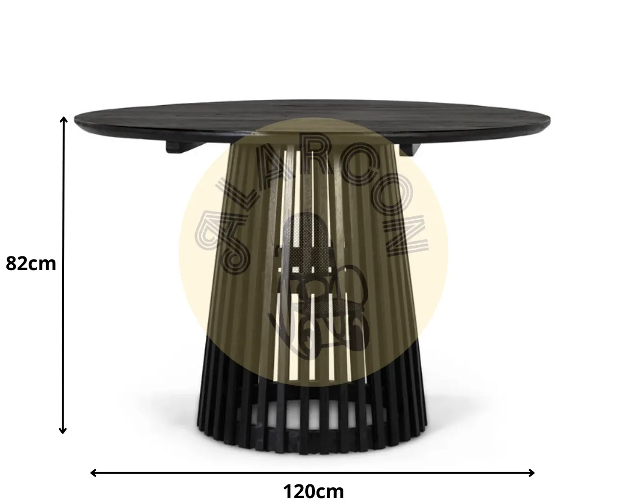 Con un diámetro de 120 cm y una altura de 82 cm, resulta perfecta como mesa de comedor pequeña o para utilizar en reuniones. Su superficie lisa y robusta la hace funcional, manteniendo al mismo tiempo un carácter elegante y moderno.