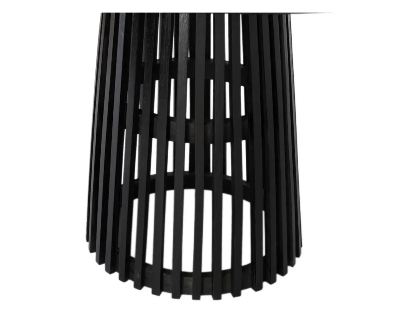 La base en forma de rejilla cilíndrica vertical ofrece un detalle arquitectónico que convierte la pieza en un punto focal dentro del ambiente. Su estructura sólida garantiza estabilidad sin perder ligereza visual.