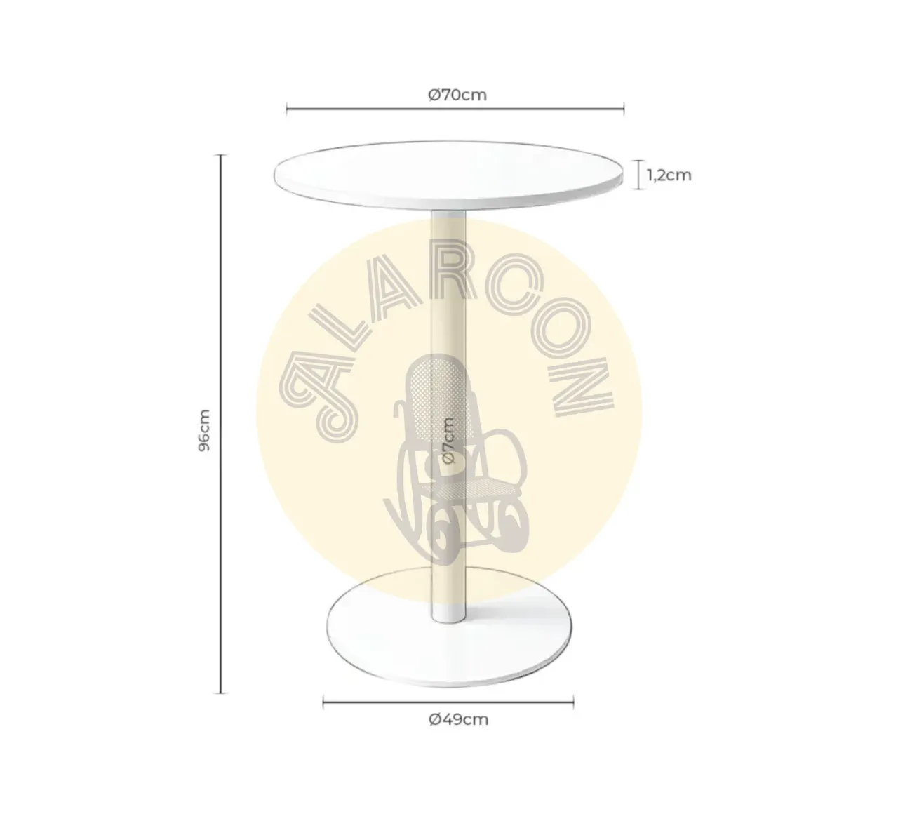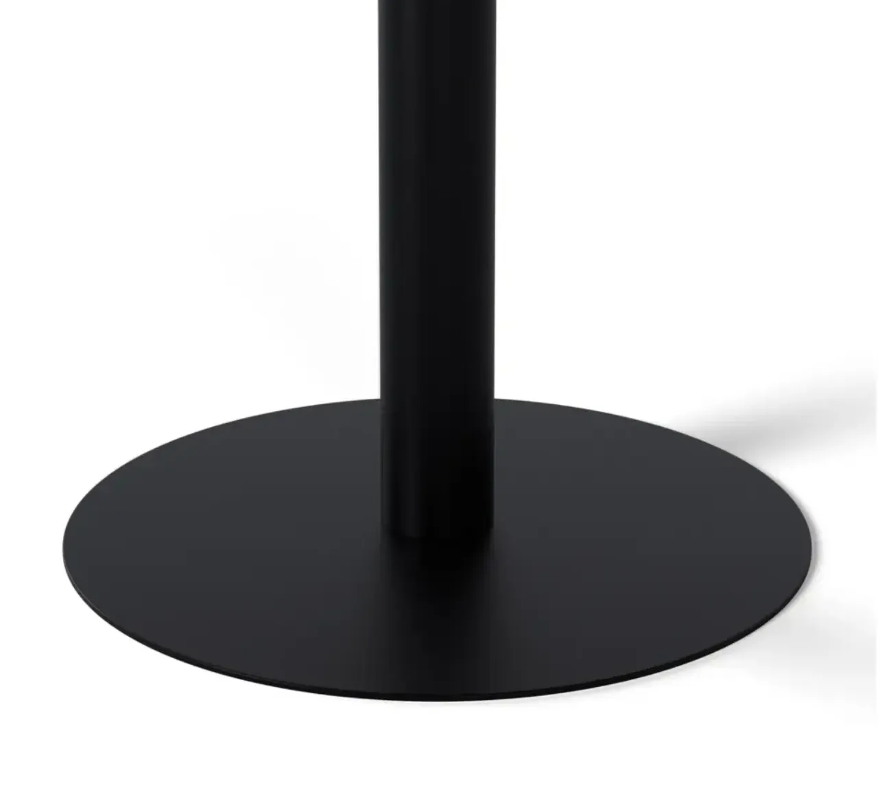 El tablero porcelánico garantiza una alta resistencia al uso diario, mientras que su estructura de metal con base de Ø49 cm asegura estabilidad y larga vida útil. Su acabado neutro permite integrarla fácilmente en diferentes estilos de decoración.