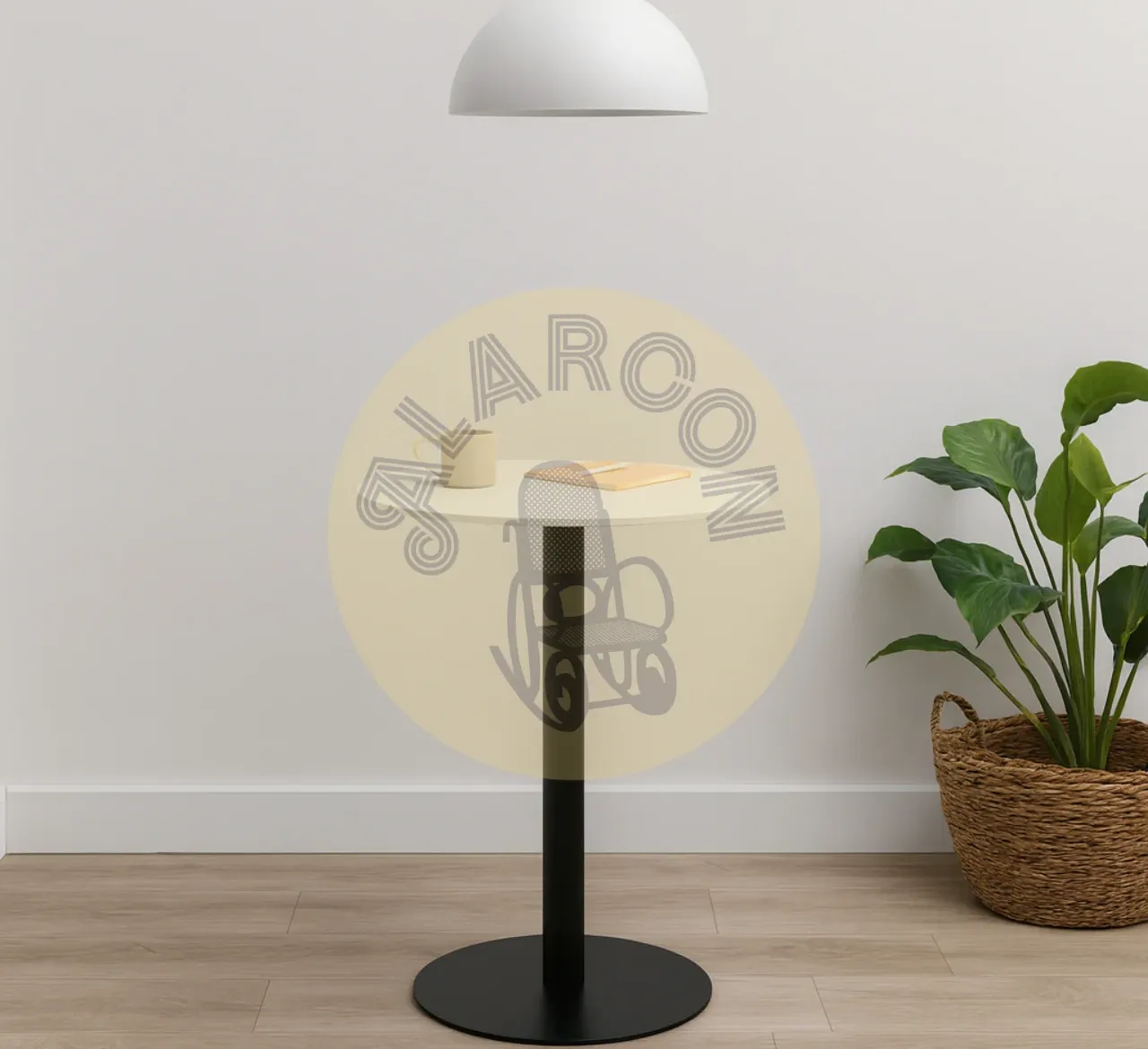 Mesa redonda de porcelánico y metal Ø70 cm – Moderna, resistente y elegante para comedor o cafetería – SOMCASA