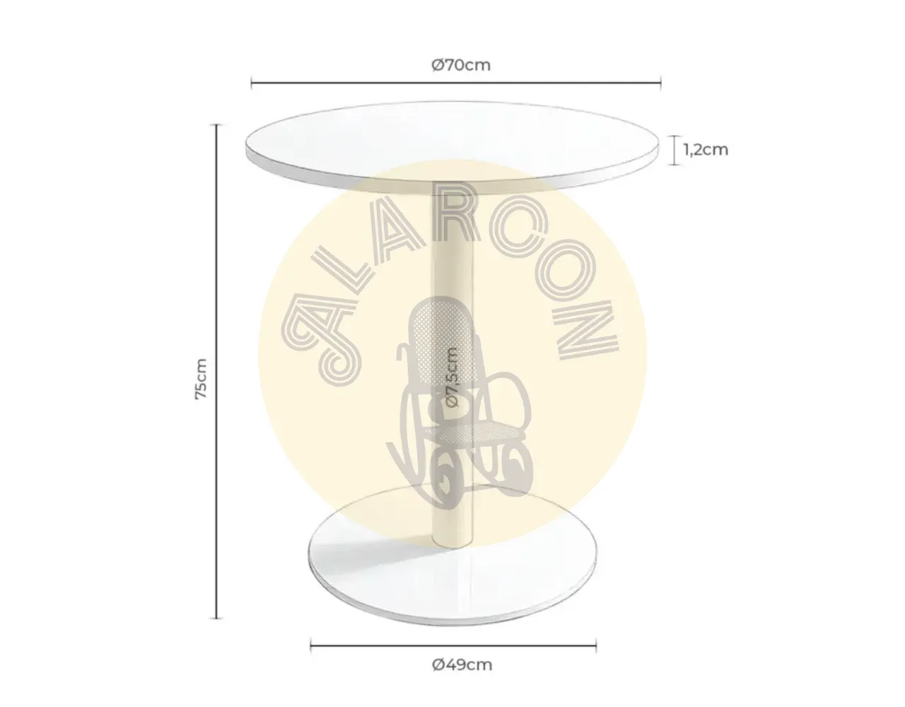 Esta mesa redonda porcelánica combina diseño moderno y funcionalidad en un formato compacto de Ø70 cm de diámetro y 75 cm de alto. Su tapa de porcelánico ofrece una superficie resistente, fácil de limpiar y con un acabado elegante que se adapta a distintos estilos de interior.