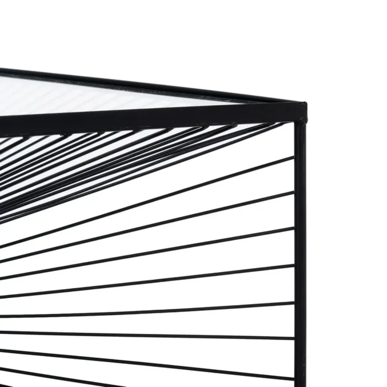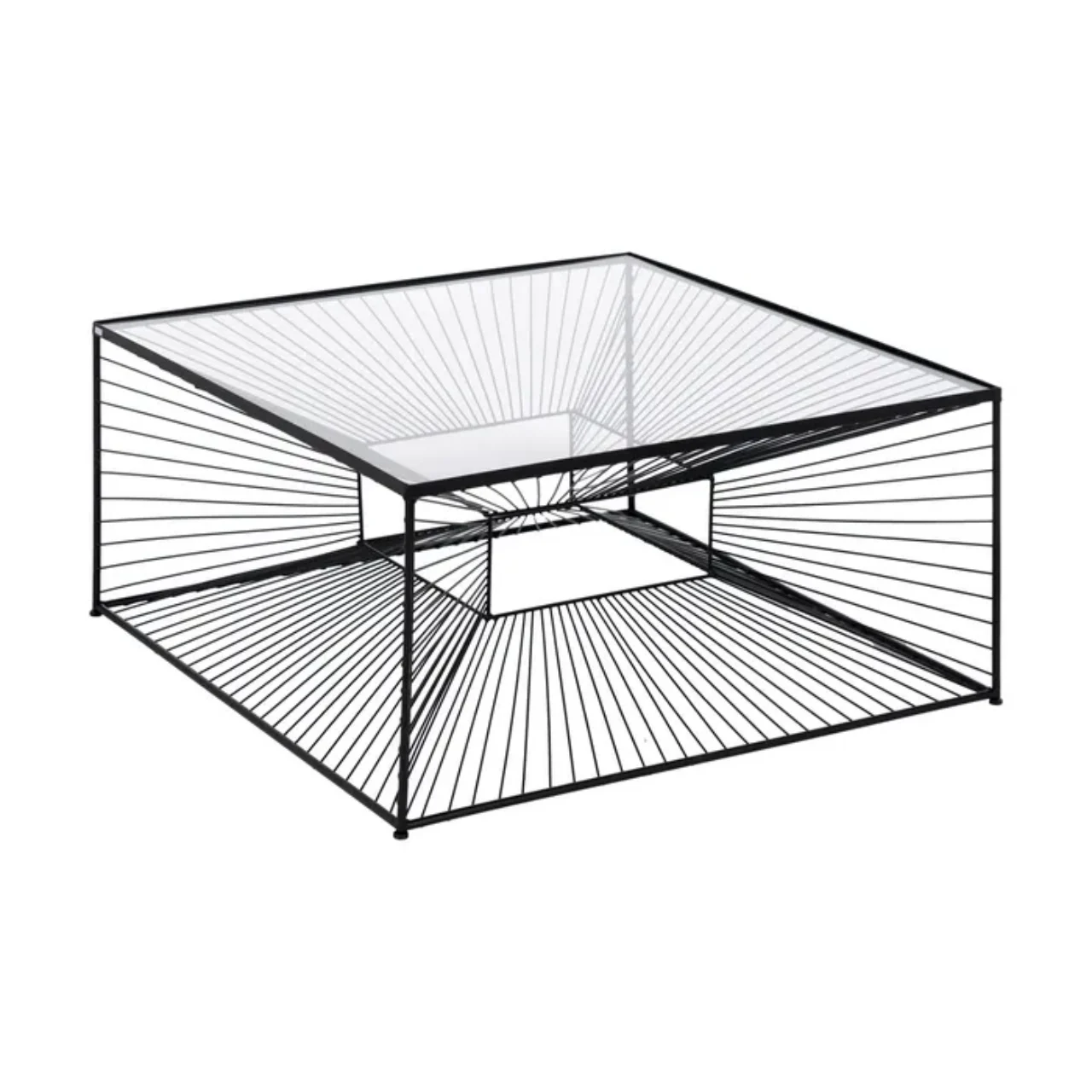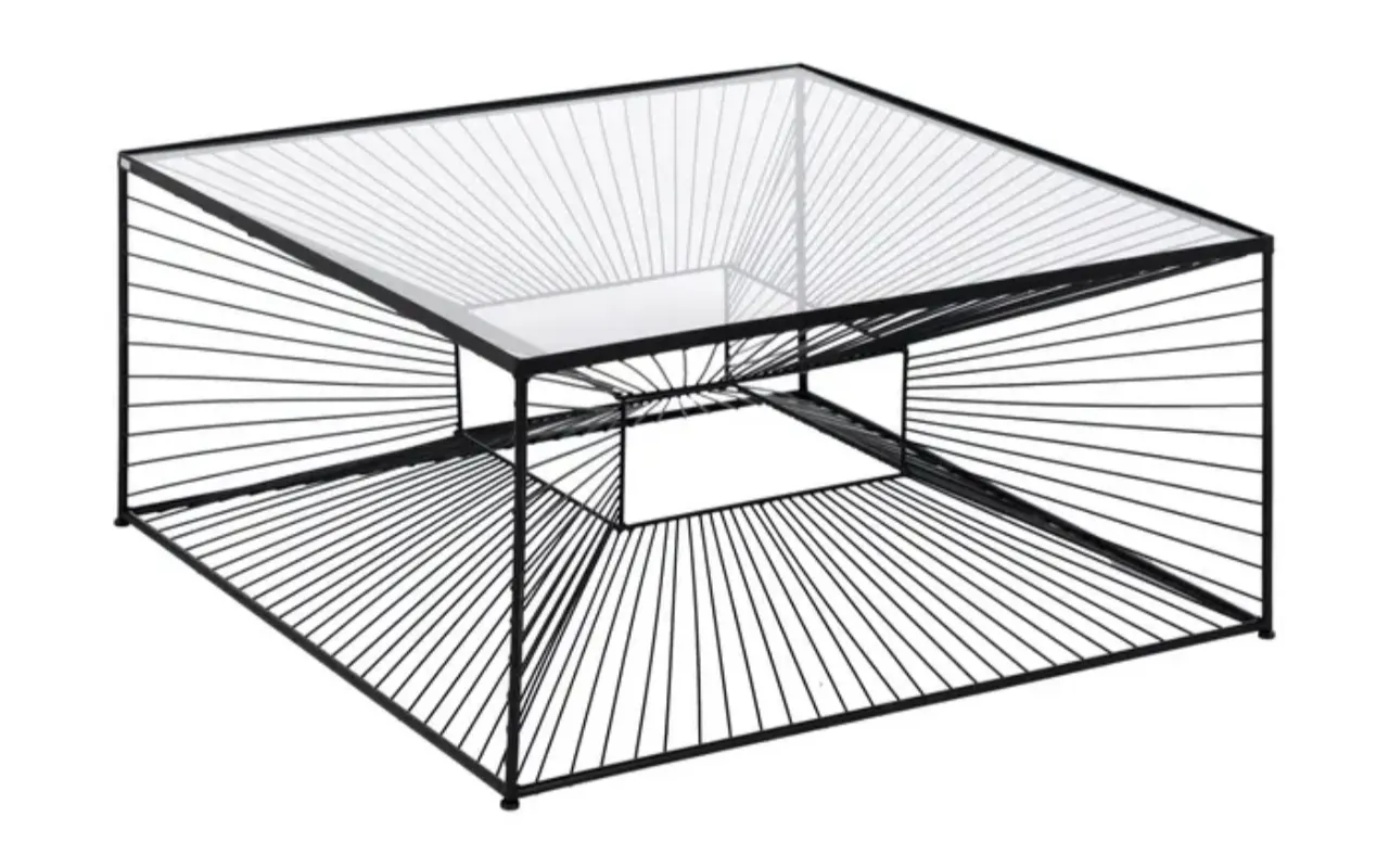Esta mesa de centro en color negro combina la resistencia del hierro con la elegancia del cristal, creando un diseño sofisticado que aporta luminosidad y estilo al salón.