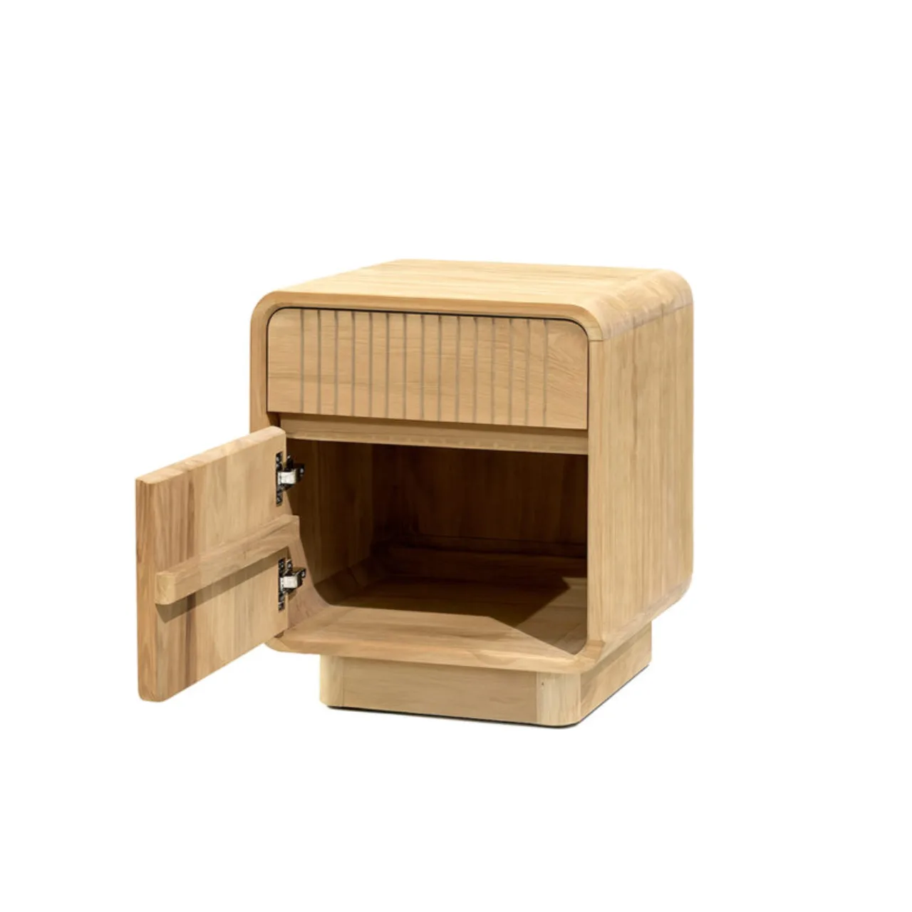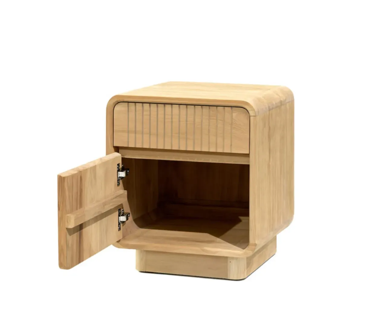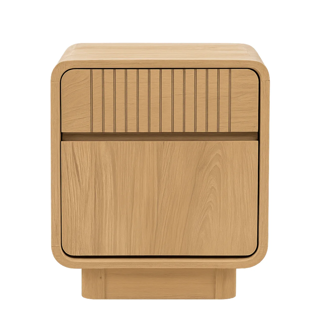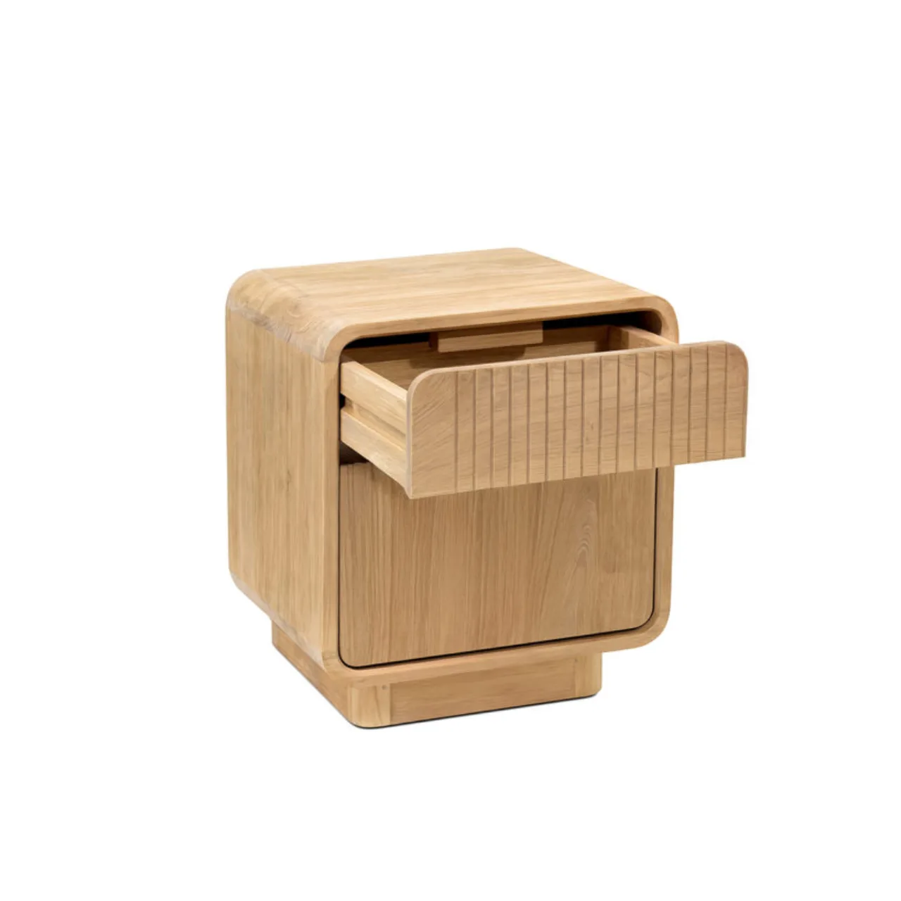 La mesita de noche Eyre combina diseño contemporáneo y artesanía tradicional. Fabricada en madera de teca maciza, destaca por su durabilidad y acabado natural, aportando calidez y elegancia a cualquier dormitorio. Su tono claro realza la veta de la madera y se integra fácilmente en distintos estilos decorativos.