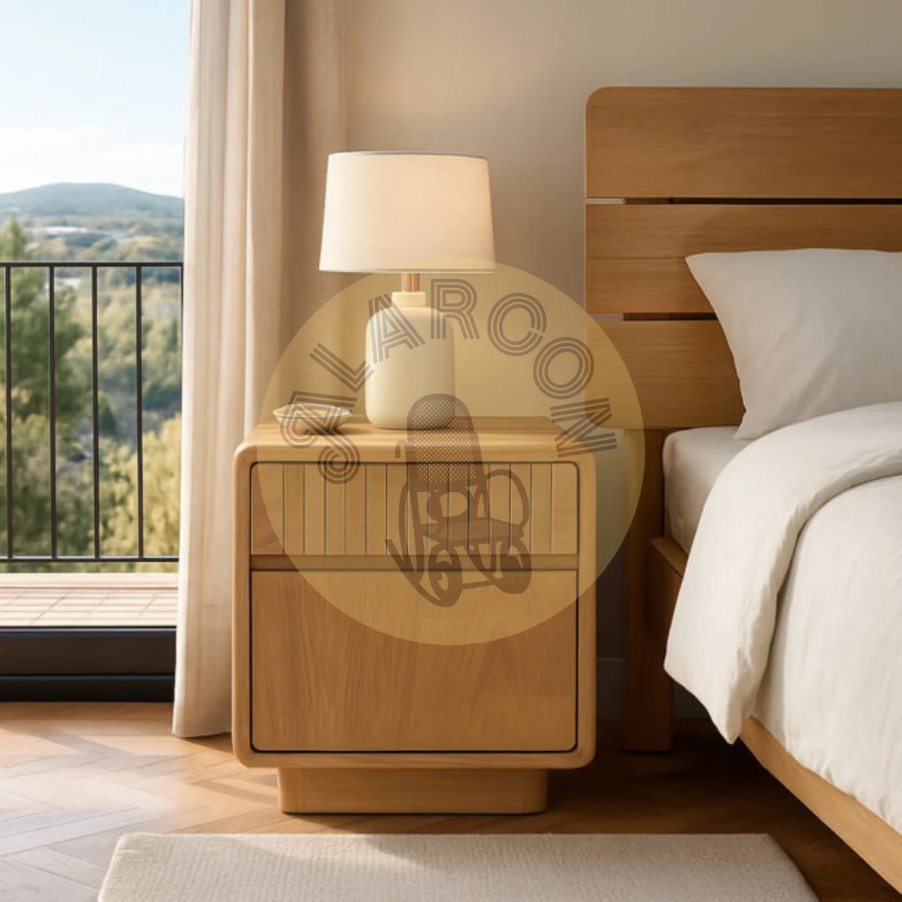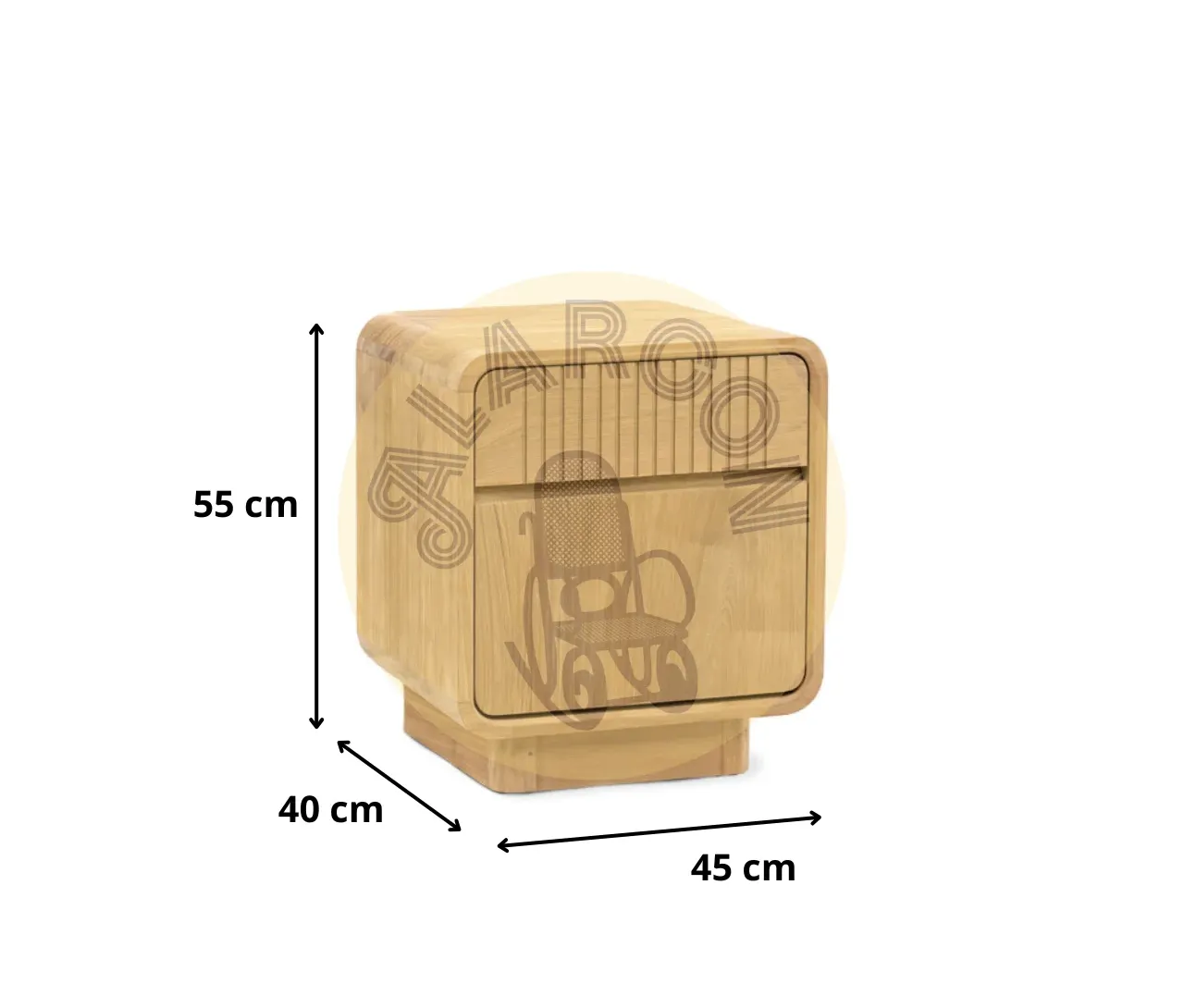 Con unas medidas de 45 x 40 x 55 cm, esta mesita no requiere montaje y se adapta perfectamente junto a la cama o en espacios reducidos. Su diseño funcional y su acabado artesanal la convierten en un mueble práctico y duradero.
