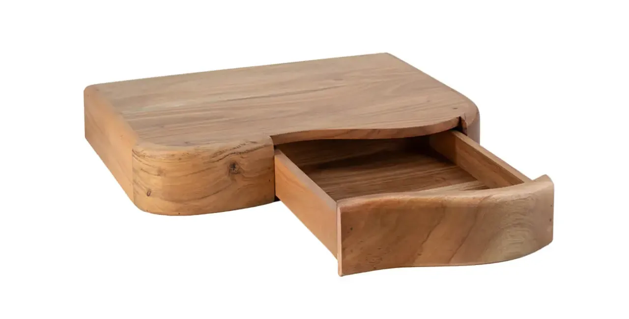 La mesita flotante irregular Barcelona con 1 cajón está fabricada en madera de acacia maciza, destacando por su resistencia y por un diseño artesanal lleno de personalidad.
