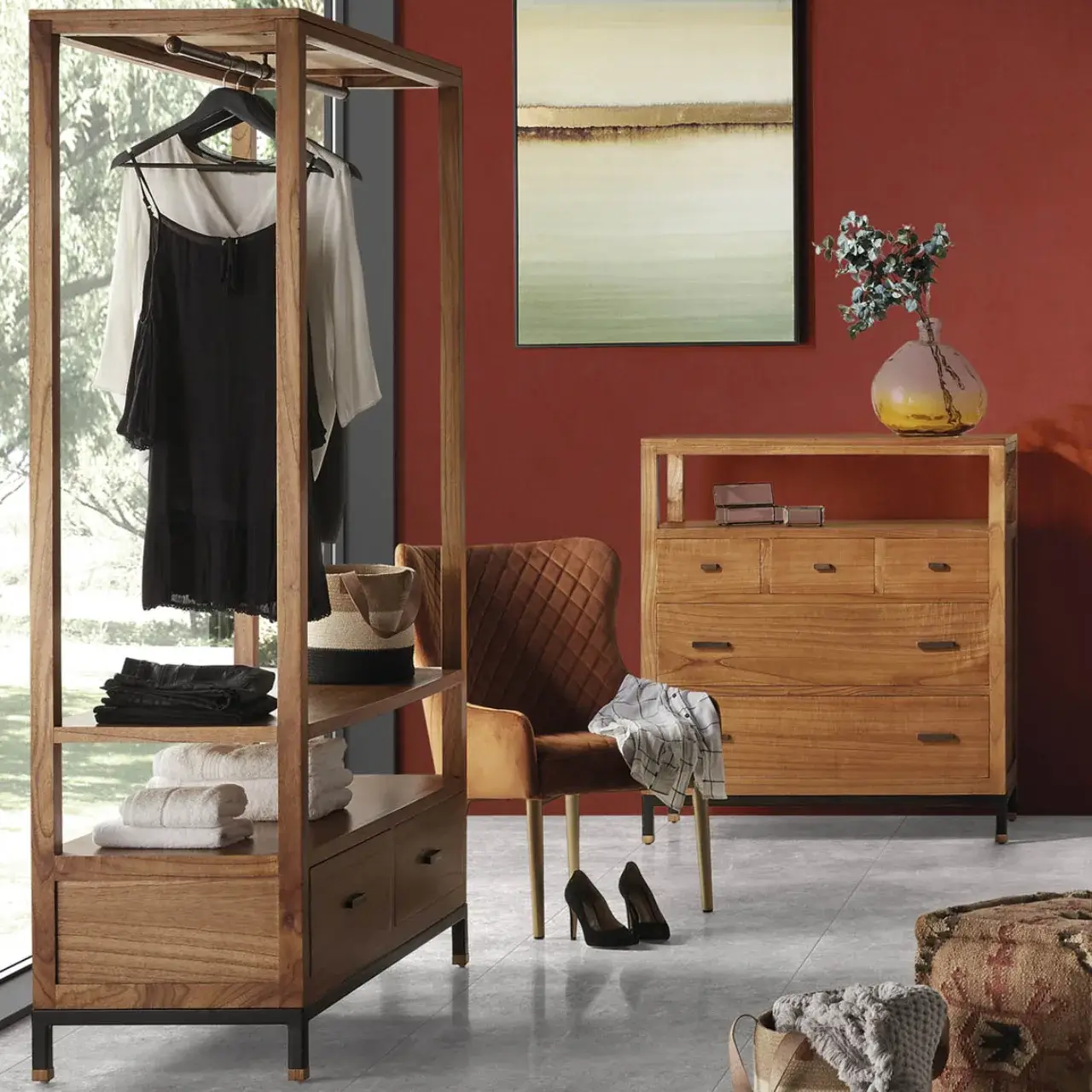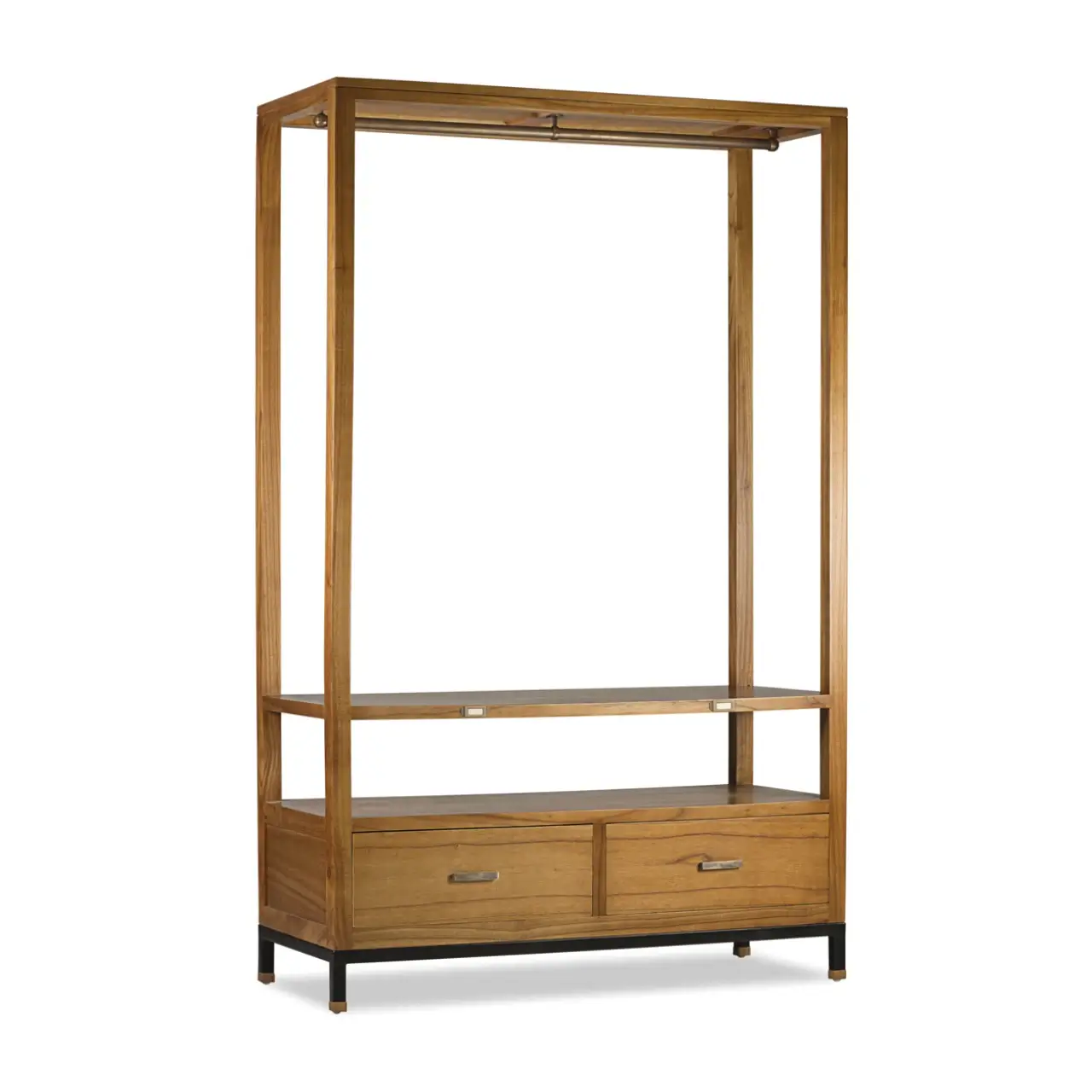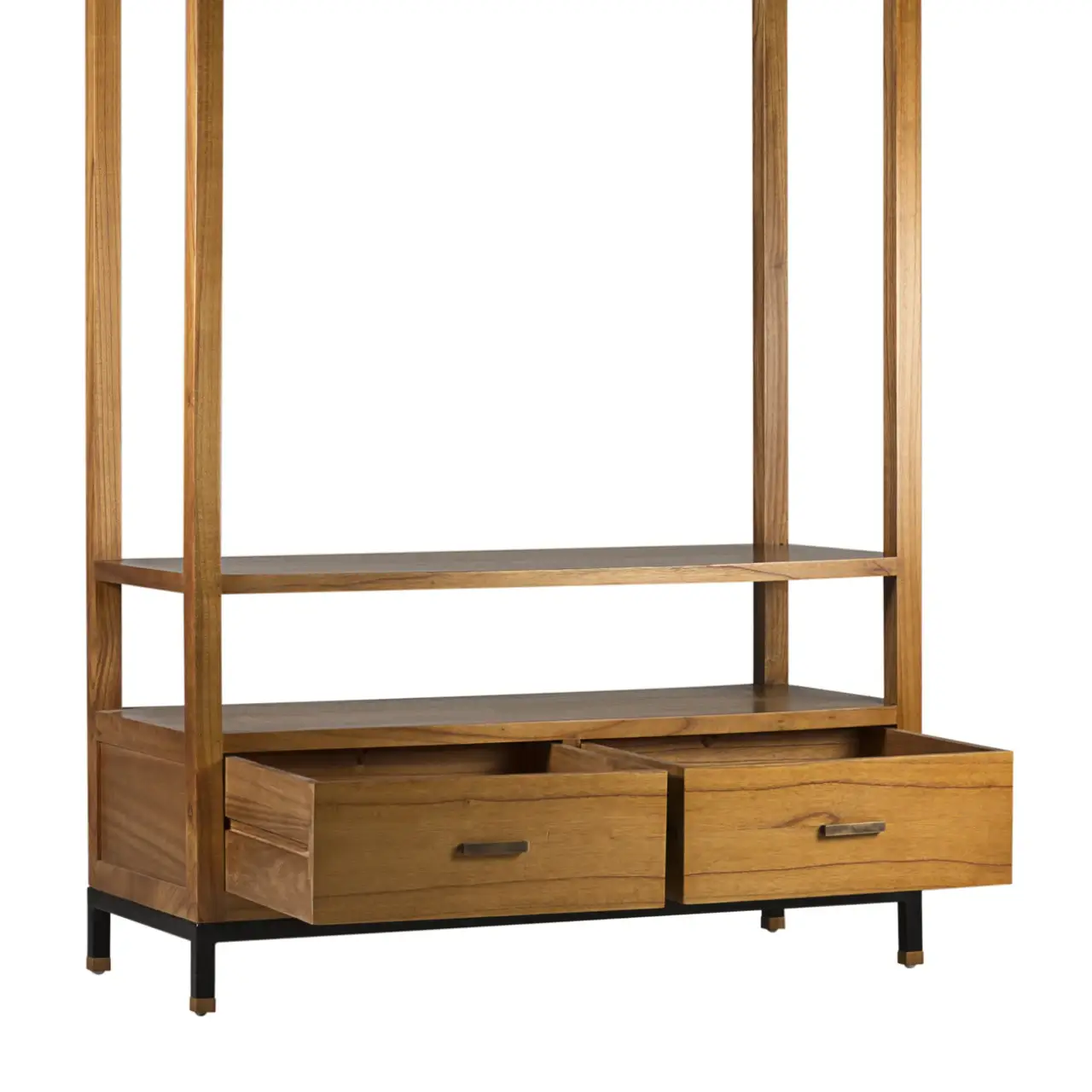 Mueble Auxiliar Colgador Madhu 2 Cajones 1 Hueco es una armario imprescindible para cualquier hogar. Hecho a mano y diseñado con un fino Madera de Mindi, este mueble ofrecerá un toque sofisticado a su espacio, que destaca por los accesorios de bronce y su estructura en hierro, dando un aspecto contemporáneo y elegante a cualquier habitación.