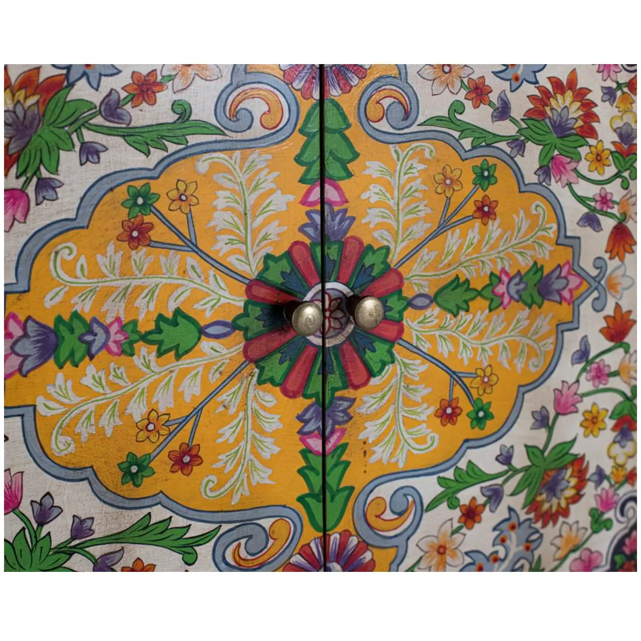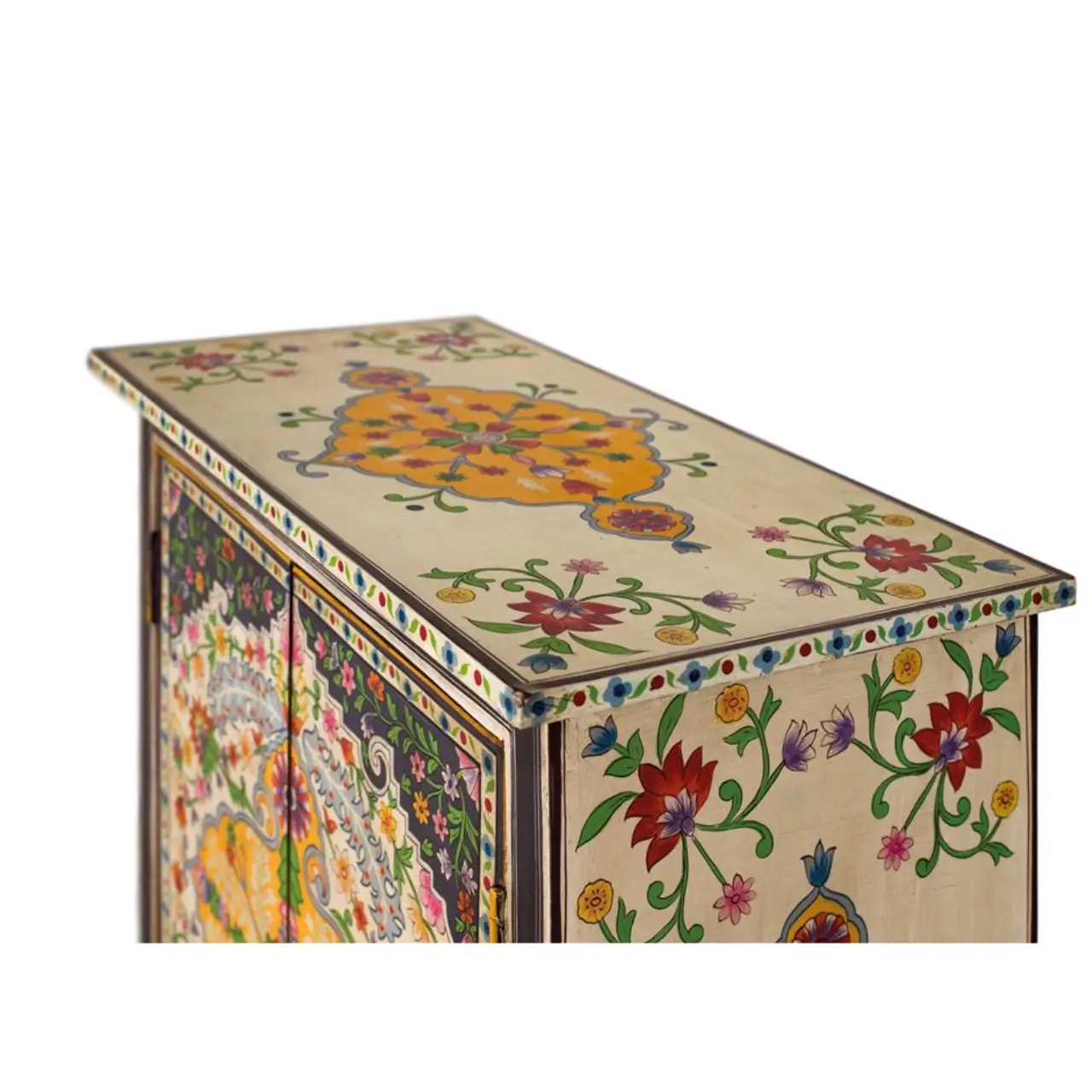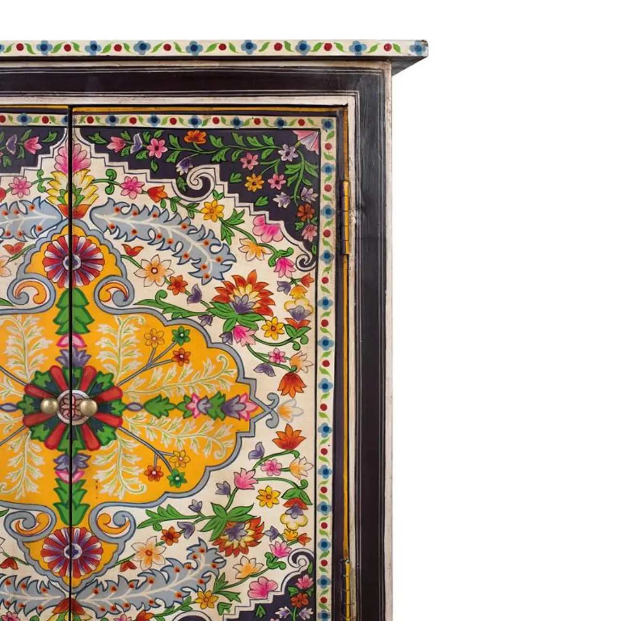 Pintado a mano en su totalidad, el patrón artístico y único que se exhibe es un reflejo de la artesanía detallada. Los motivos variados agregan un toque único y adoptan un papel decorativo, convirtiendo este mueble en más que un simple objeto funcional.