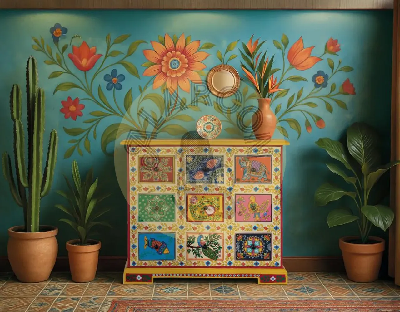 Perfecto para ambientes de estilo bohemio, étnico o con un toque lleno de color, este mueble combina funcionalidad y decoración. Cada cajón no solo organiza, sino que también transforma el espacio en un entorno más acogedor y auténtico.