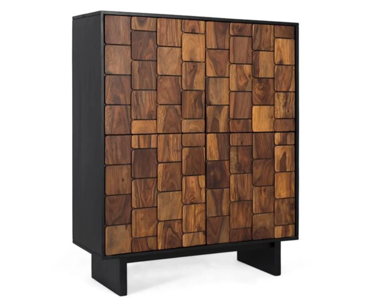 La base elevada y la estructura sólida mejoran la estabilidad, mientras que la combinación de maderas nobles aporta durabilidad, personalidad, calidez y un estilo atemporal que encaja en ambientes actuales y elegantes.