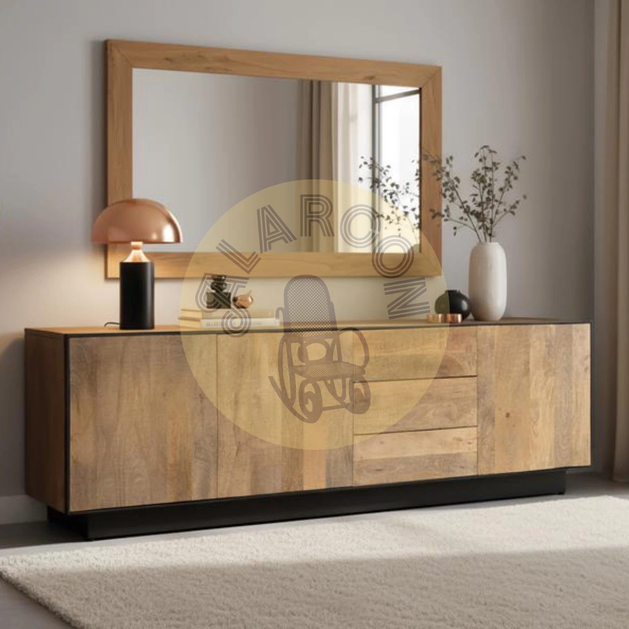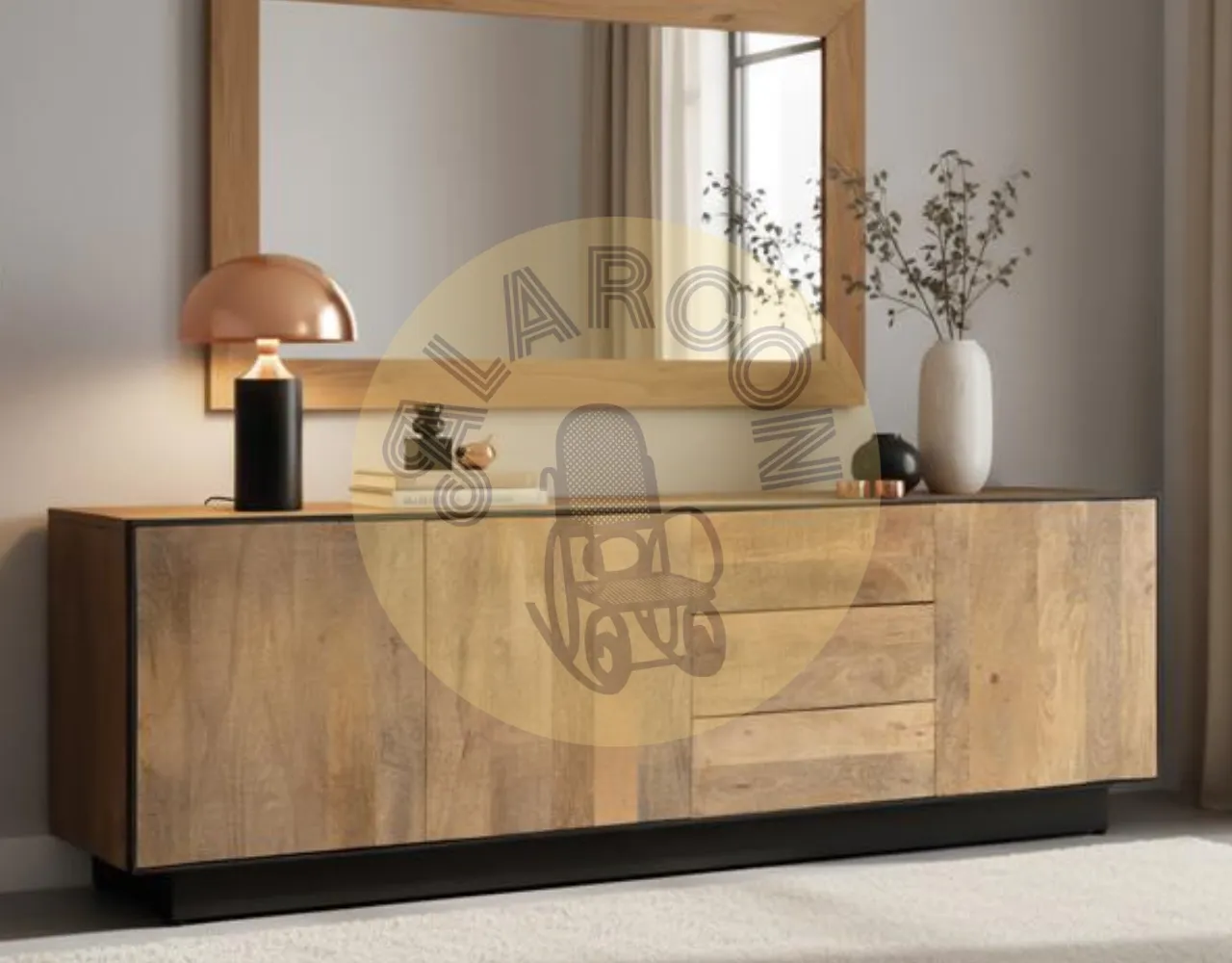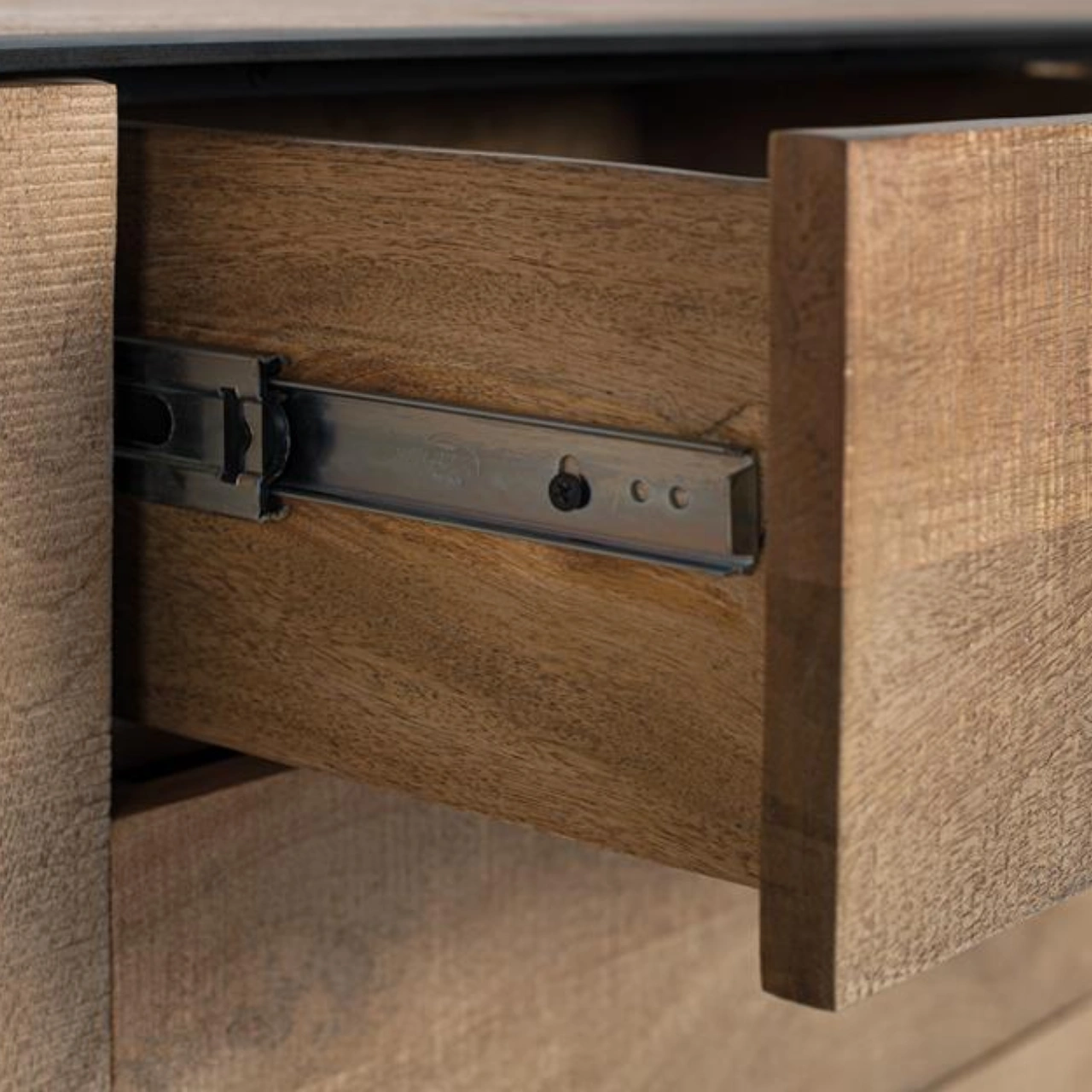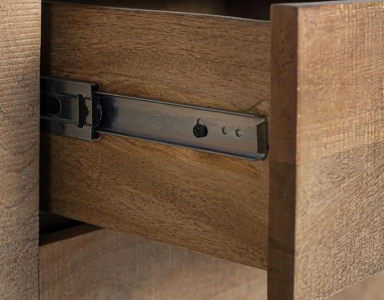 Madera de mango maciza: Material resistente y duradero que garantiza un mueble de TV sólido, ideal para uso diario y larga vida útil.