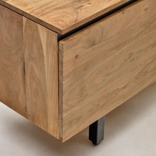 La colección Uxue de madera maciza de acacia presenta un diseño exclusivo, creado por el equipo Kave Home. Su estructura, con una línea decorativa en negro, atraviesa todo el mueble, aportando un toque de sofisticación a cualquier ambiente.