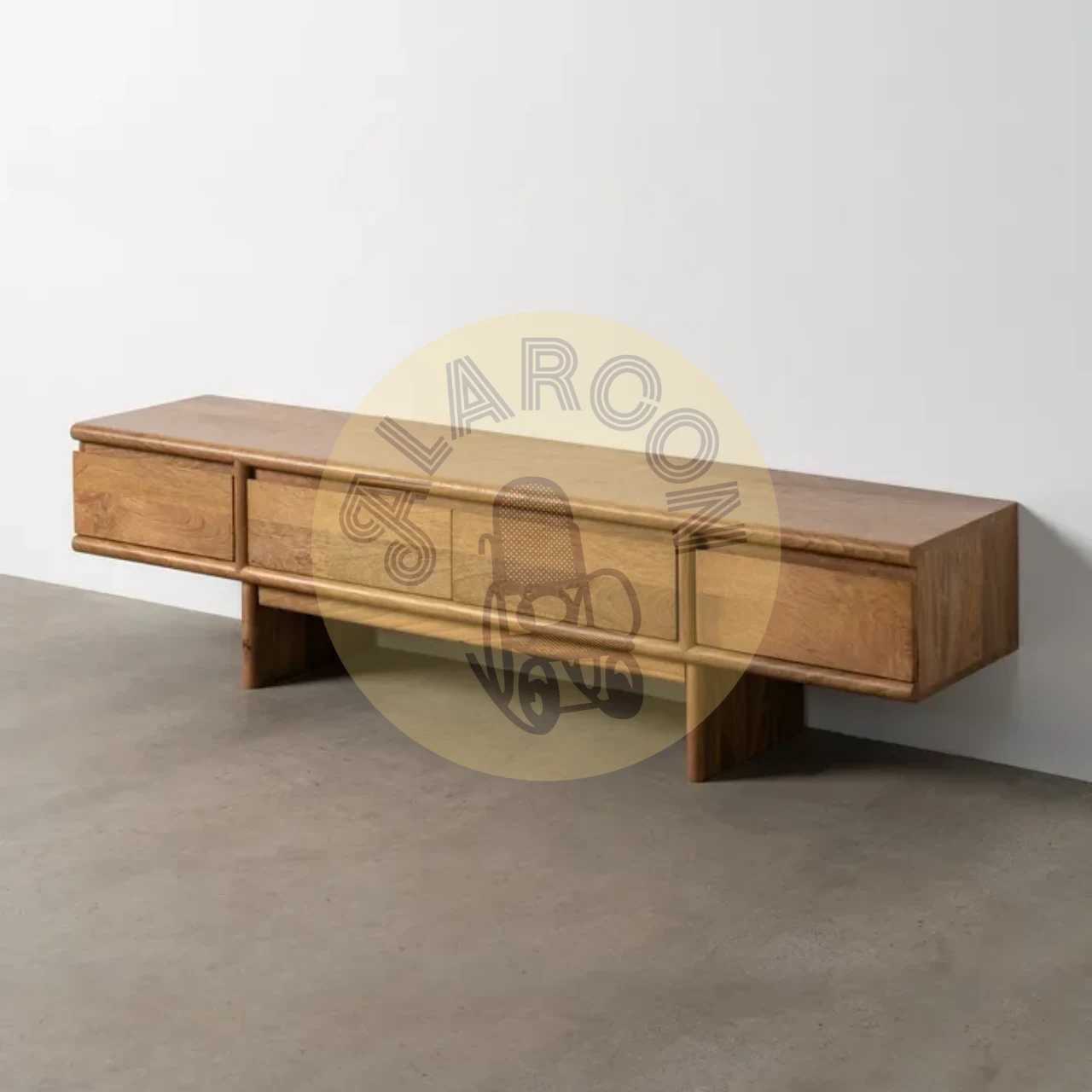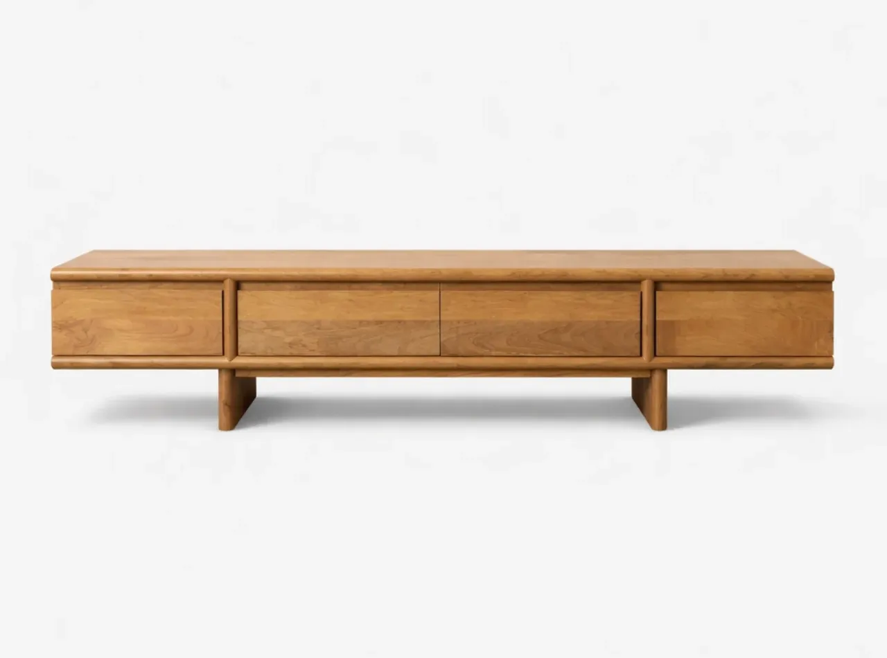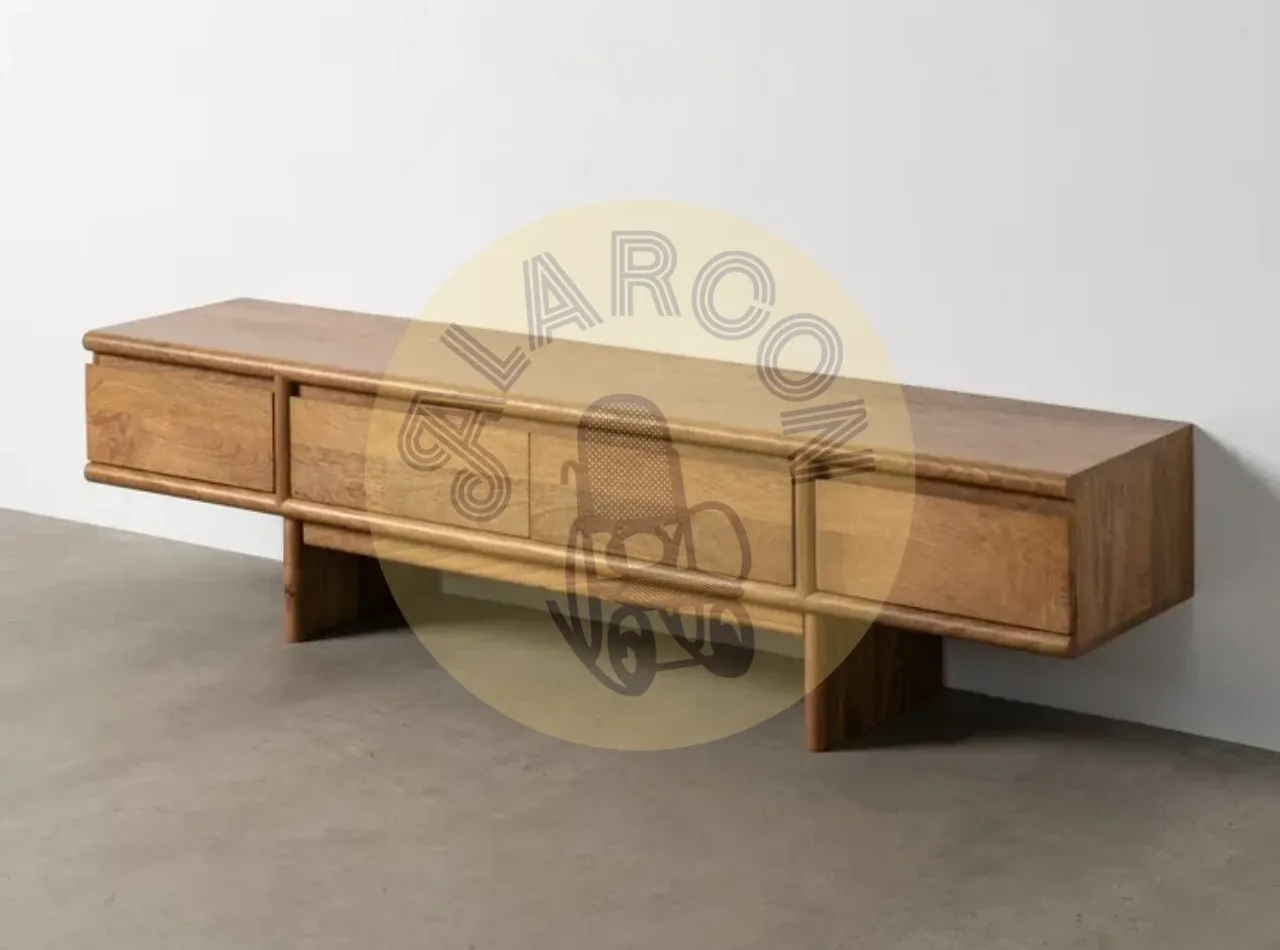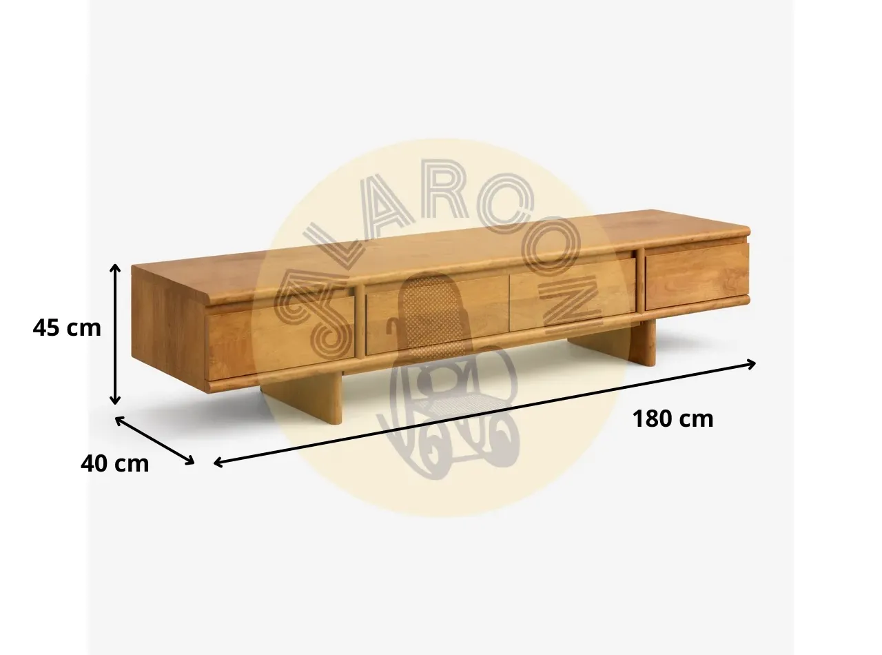 Fabricado en madera de mango, este mueble TV de 180 cm destaca por su diseño natural y líneas limpias que encajan con interiores contemporáneos y cálidos. Su estructura sólida y su peso de 40 kg transmiten calidad, resistencia y una sensación de mueble premium pensado para durar.