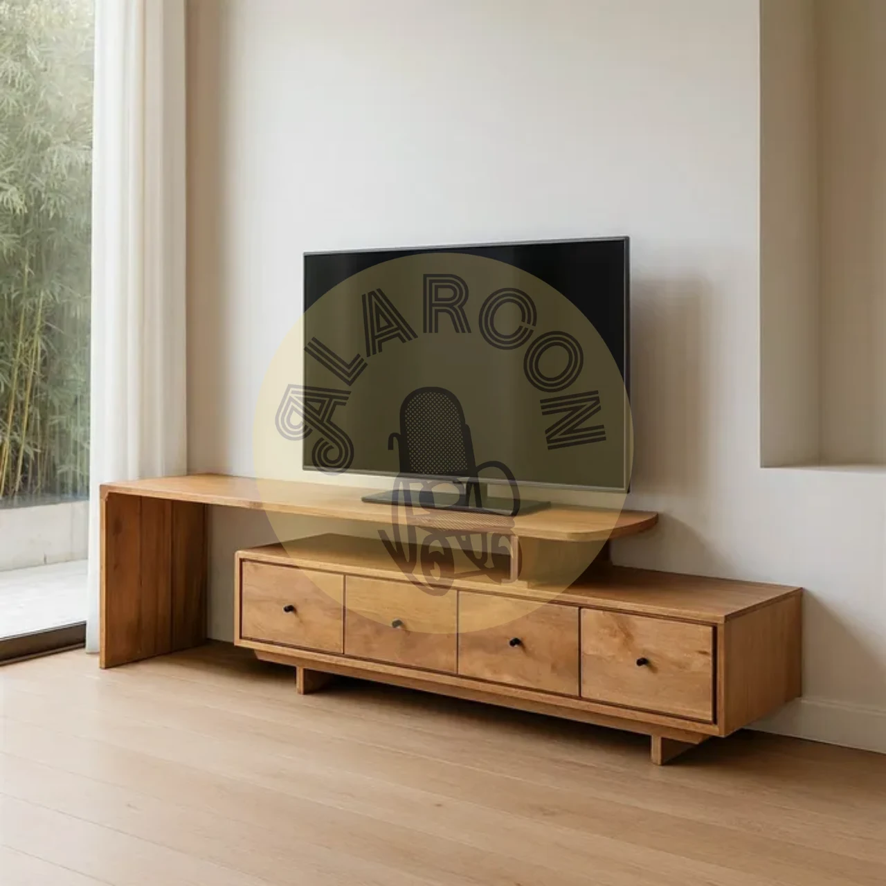 Confeccionado en madera de mango, este mueble TV aporta un estilo natural y sofisticado al salón. Su diseño combina líneas limpias con un acabado cálido que realza cualquier espacio contemporáneo.