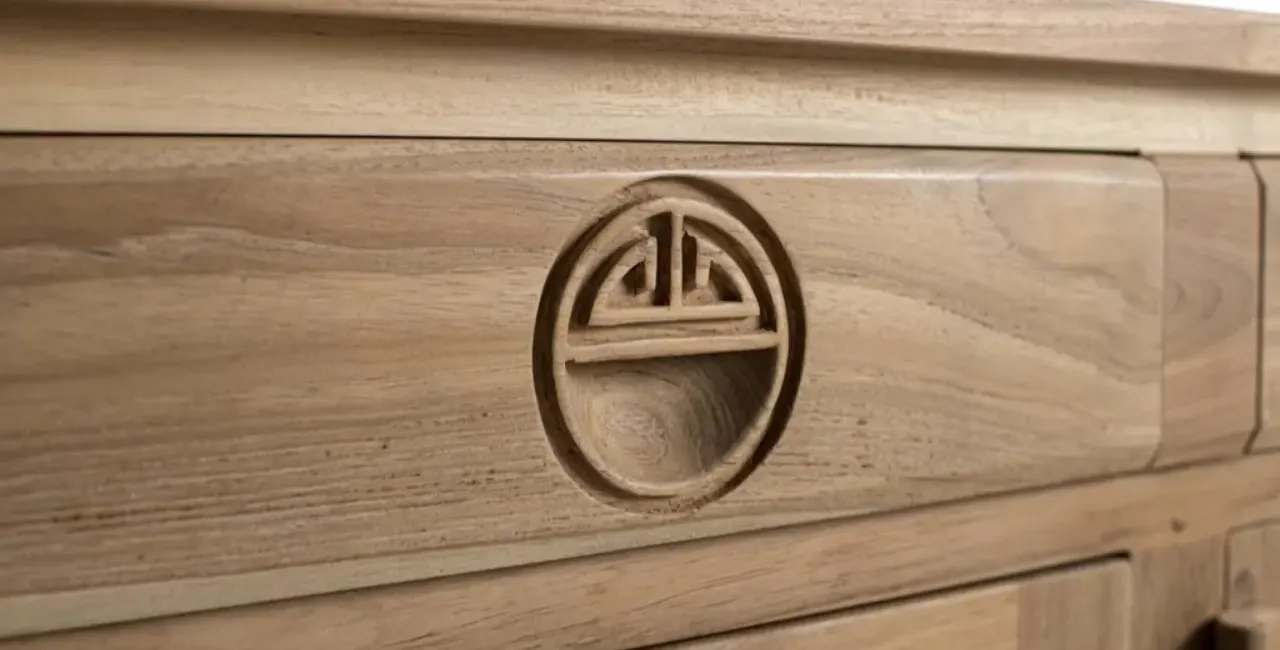 Diseño artesanal con tallados geométricos que aportan carácter y exclusividad.
