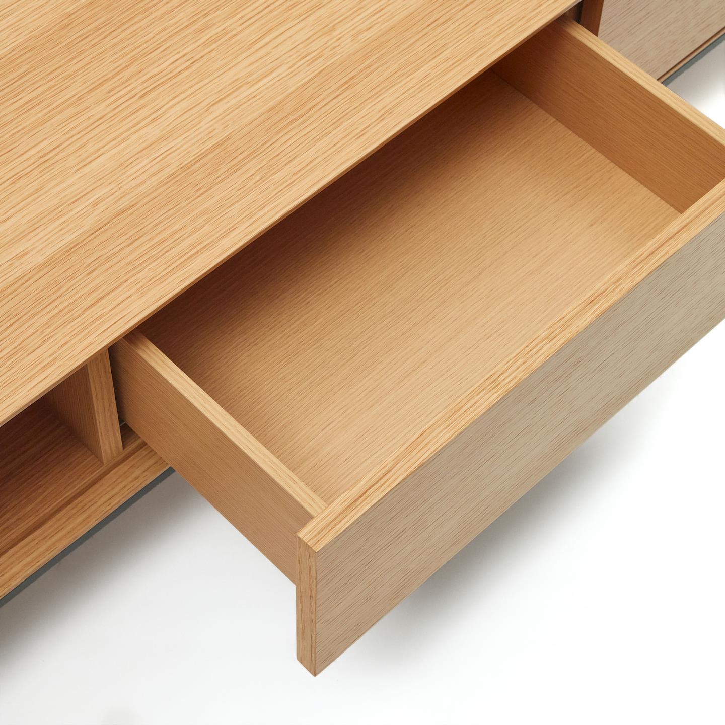 Vedrana combina la chapa de roble y el acero en un diseño moderno que se adapta a cualquier estilo y ambiente. Con un acabado natural y negro, esta pieza ofrece una estética minimalista que aporta orden y sofisticación a cualquier espacio, integrándose fácilmente en ambientes tanto contemporáneos como tradicionales.