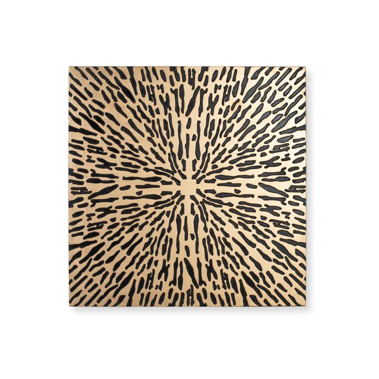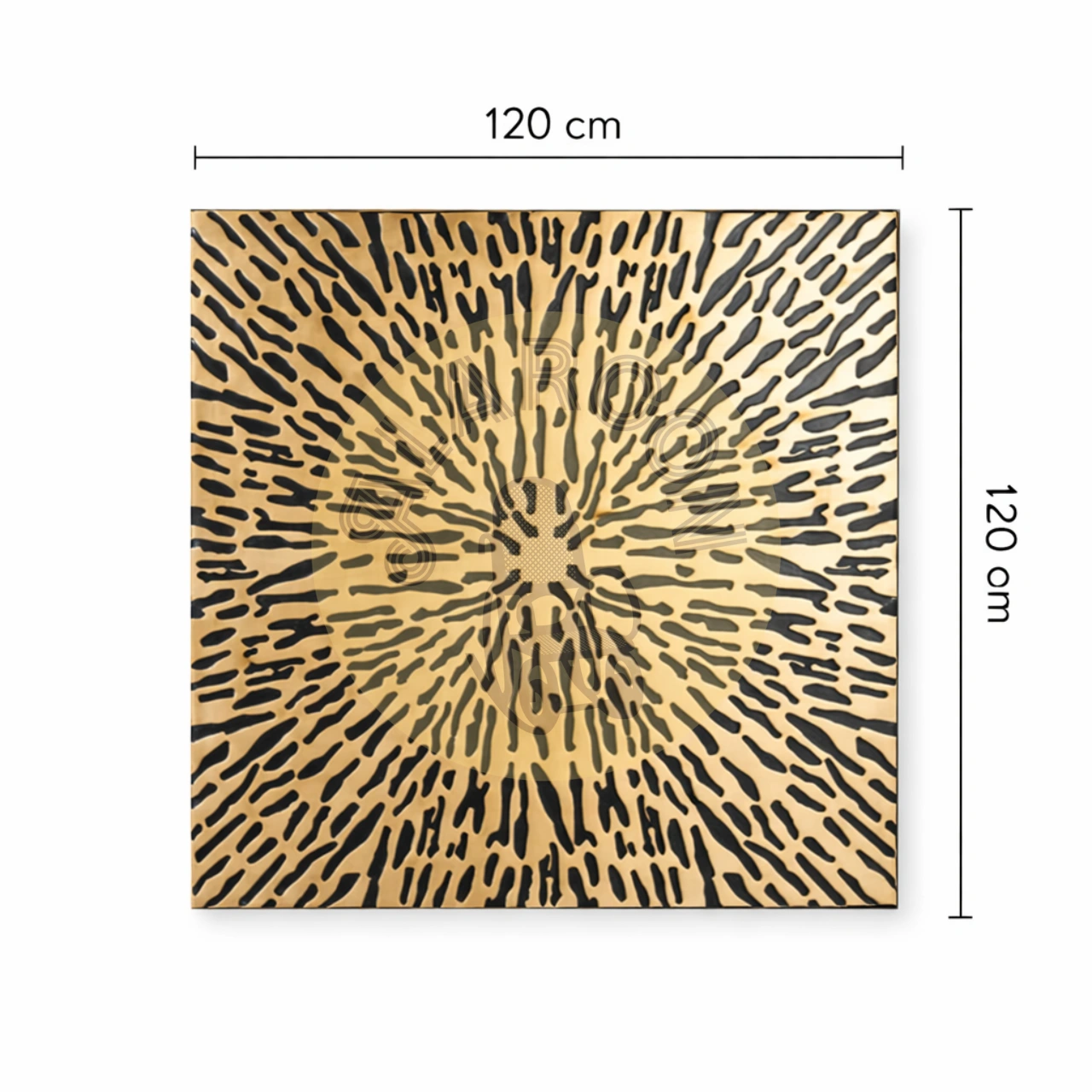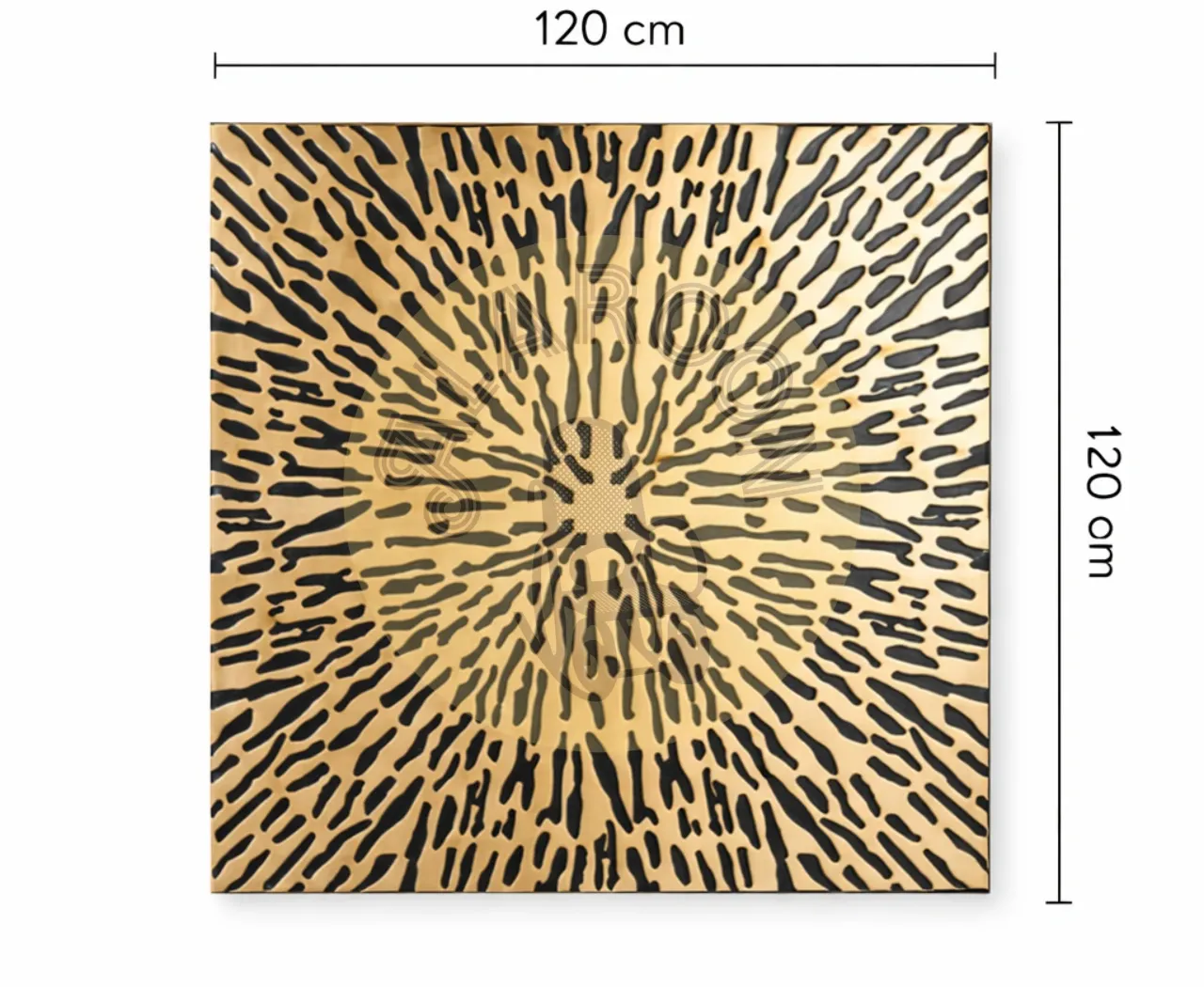 Fabricado de forma artesanal en MDF, cada pieza presenta matices únicos en el acabado, lo que refuerza su autenticidad y valor decorativo. Su formato cuadrado de 120×120 cm y 3 cm de grosor lo convierte en un elemento protagonista sin recargar el entorno.