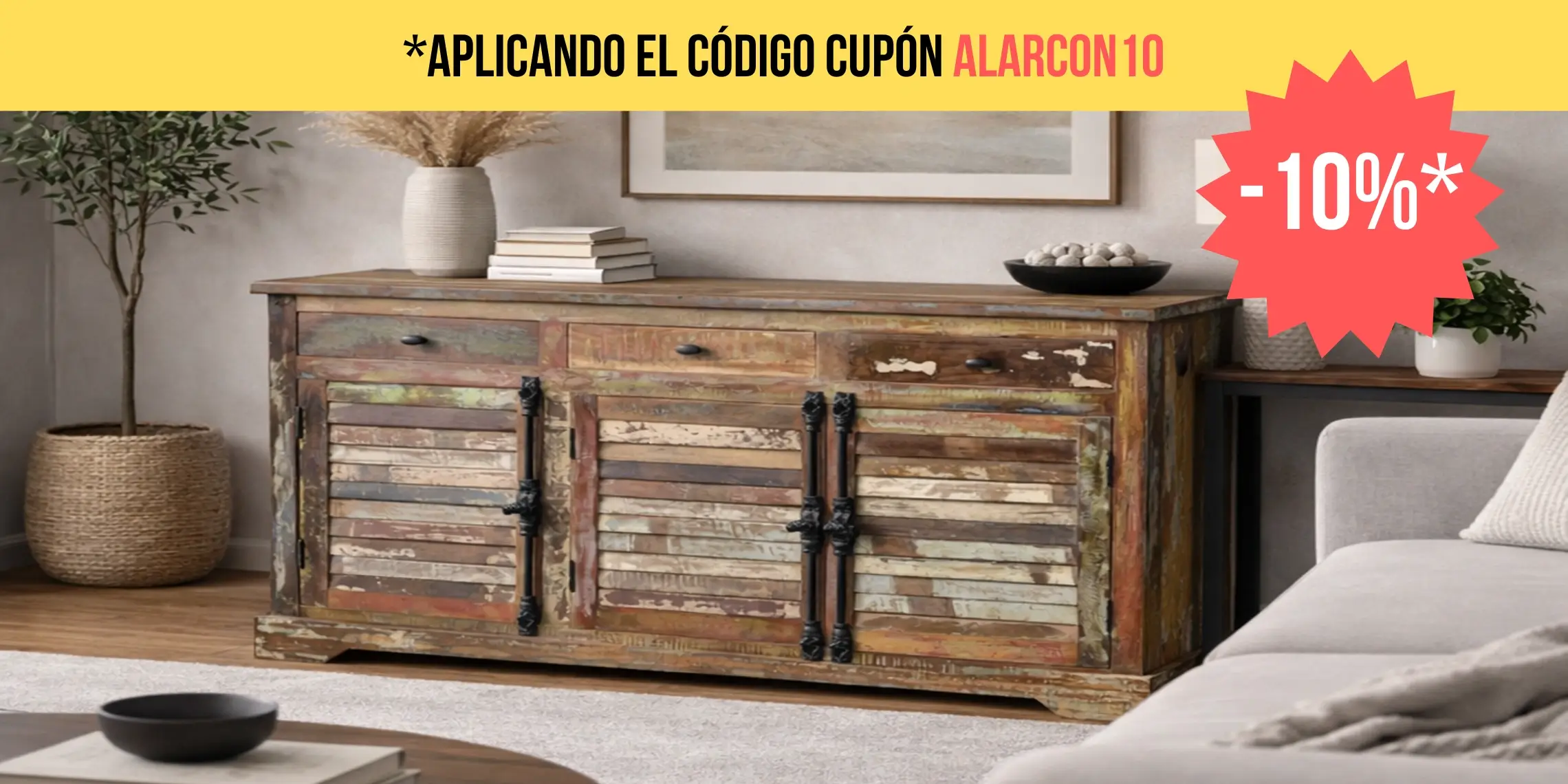 Los aparadores de madera reciclada son la elección perfecta para quienes buscan muebles con historia, personalidad y un enfoque sostenible. Un aparador de madera reciclada se fabrica a partir de tablas recuperadas de antiguas construcciones, puertas o embarcaciones, lo que aporta una estética única e irrepetible. Los aparadores de madera reciclada destacan por sus vetas marcadas, imperfecciones naturales y variaciones de tono que reflejan el paso del tiempo, creando piezas llenas de carácter. Este tipo de madera reutilizada ofrece una gran resistencia y estabilidad, ya que ha sido tratada y seleccionada para garantizar su durabilidad. Además, cada aparador de madera reciclada contribuye a reducir el impacto ambiental al dar una segunda vida a los materiales. En cuanto al diseño, los aparadores de madera reciclada combinan acabados envejecidos, superficies cepilladas y detalles artesanales que refuerzan su estética auténtica. Gracias a esta mezcla de sostenibilidad, robustez y belleza natural, estos muebles se convierten en protagonistas decorativos con un estilo atemporal.
