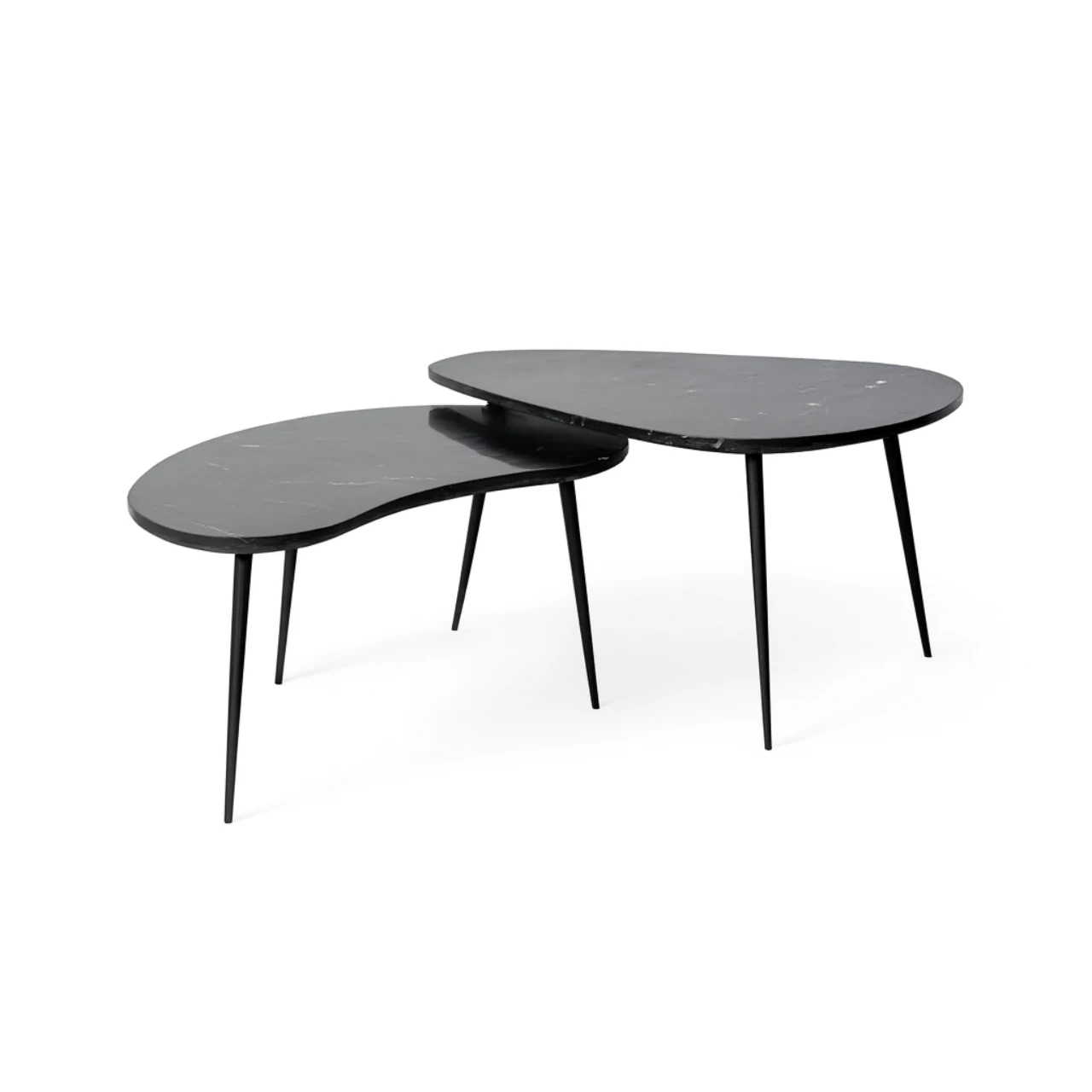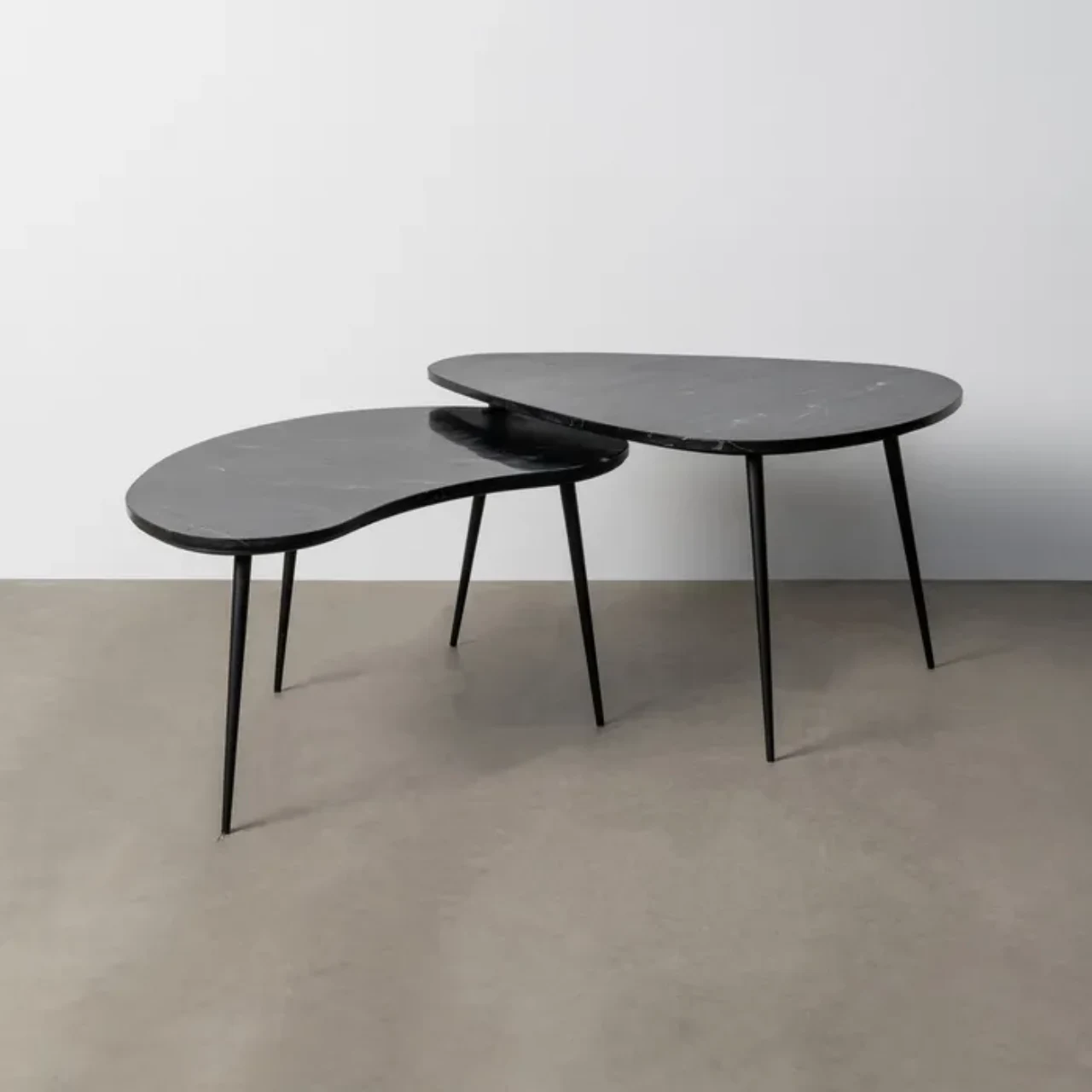Aporta elegancia y carácter a tu salón con este set de 2 mesas de centro en mármol negro y estructura de hierro, una combinación que destaca por su resistencia y estilo contemporáneo.